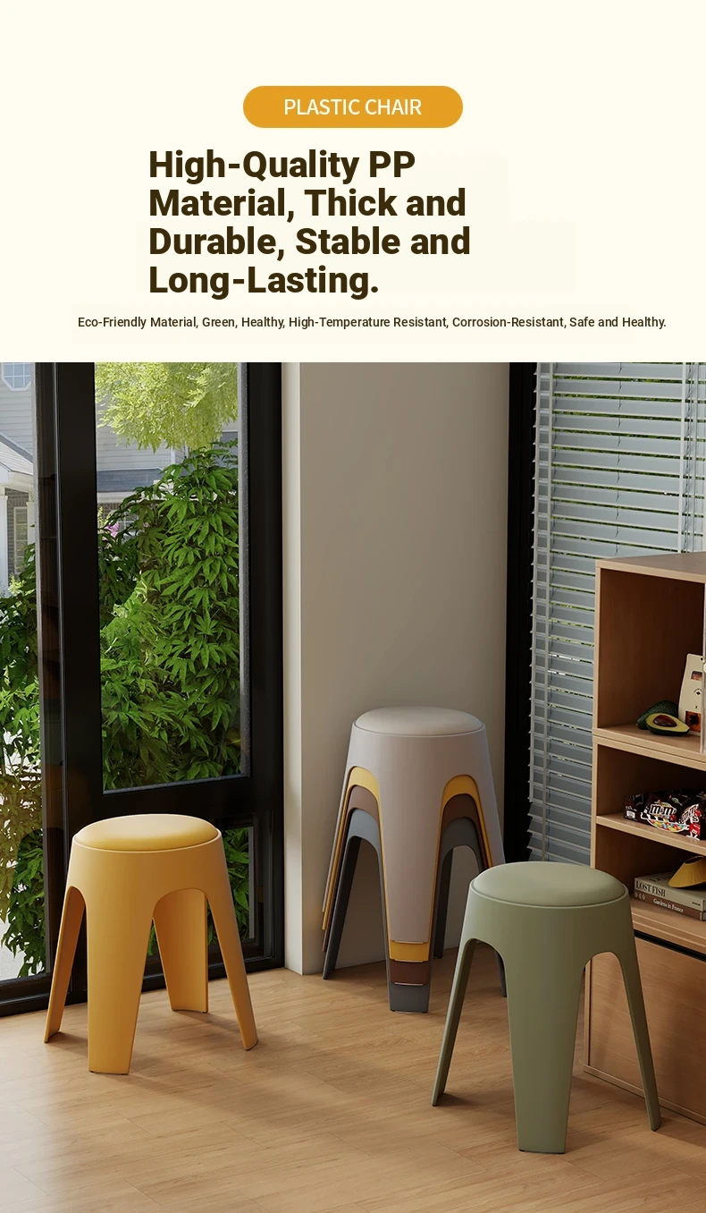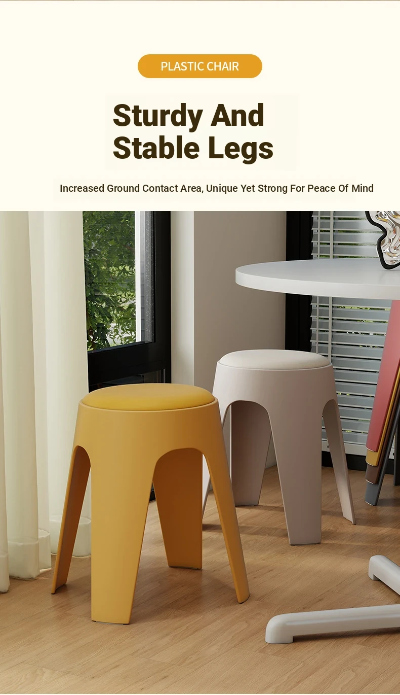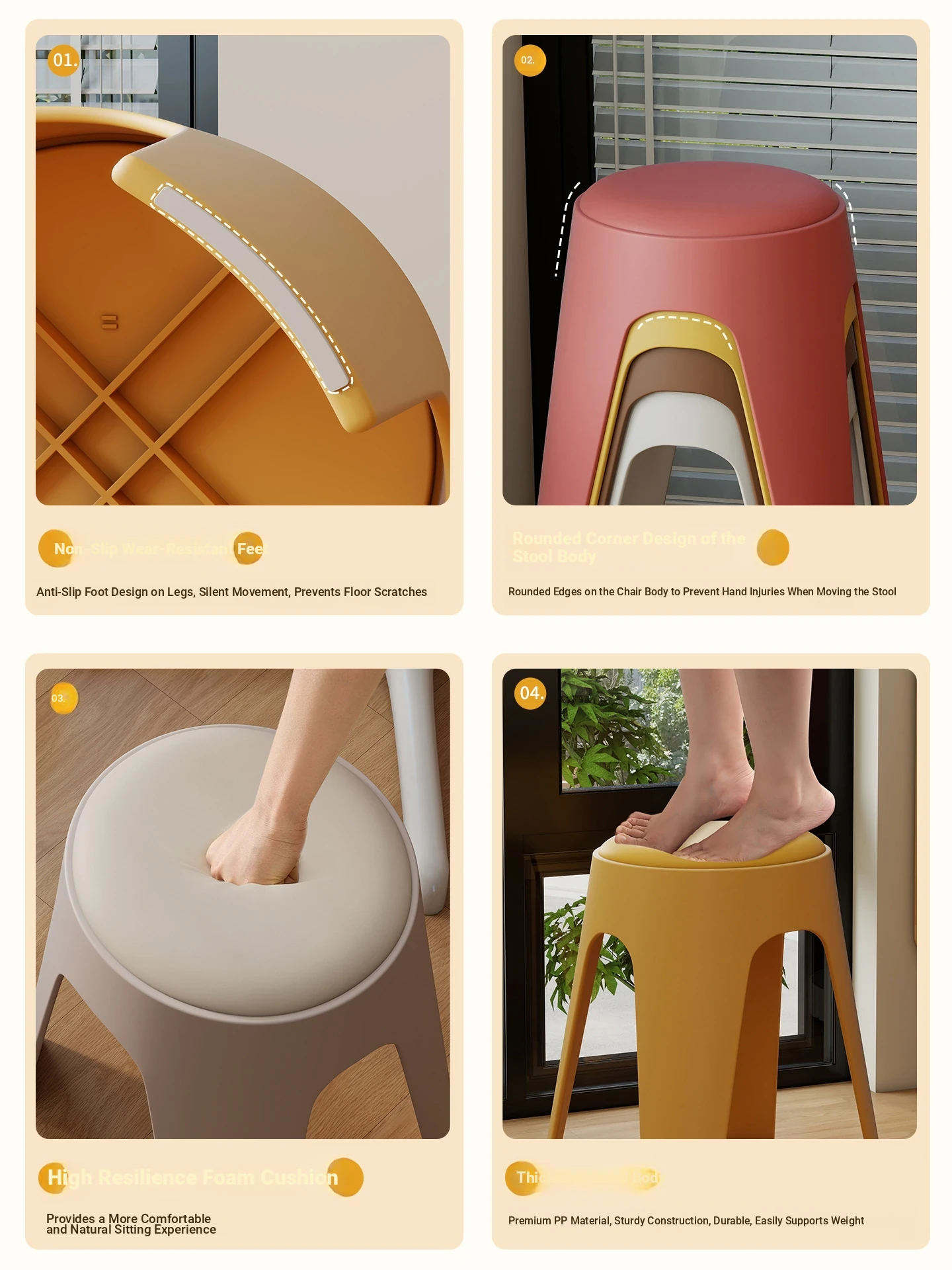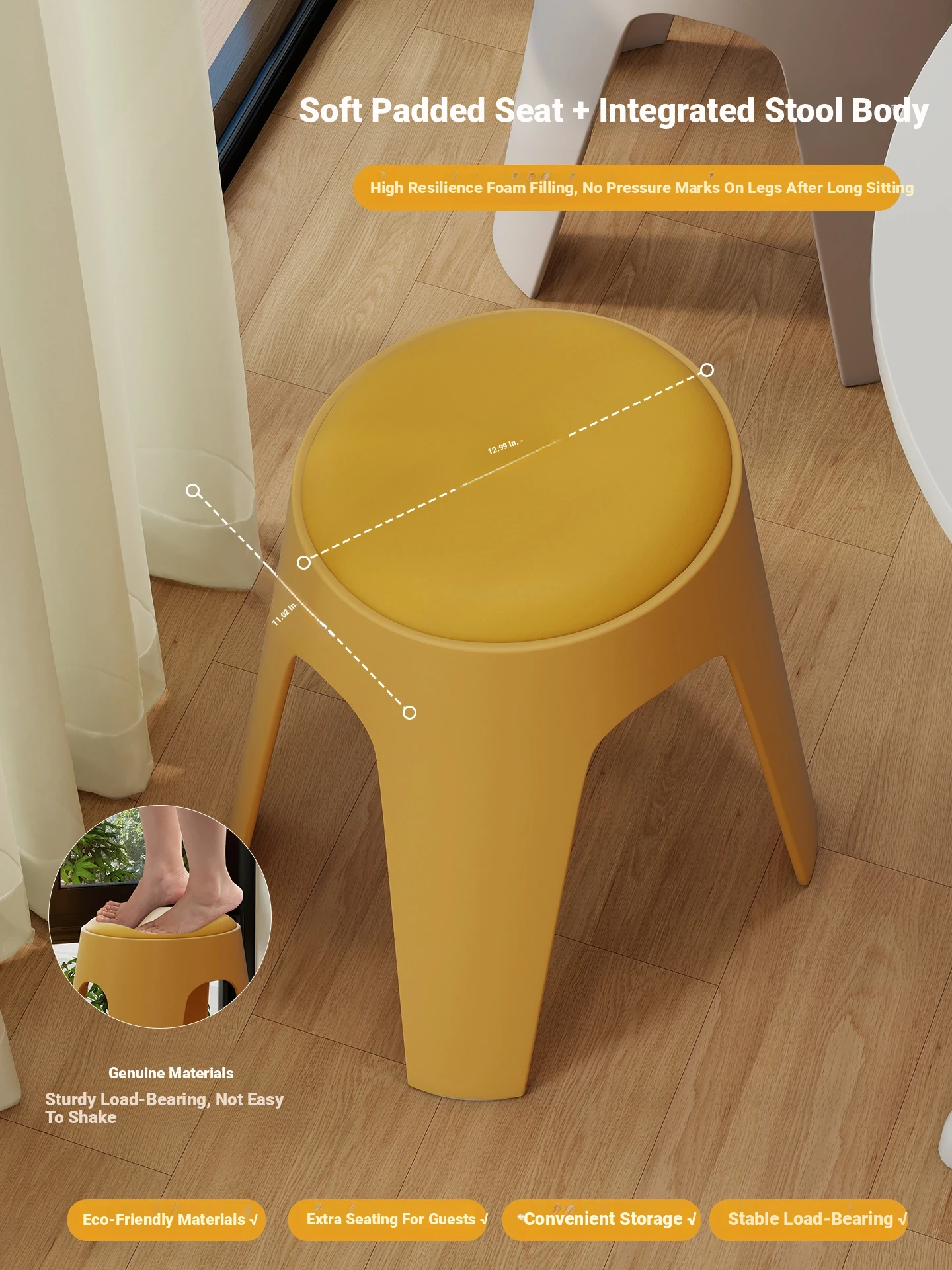 Thickened Stackable Plastic Stool with Soft Cushion - Modern Minimalist Round Stool for Home, Perfect for Living Room and Dining Table, Creative Design for Versatile Use