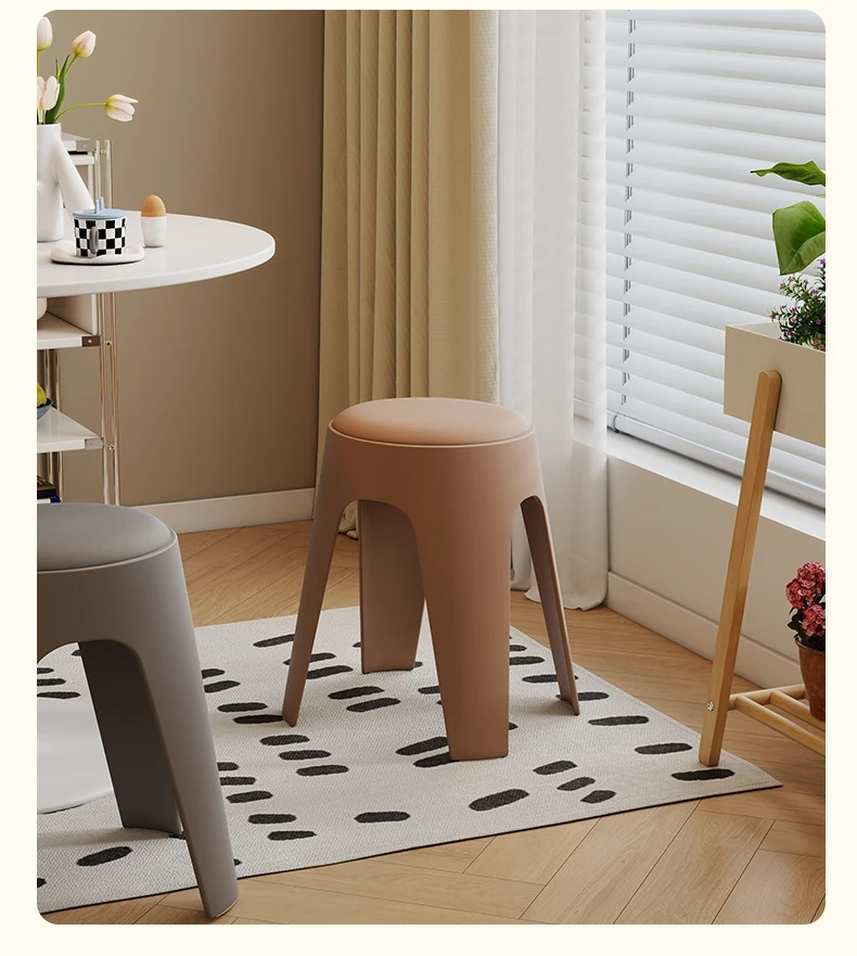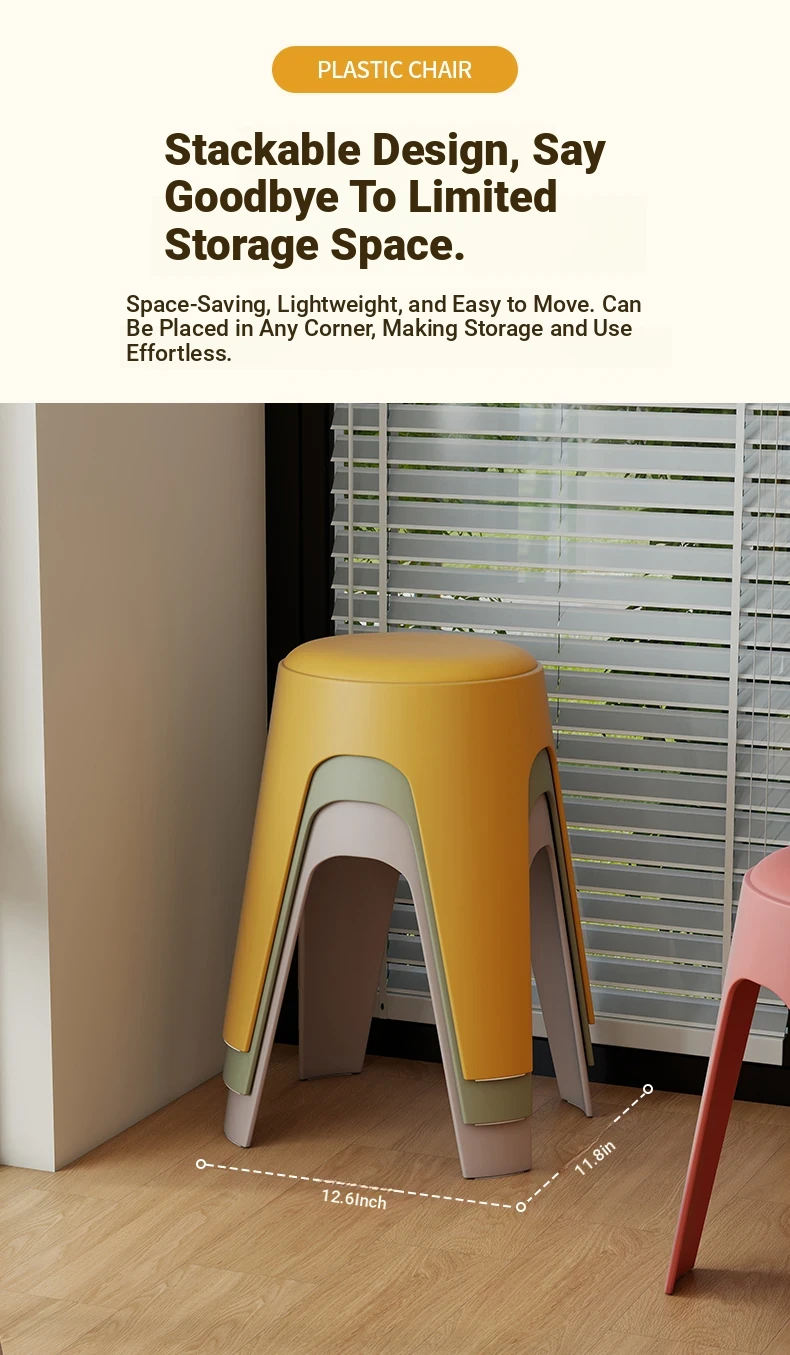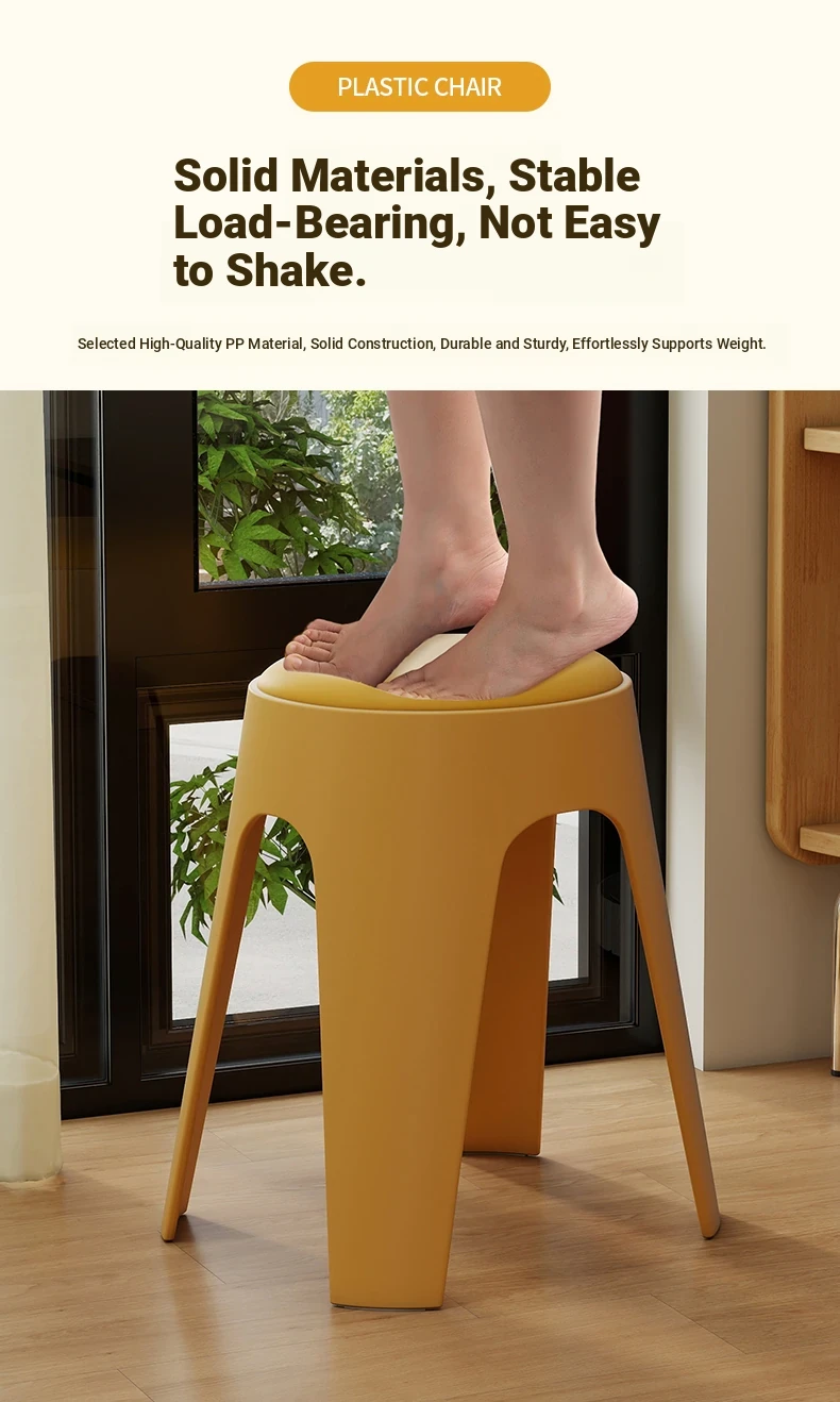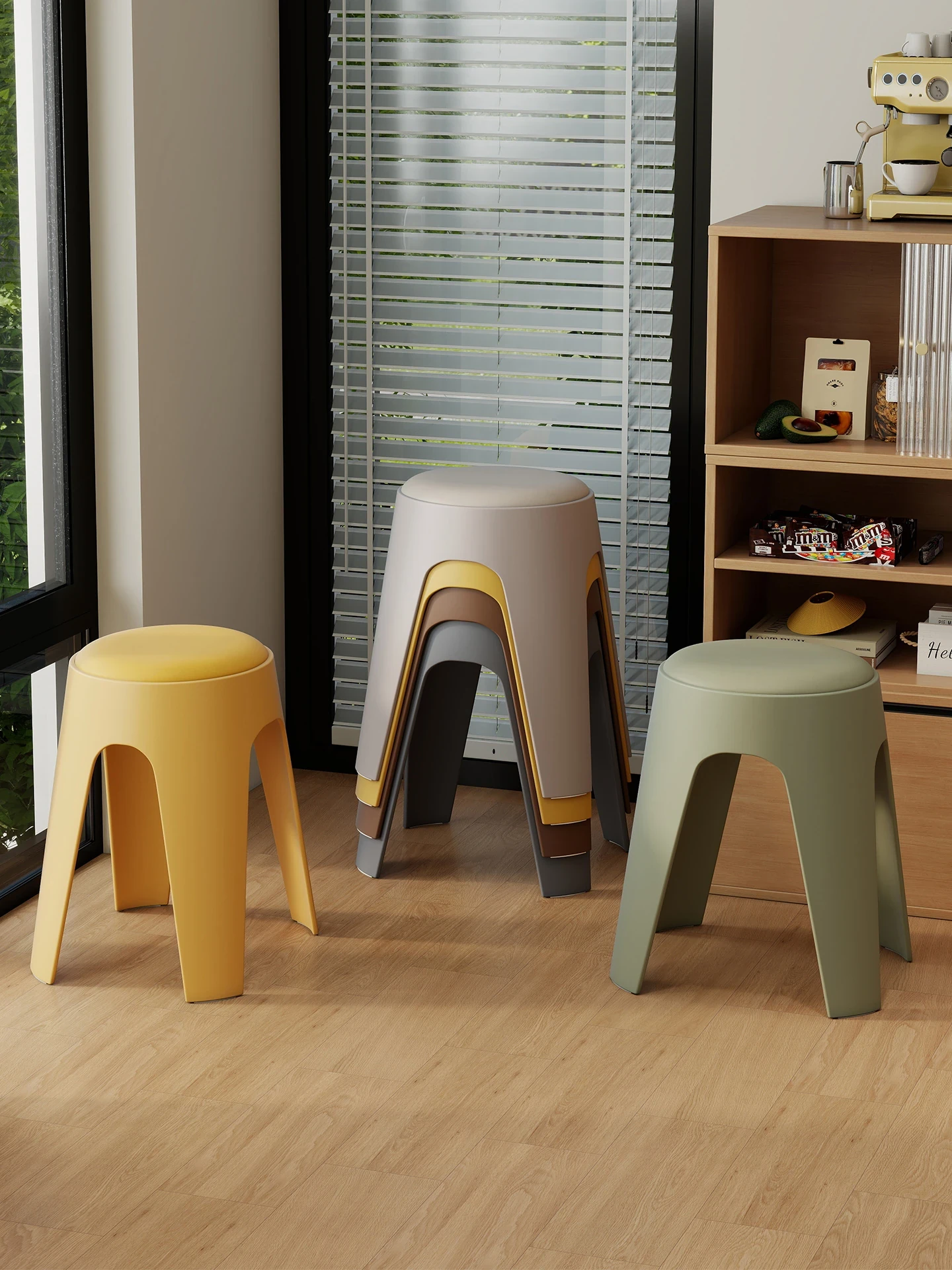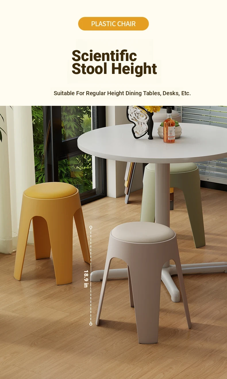 Thickened Stackable Plastic Stool with Soft Cushion - Modern Minimalist Round Stool for Home, Perfect for Living Room and Dining Table, Creative Design for Versatile Use