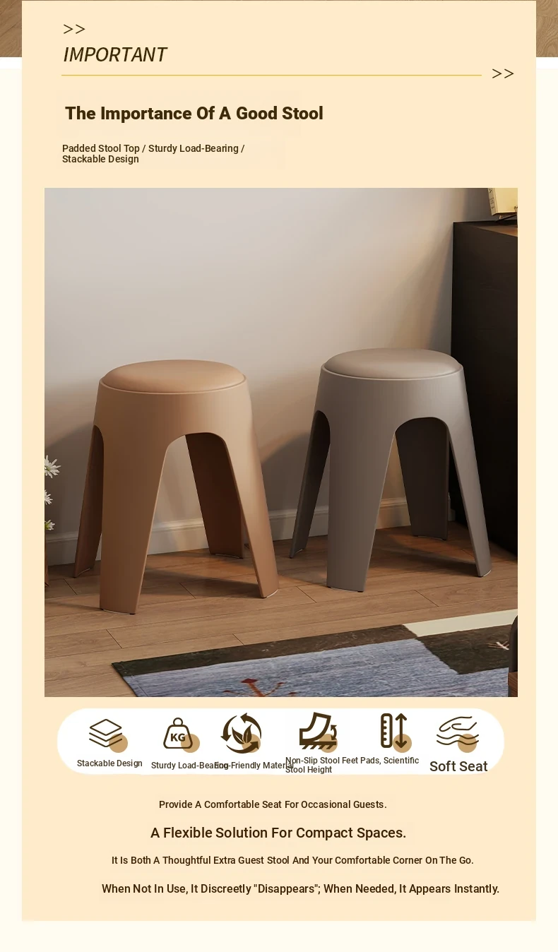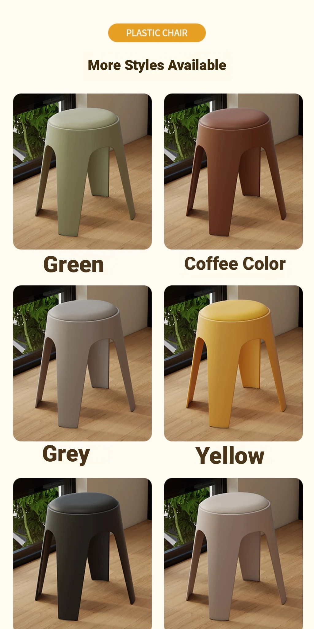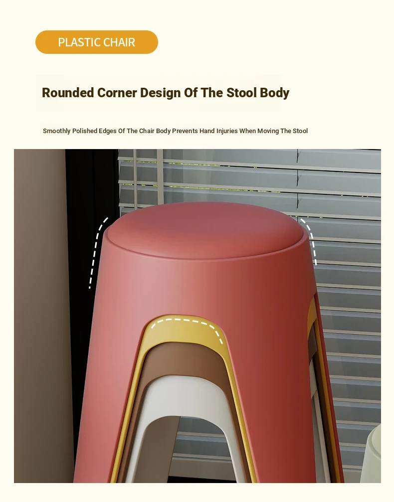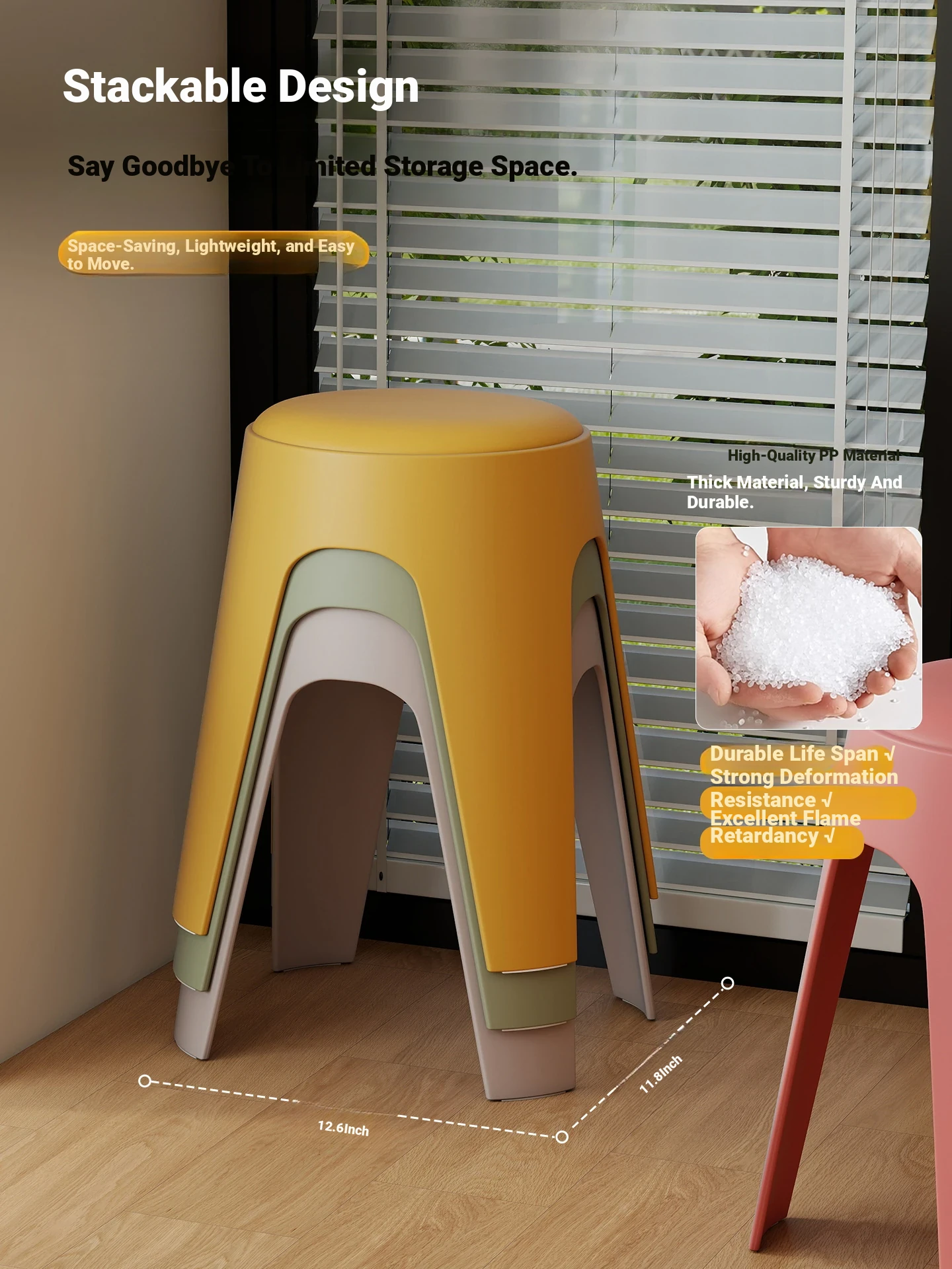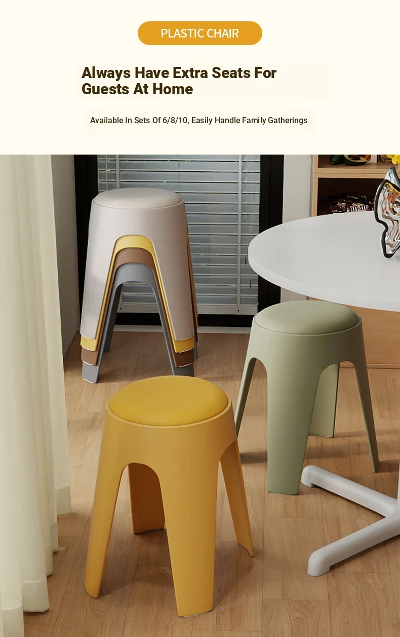 Thickened Stackable Plastic Stool with Soft Cushion - Modern Minimalist Round Stool for Home, Perfect for Living Room and Dining Table, Creative Design for Versatile Use