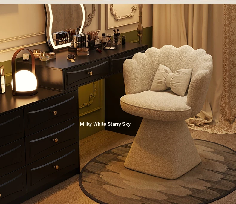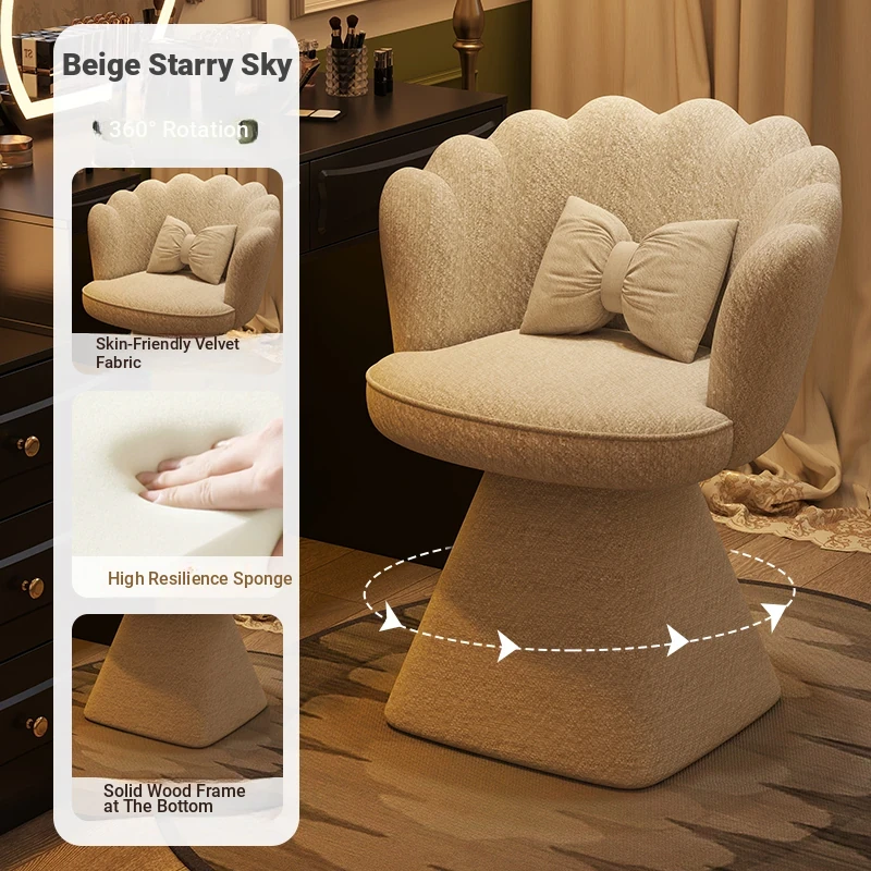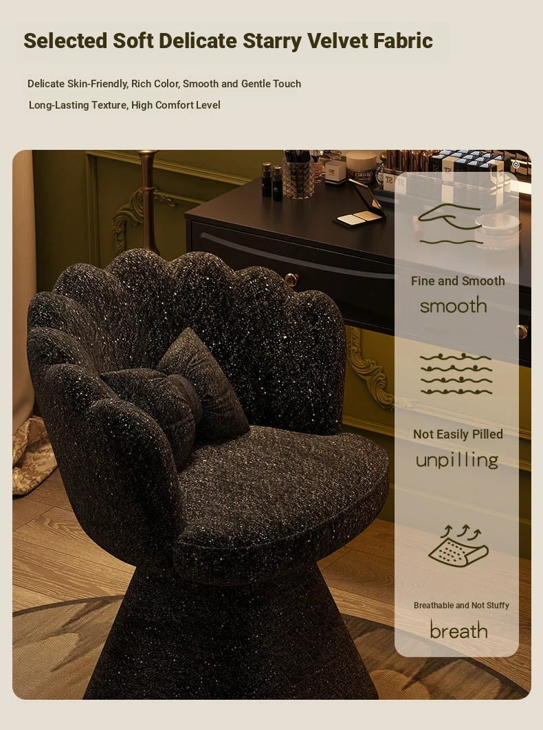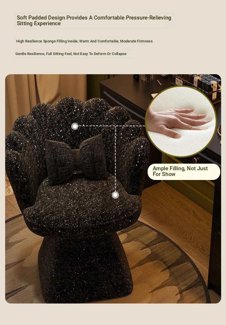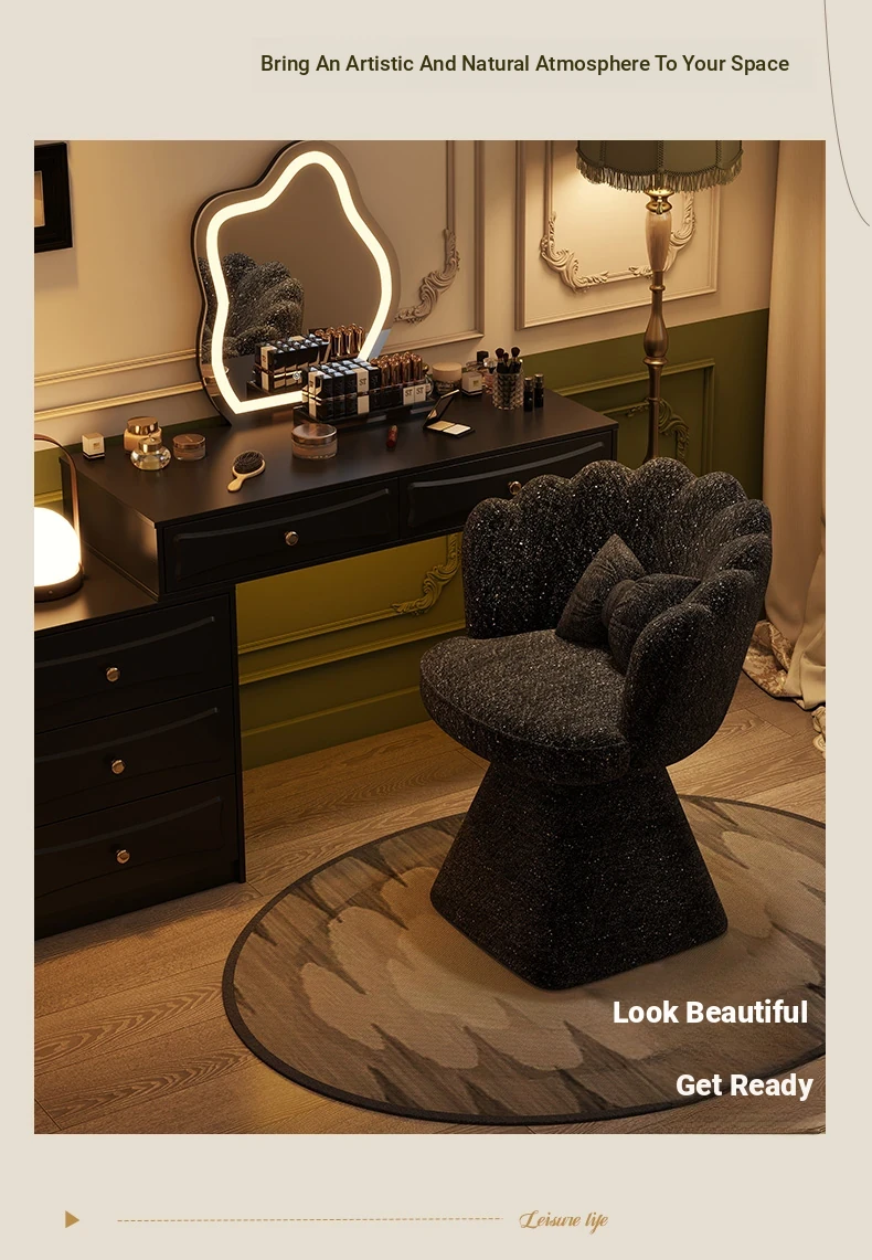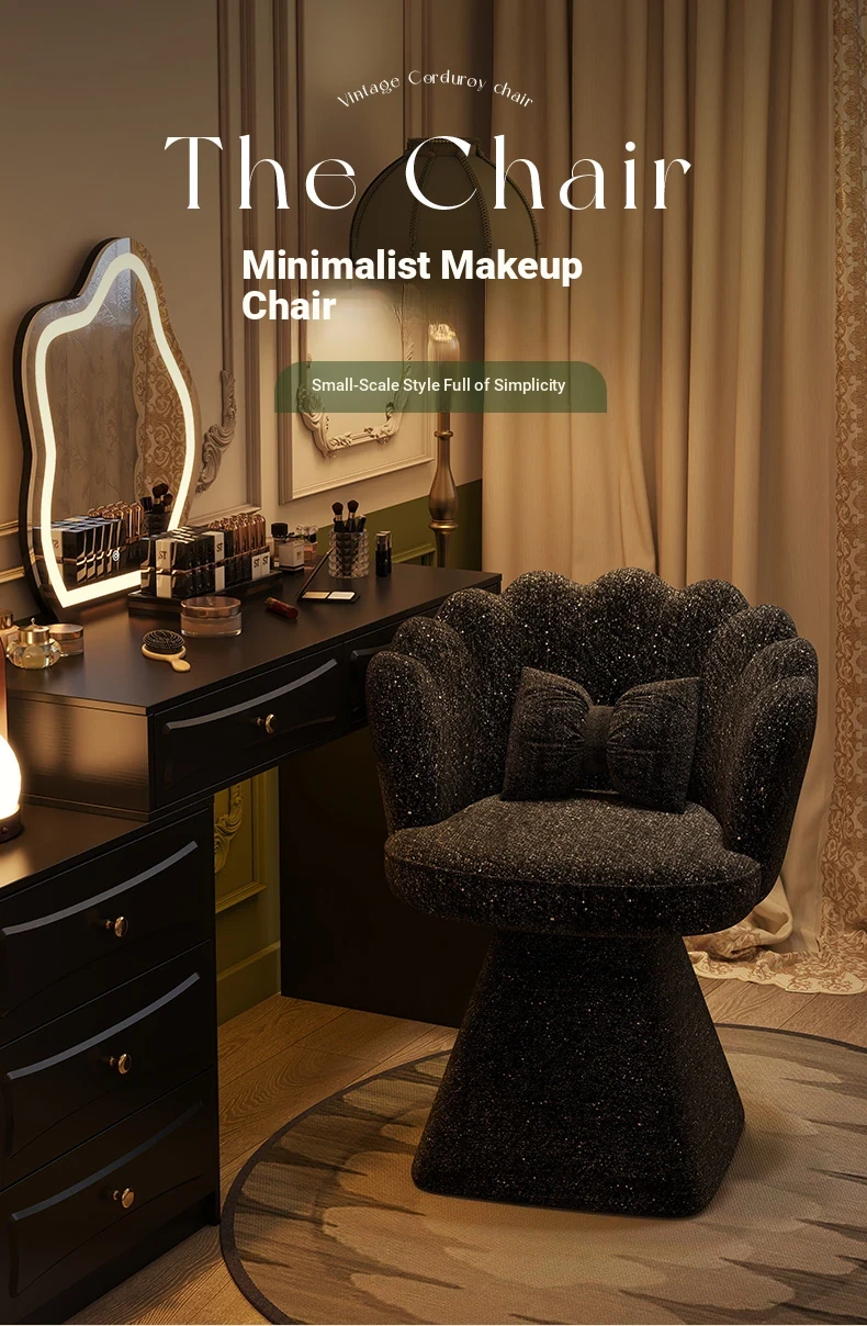 Trendy Makeup Chair - Minimalist Luxury Vanity Stool for Beauty and Nail Art, Elegant Petal Design for Bedroom Dressing Tables