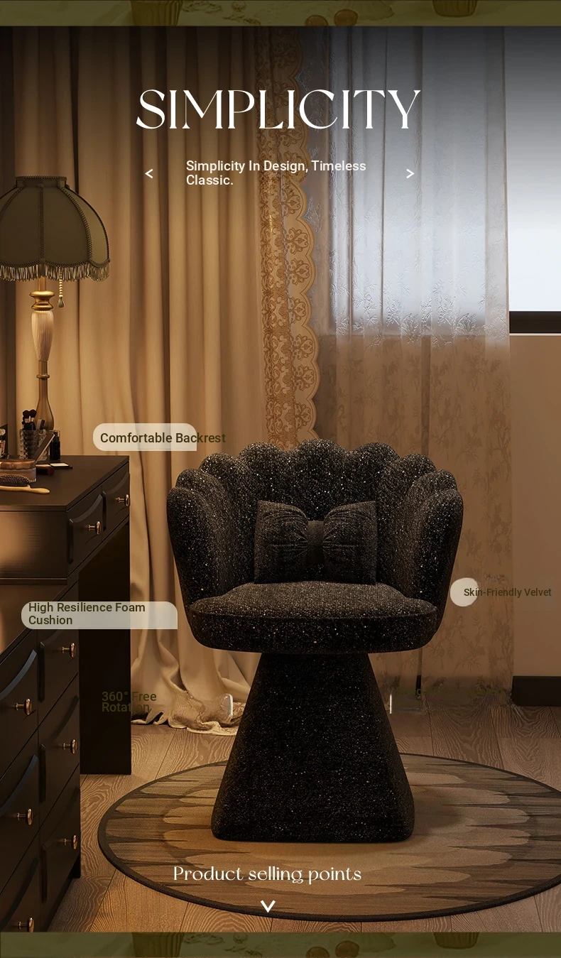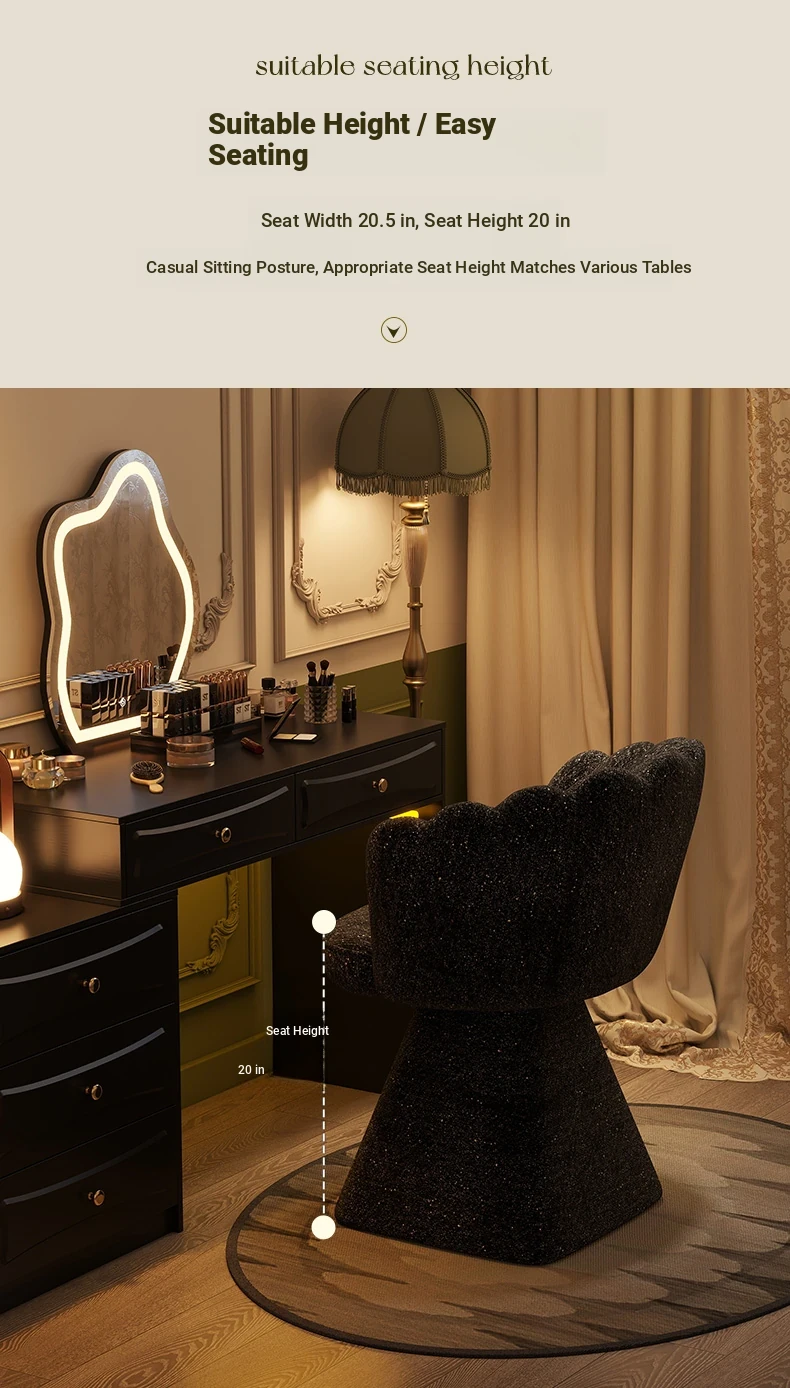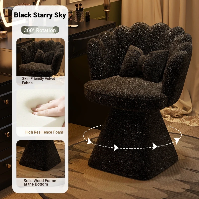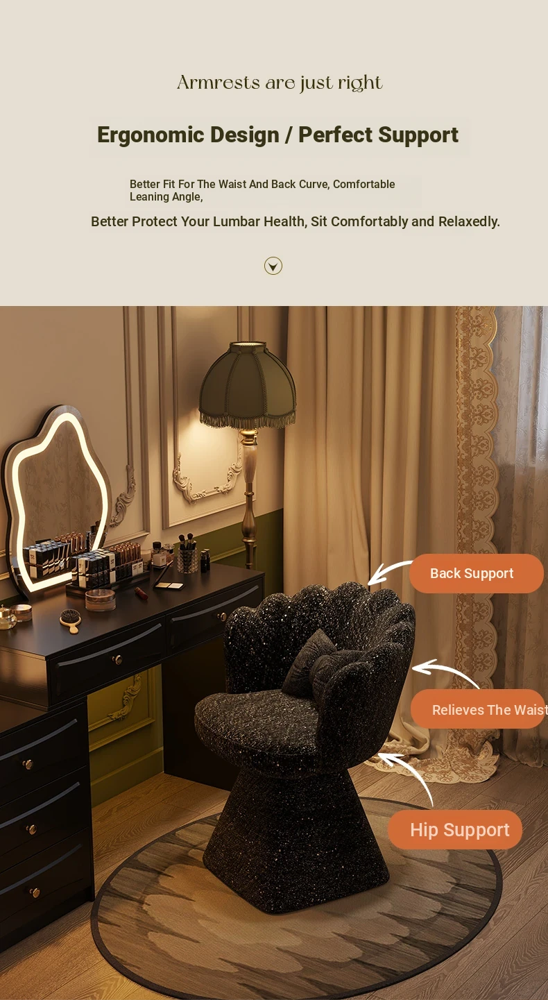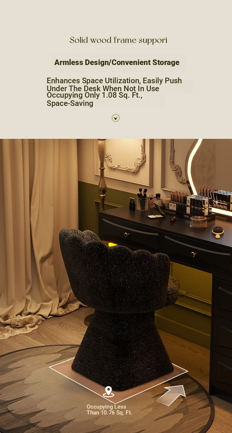 Trendy Makeup Chair - Minimalist Luxury Vanity Stool for Beauty and Nail Art, Elegant Petal Design for Bedroom Dressing Tables