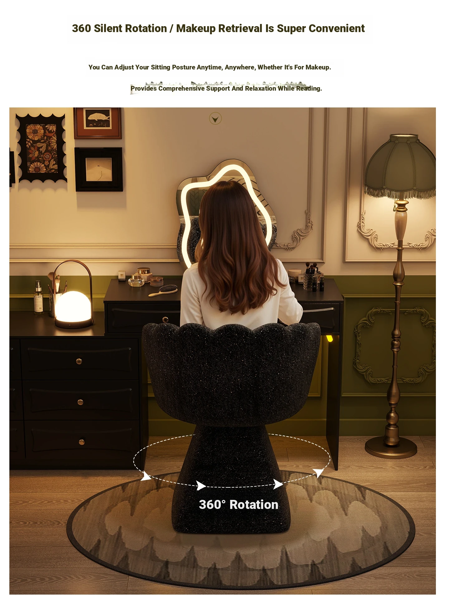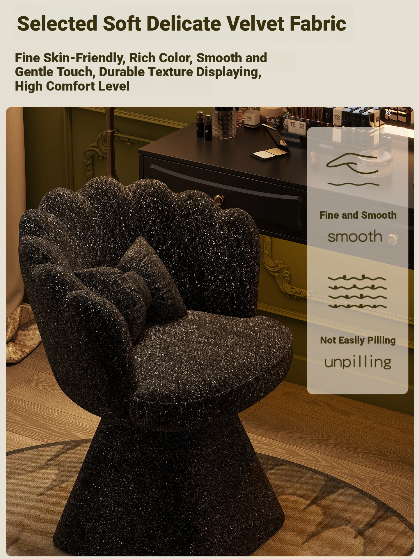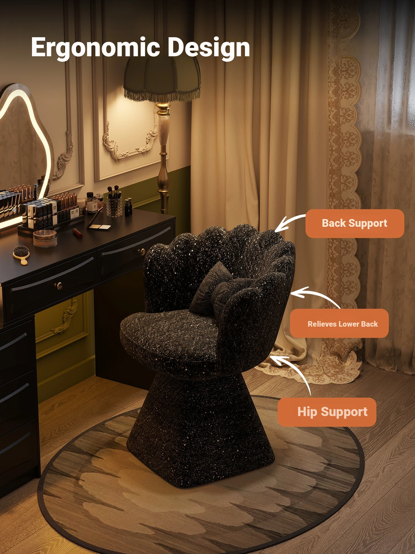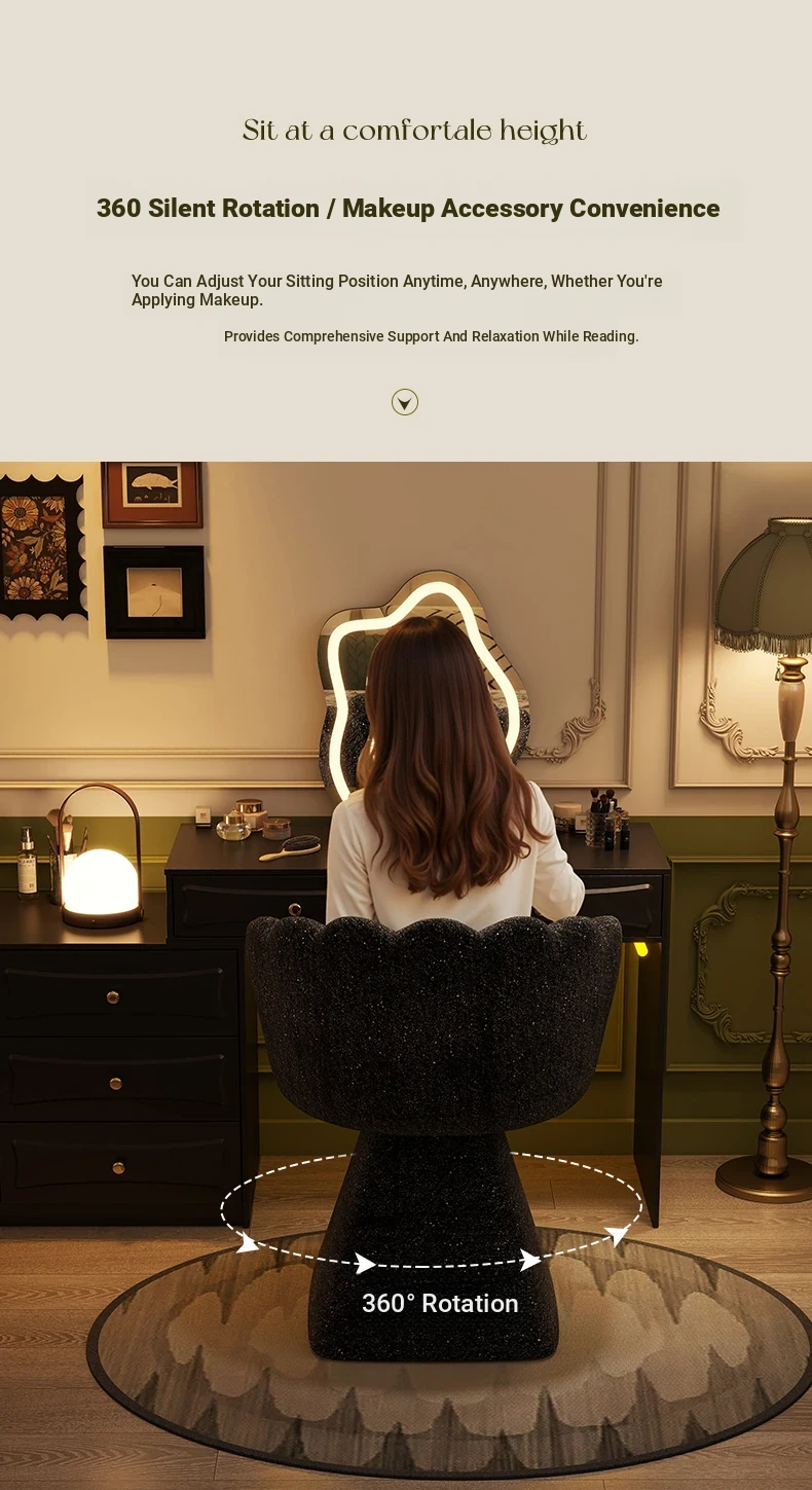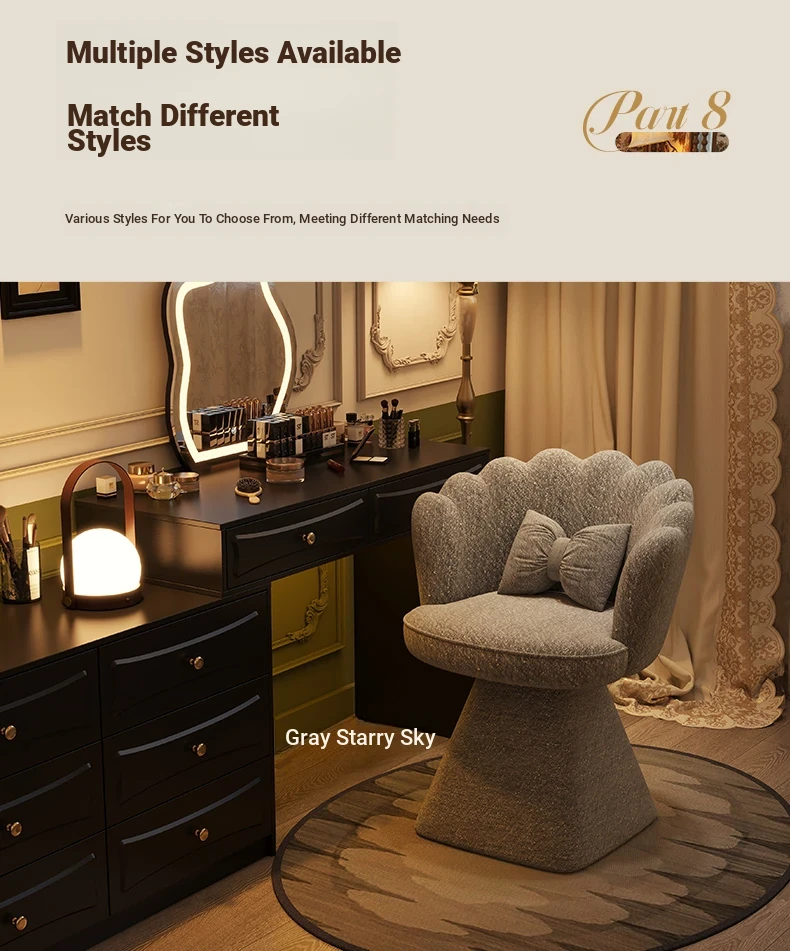 Trendy Makeup Chair - Minimalist Luxury Vanity Stool for Beauty and Nail Art, Elegant Petal Design for Bedroom Dressing Tables