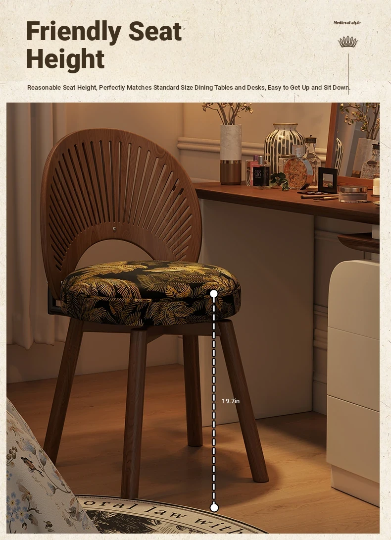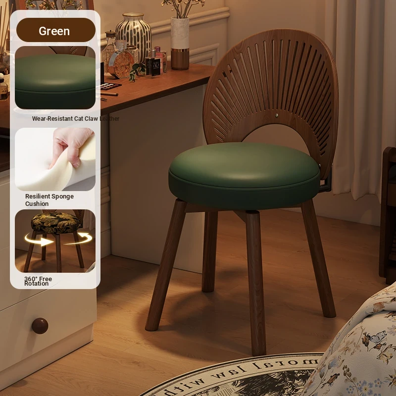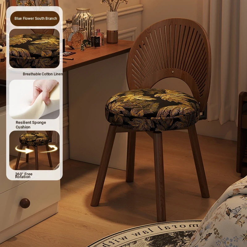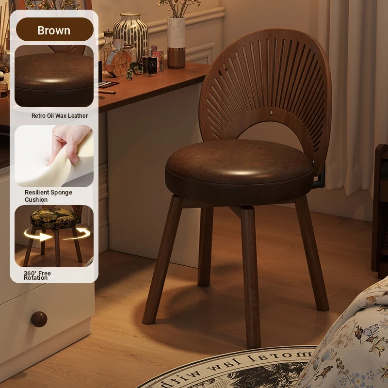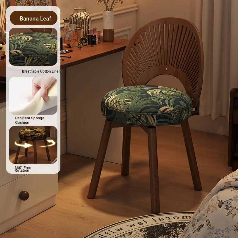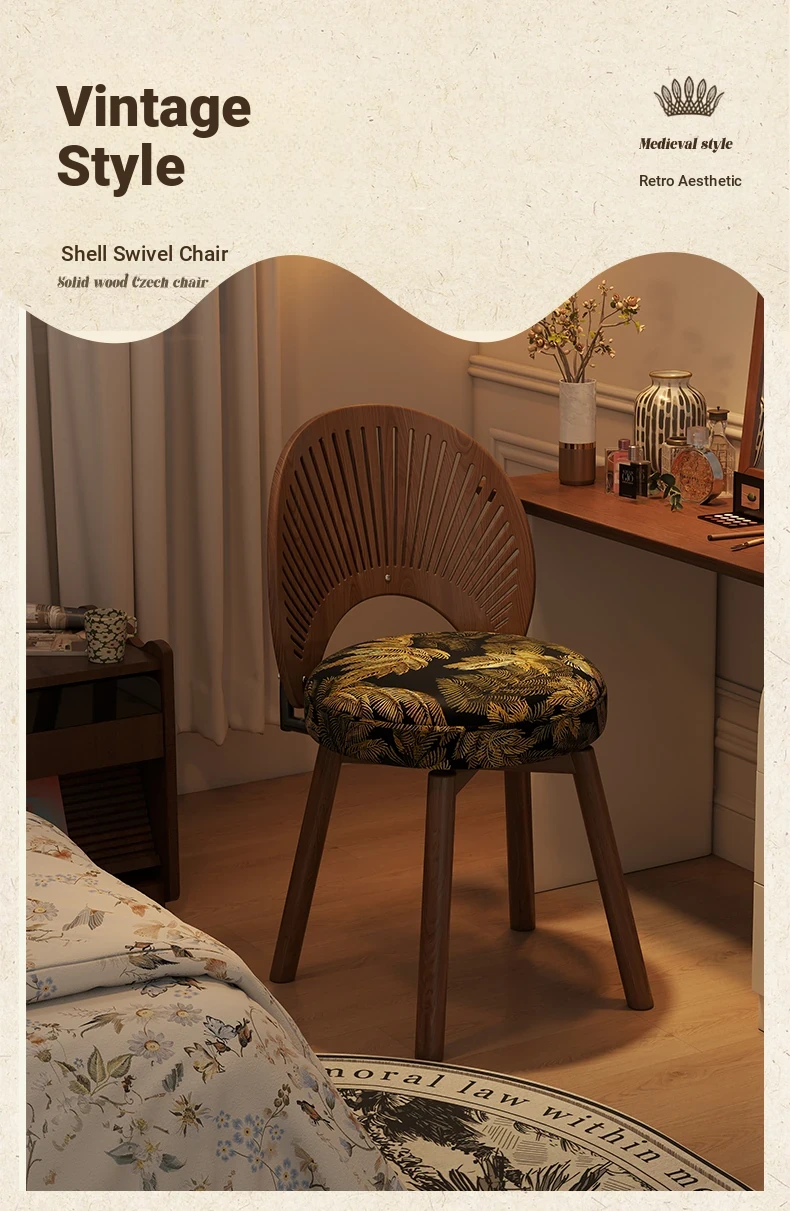 Vintage Rotating Makeup Stool - Elegant Dressing Table Chair for Girls' Bedrooms, Chic Cloakroom Seat, Retro Shell Design