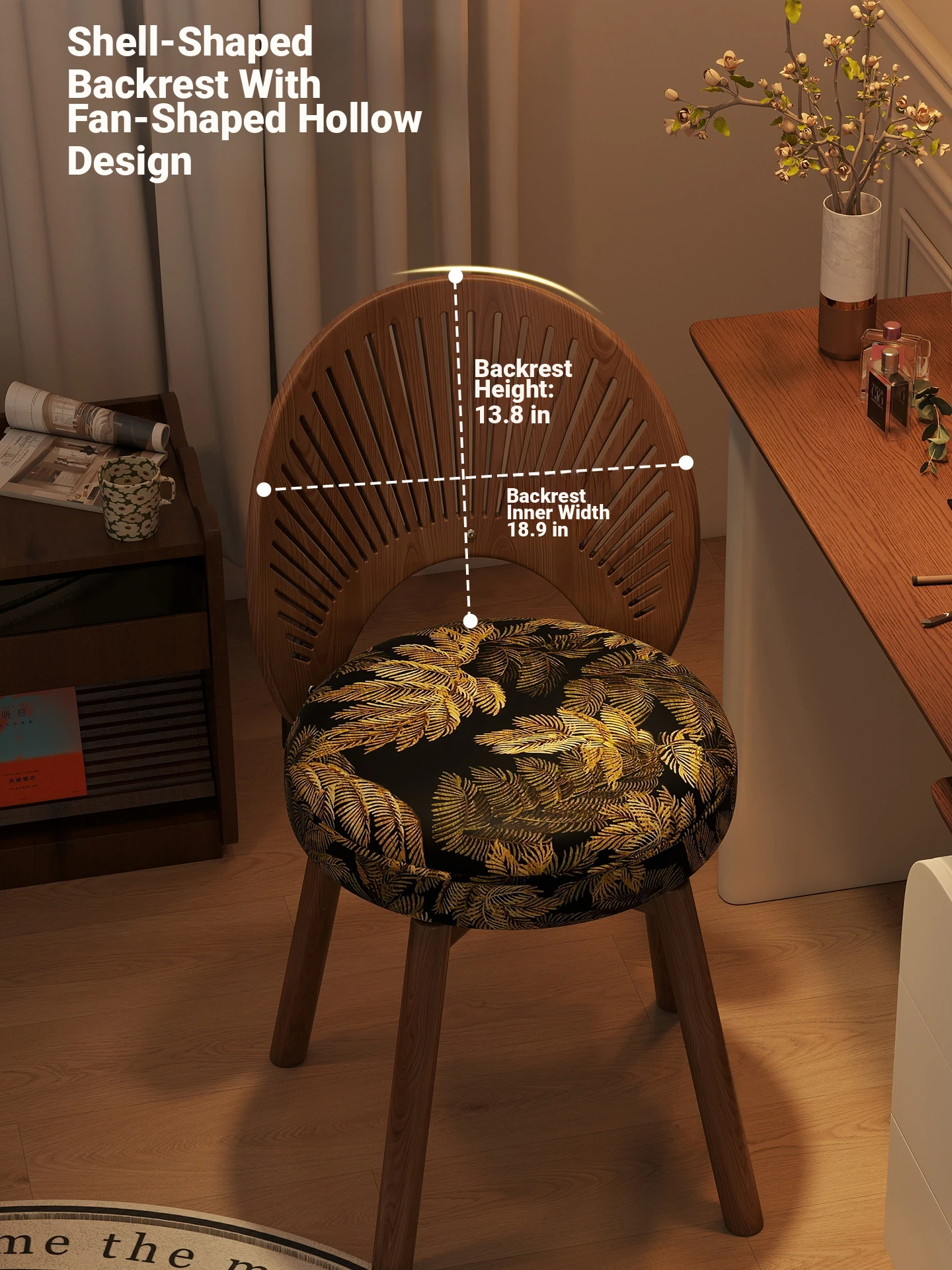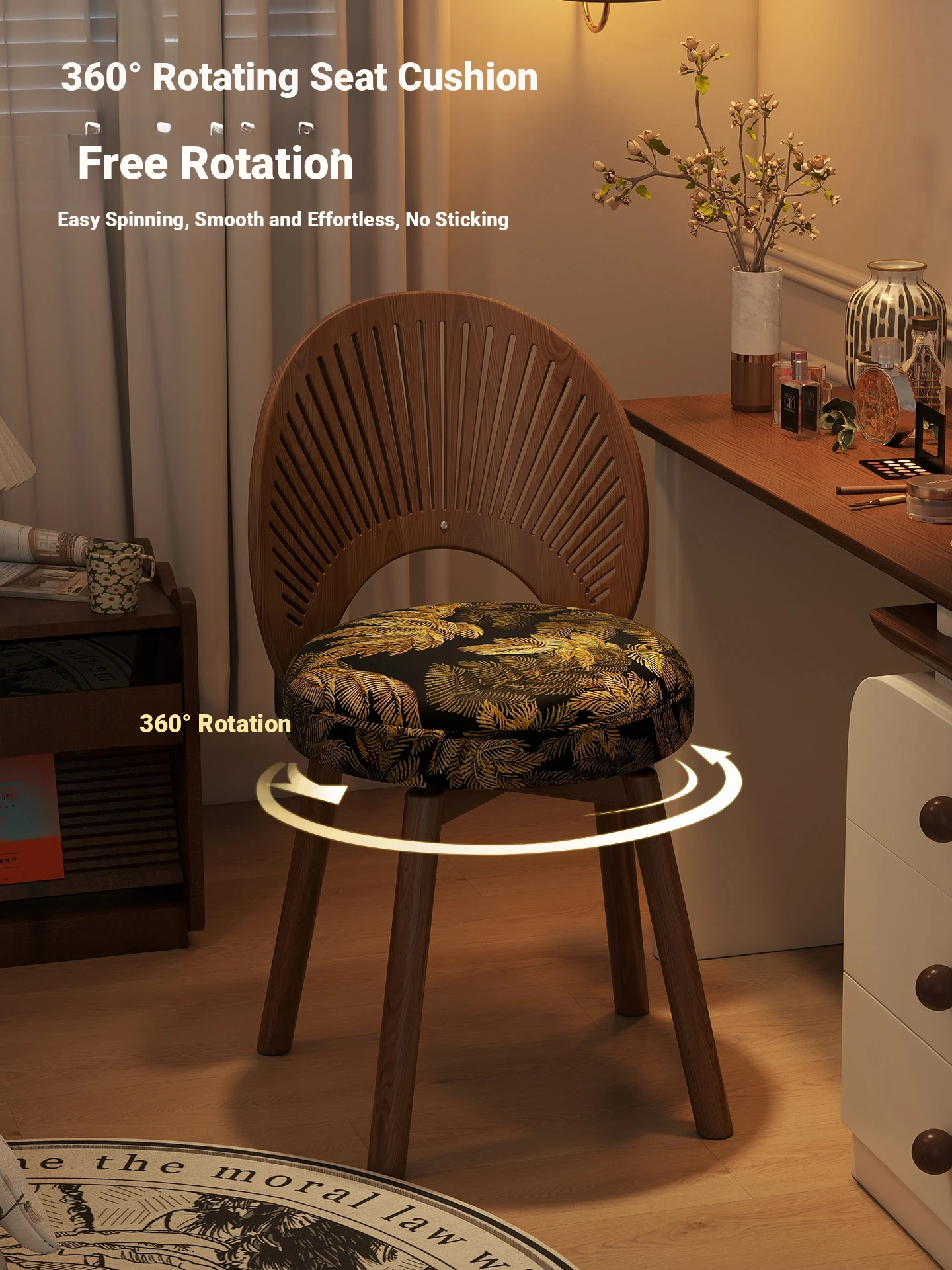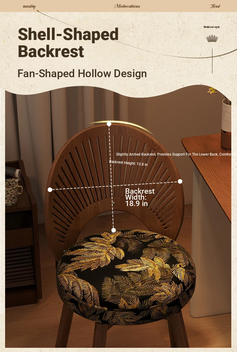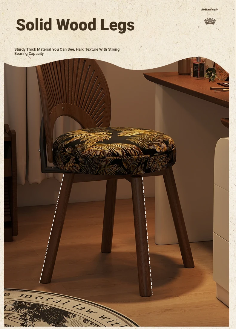 Vintage Rotating Makeup Stool - Elegant Dressing Table Chair for Girls' Bedrooms, Chic Cloakroom Seat, Retro Shell Design