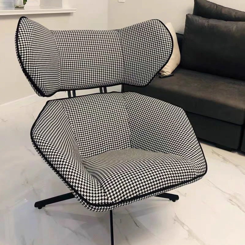 Nordic Luxury Houndstooth Accent Chair - Stylish Single Sofa with Swivel Design for Living Room, Perfect for Reading and Relaxation, Soft Fabric Snail Chair