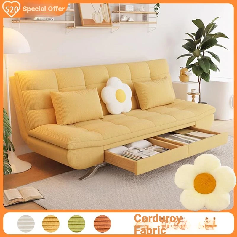 【Free Shipping to Hong Kong】Space-Saving Storage Drawer Convertible Sofa Bed in High-Tech Fabric - Perfect for Small Apartments, Foldable and Versatile for Double Use