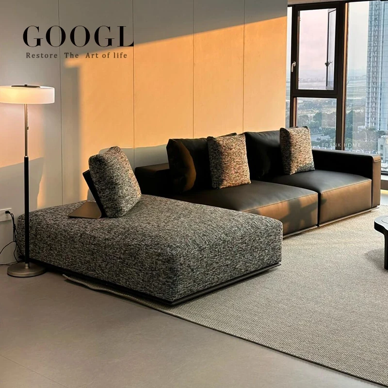 Xuanman Minimalist Italian Style Double-Sided Modular Sofa - Versatile Tofu Block Design for Stylish Living Rooms, Made with Soft Cotton-Linen Blend and Premium Leather