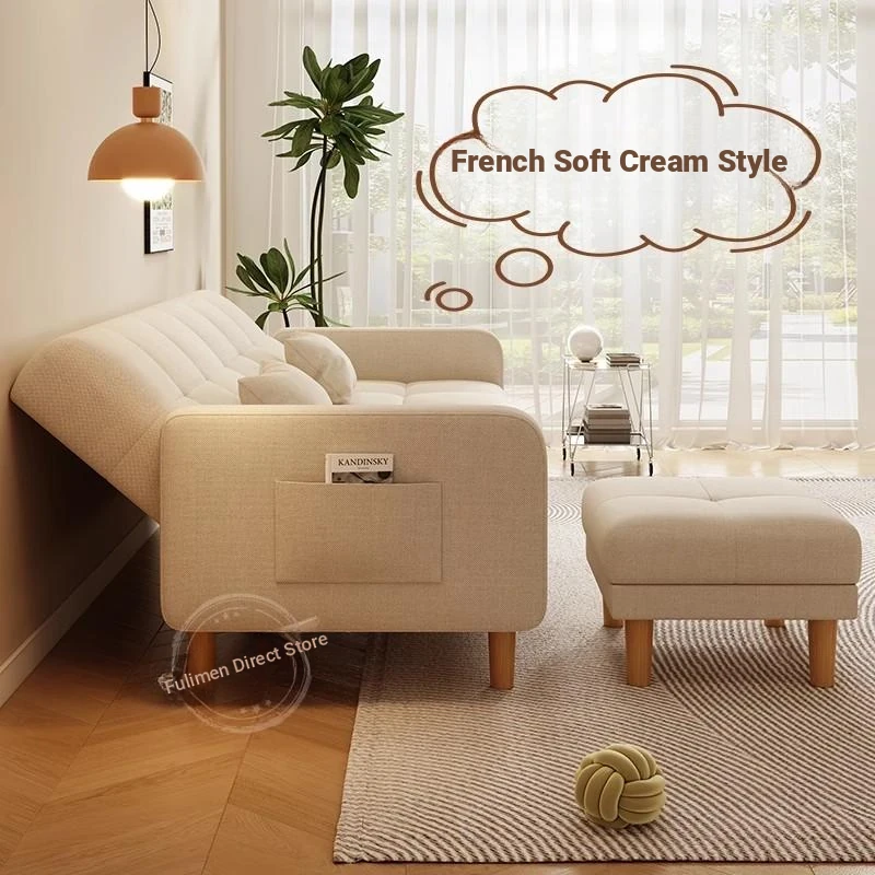 Free Shipping to Hong Kong: Modern Minimalist Cream-Colored Fabric Sofa for Small Living Rooms - 2023 New Foldable Design with Straight Lines
