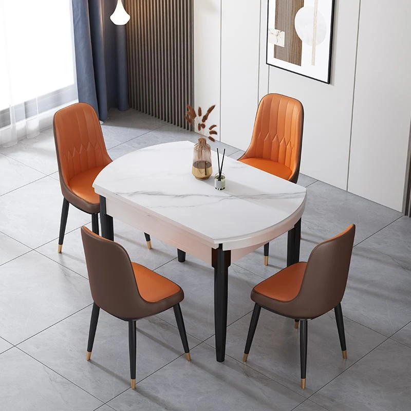 White Rock Dining Table and Chairs Set - Elegant Modern Minimalist Italian Design for Small Spaces - High-Quality Microcrystalline Stone Dining Table for Home Use