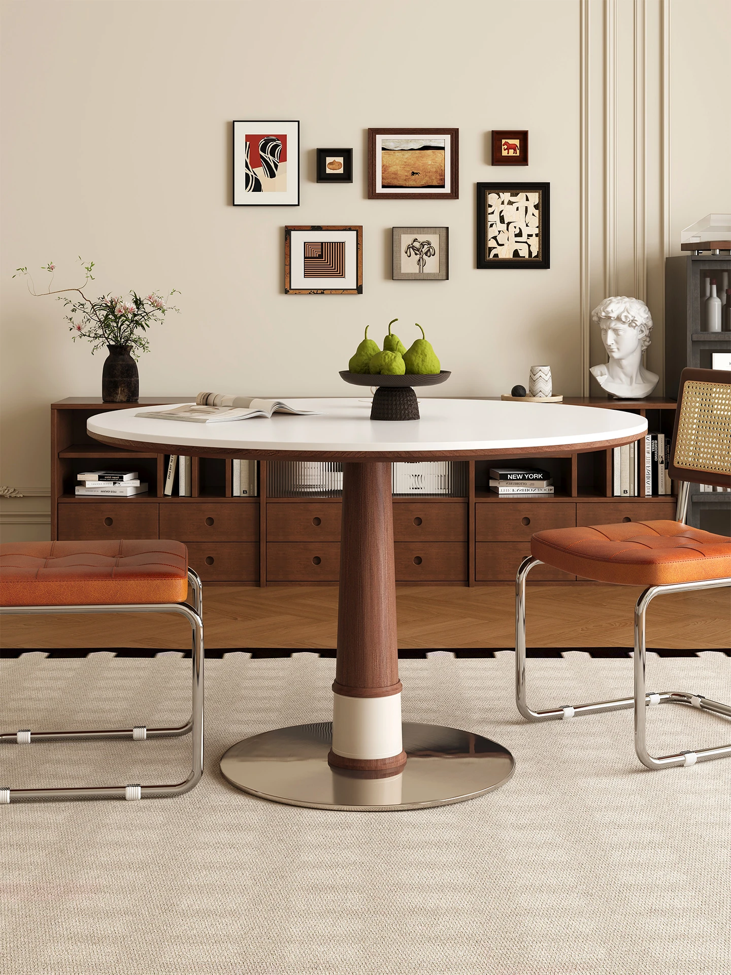 New Compact Dining Table for Small Spaces - Round Stainless Steel and Ash Wood Table with Rock Slab Top for Home and Restaurant Use, Perfect for Gatherings and Conversations