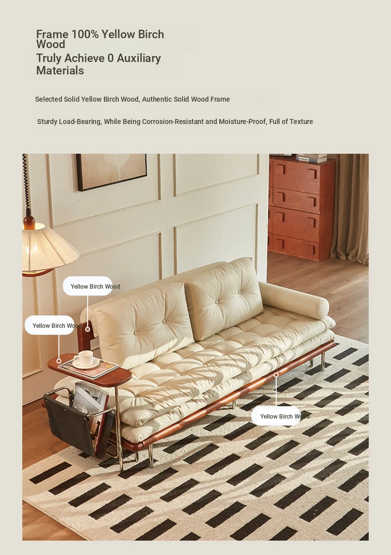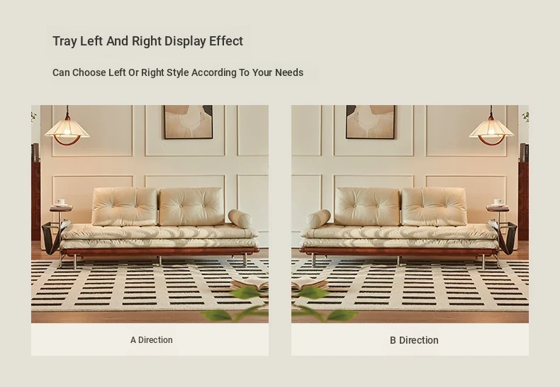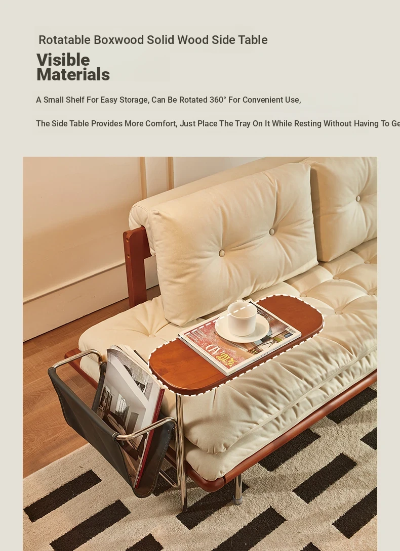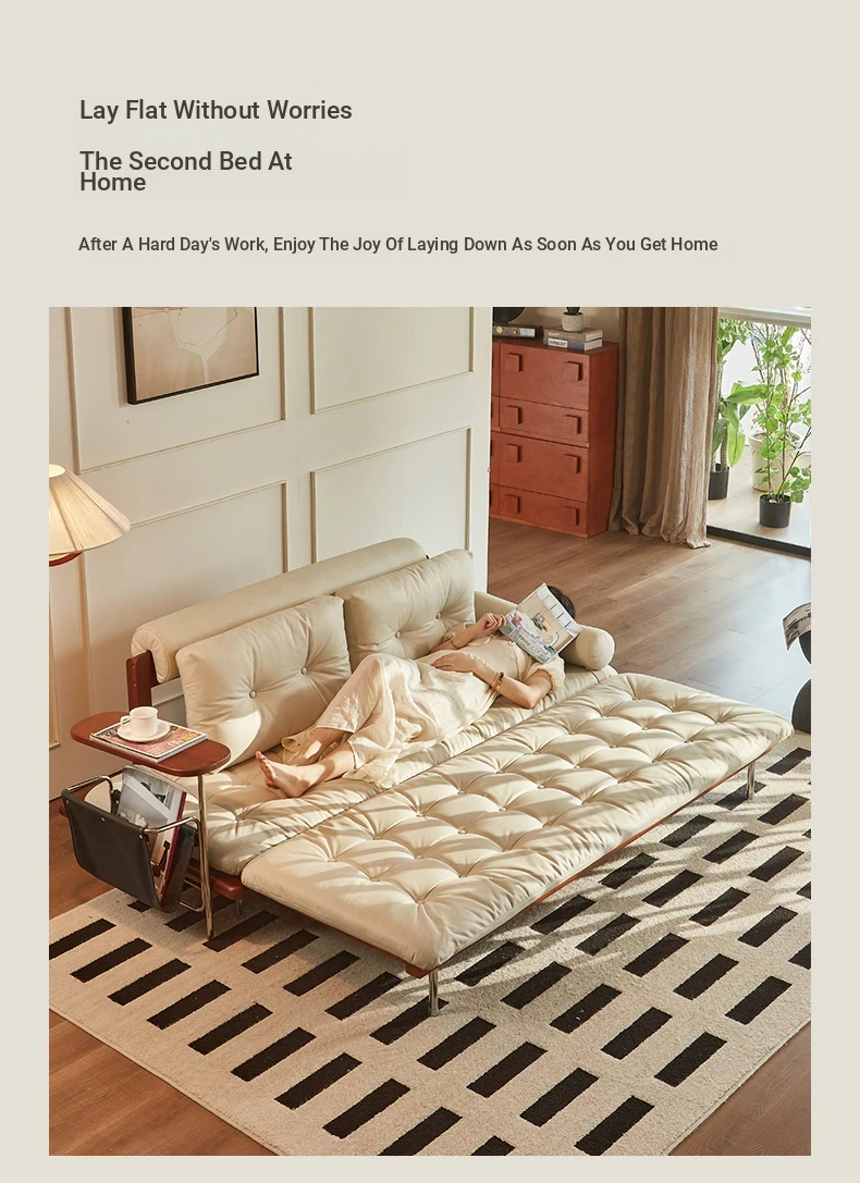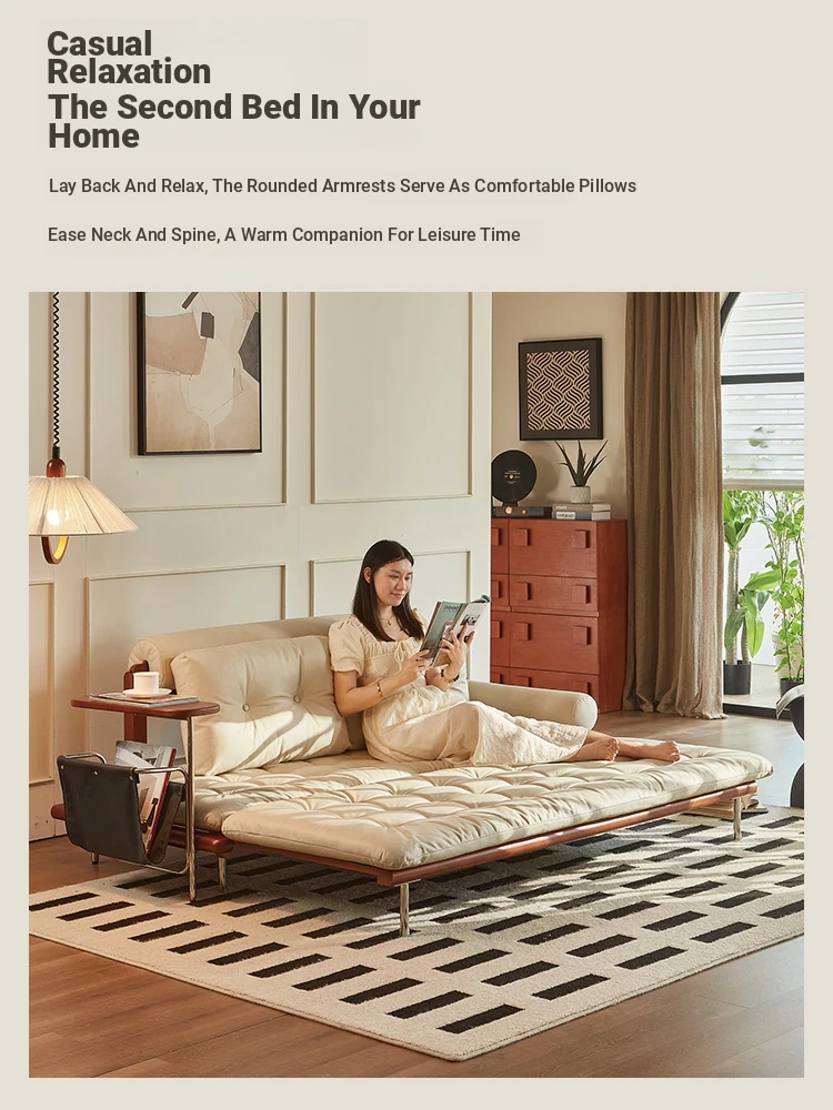 2024 New Vintage Style French Sofa Bed - Foldable and Multifunctional for Small Spaces, Simple and Elegant Design, Solid Wood, Perfect for Couples