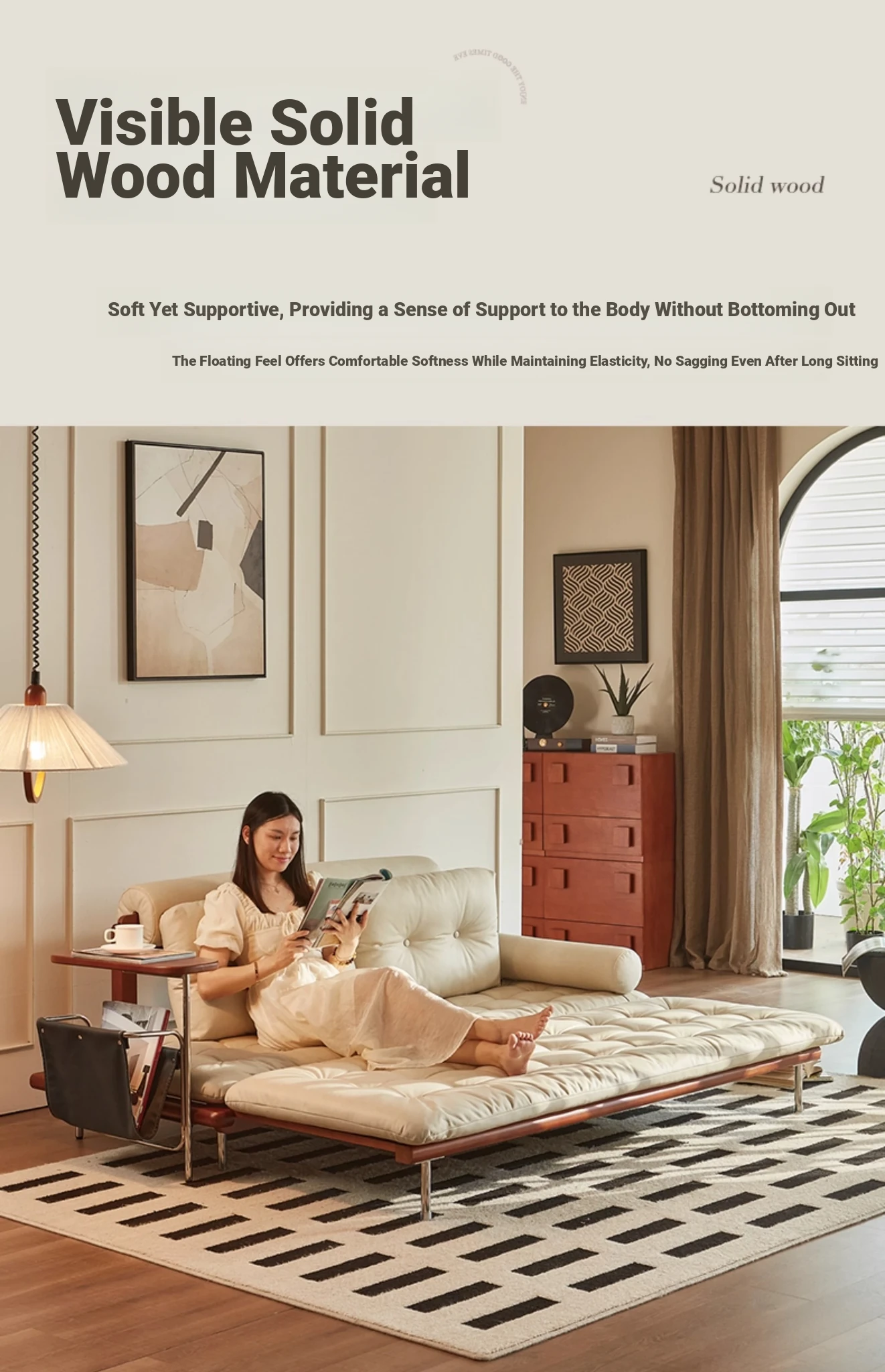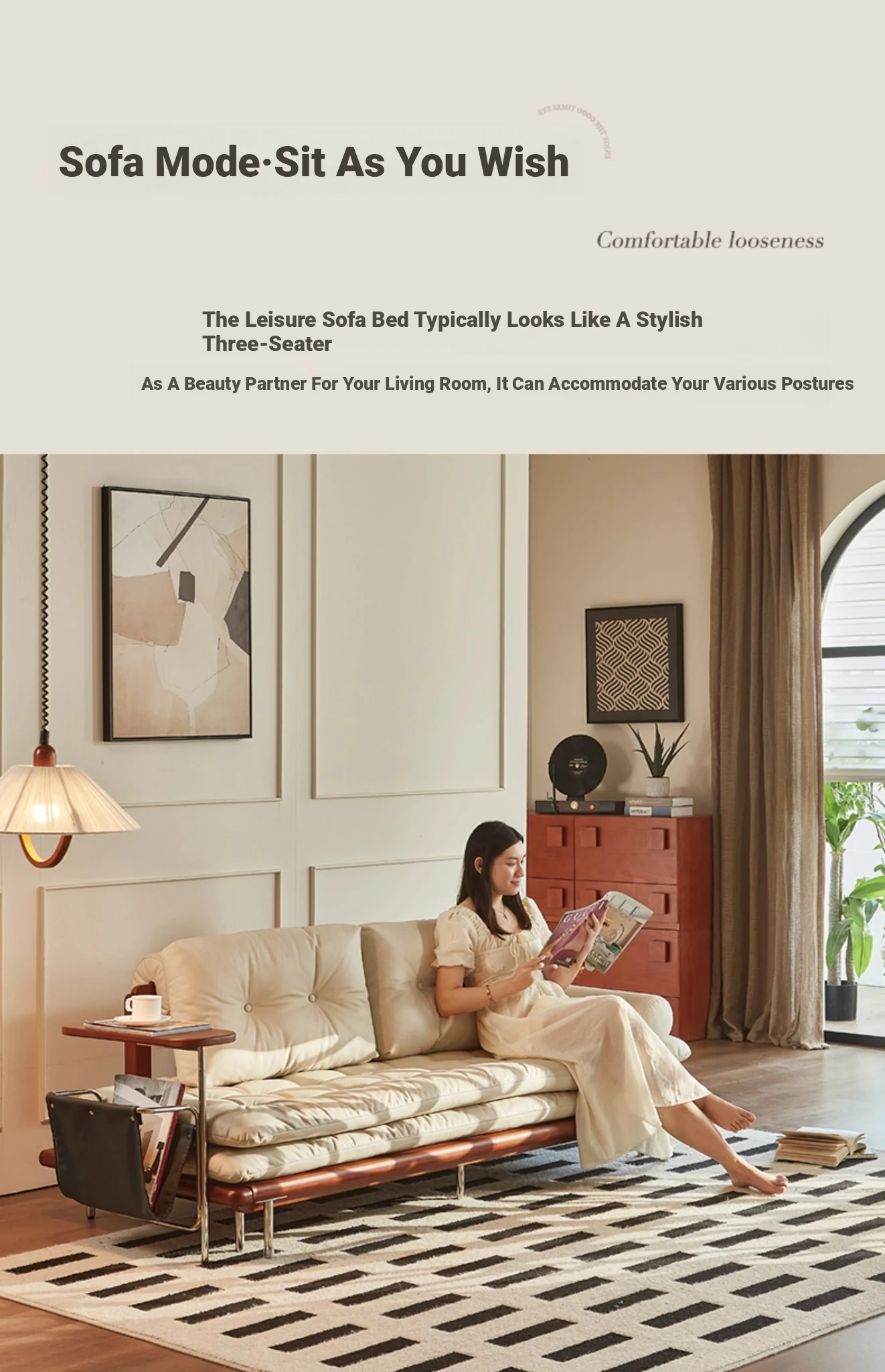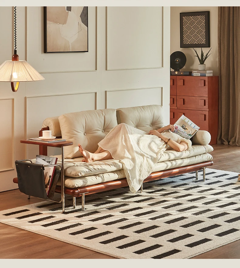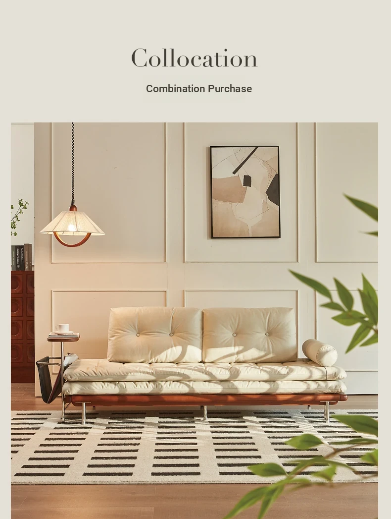 2024 New Vintage Style French Sofa Bed - Foldable and Multifunctional for Small Spaces, Simple and Elegant Design, Solid Wood, Perfect for Couples