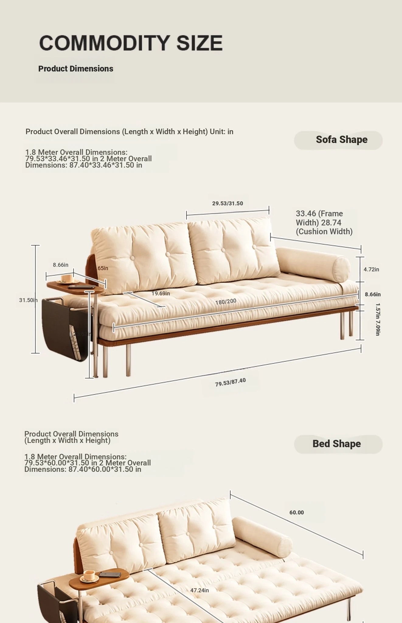 [Technology Cloth-Side B Direction] 78.74in Sofa Bed-khaki (Latex + Sponge Seat Bag)