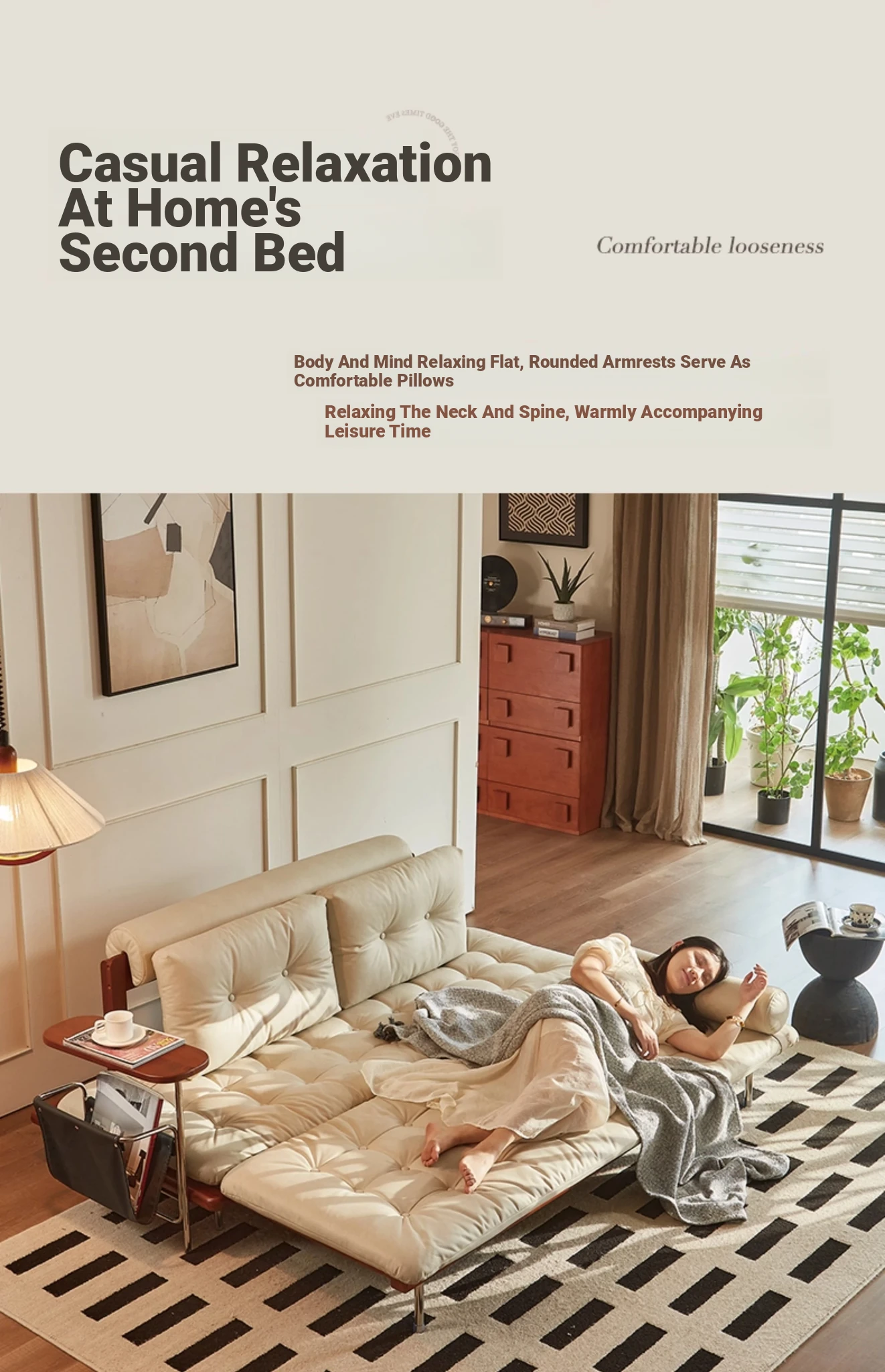 [Cat scratching cloth-Side B direction] 78.74in sofa bed-creamy-white (LaTeX + sponge seat bag)