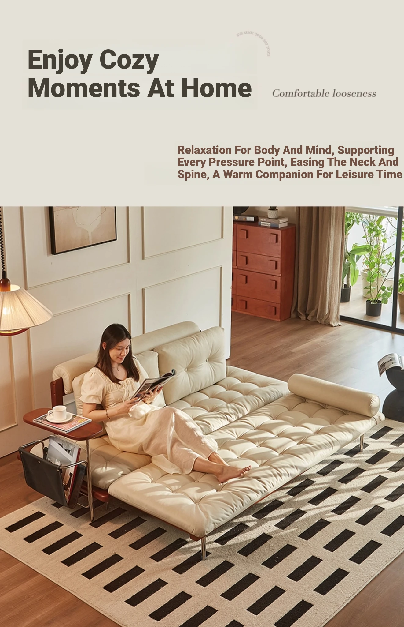 [Corduroy-Side B direction] 78.74in sofa bed-cream white (LaTeX + sponge seat bag)
