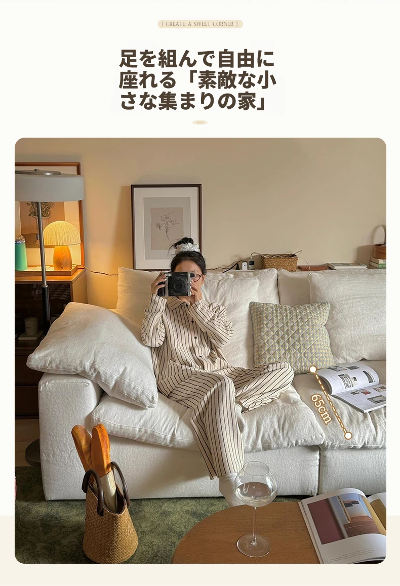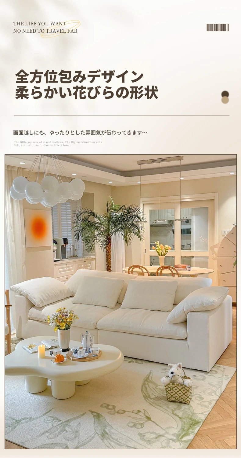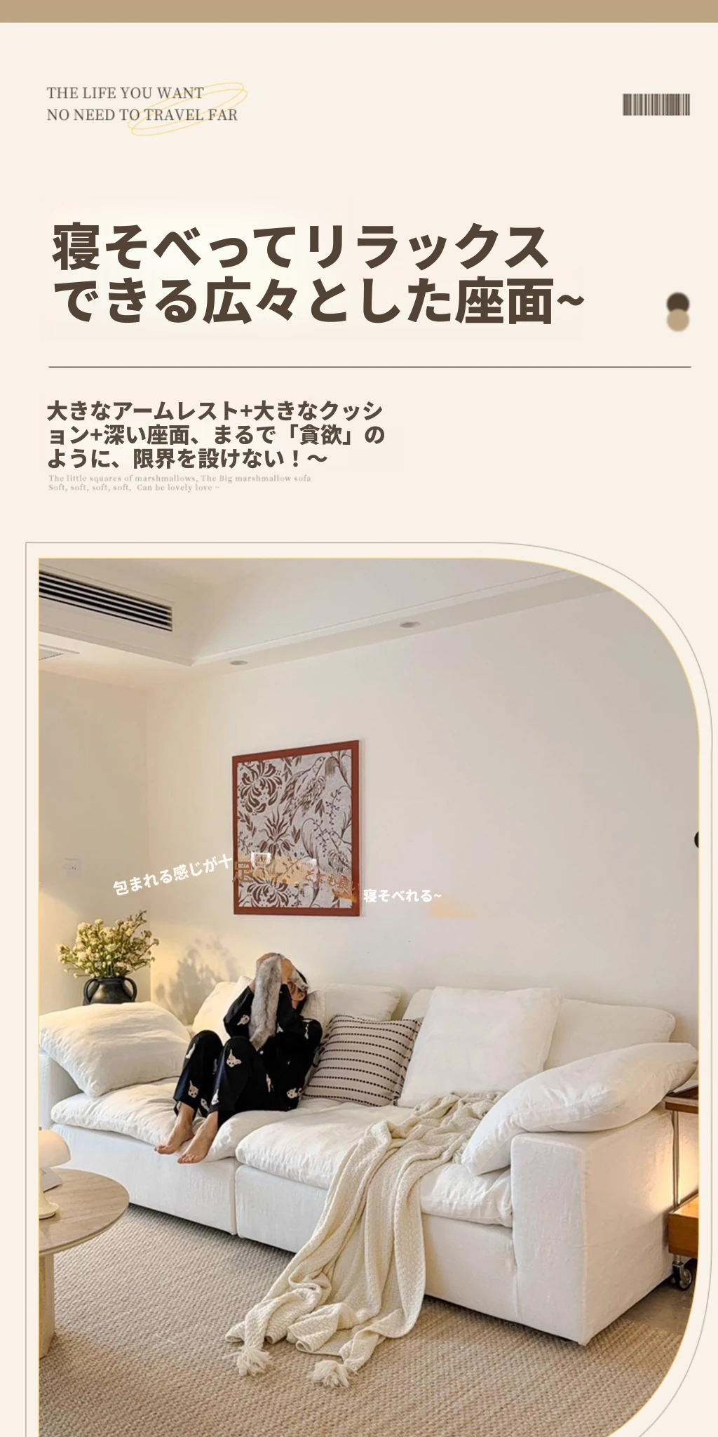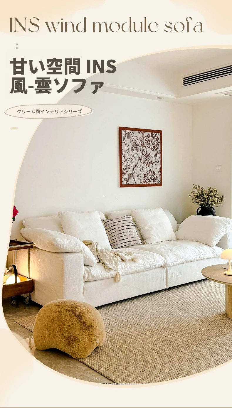 2025年新款!雲のような柔らかさを持つクリーム色の侘び寂び風モジュラーソファ。小型リビングに最適なデザインで、心地よい空間を演出します。あなたの生活にぴったりのスタイルをお届け!