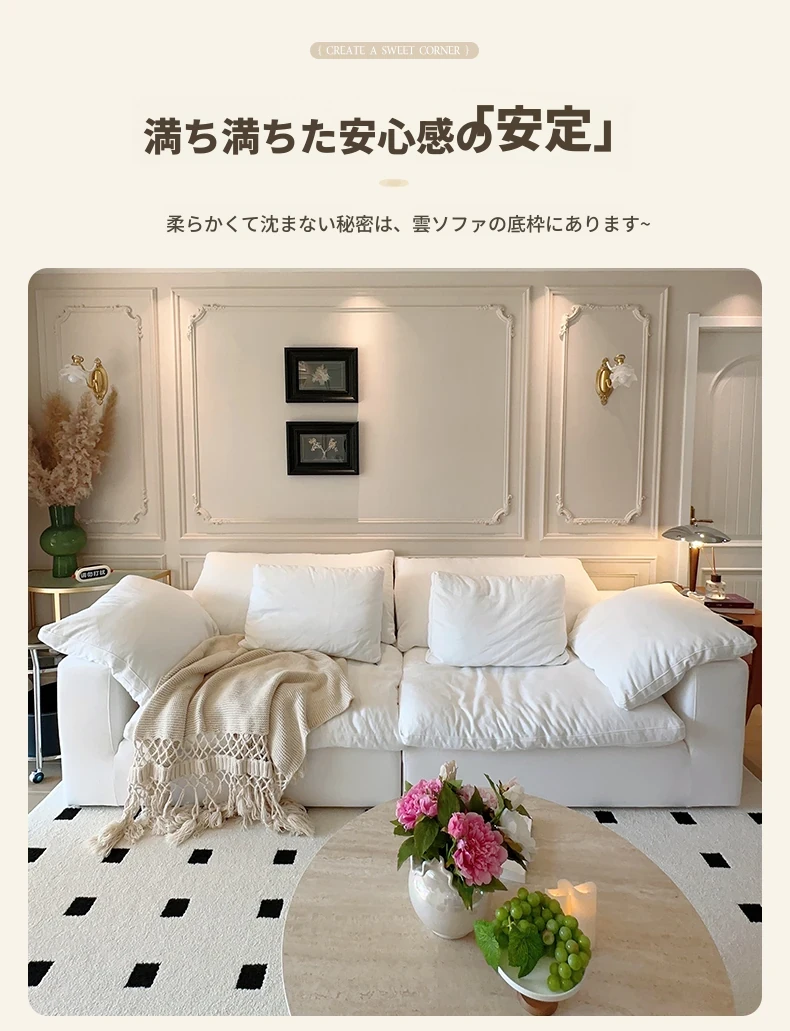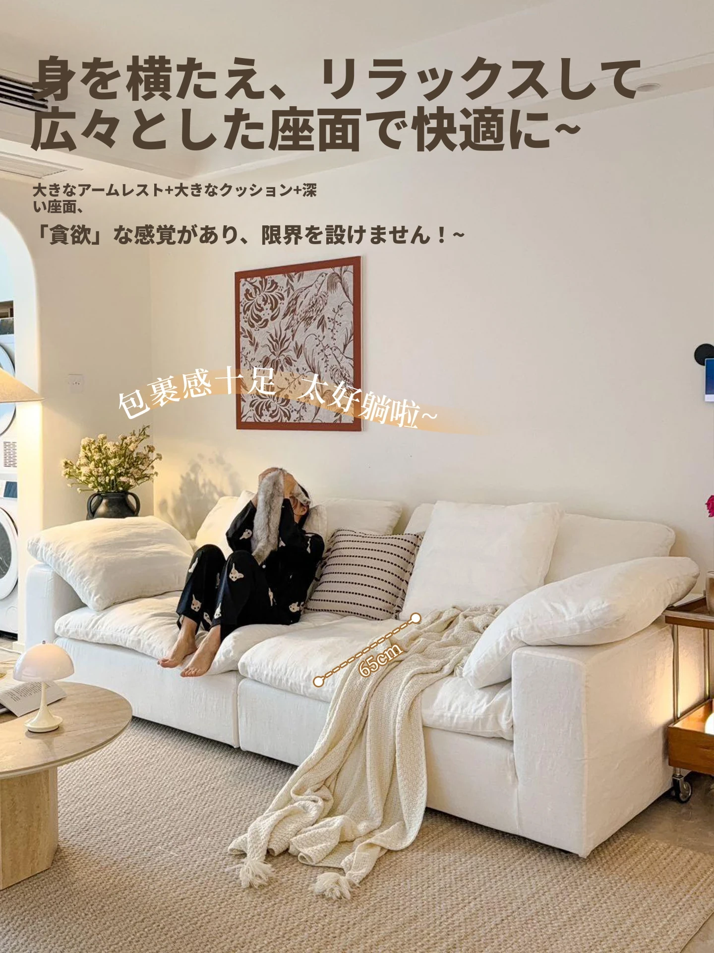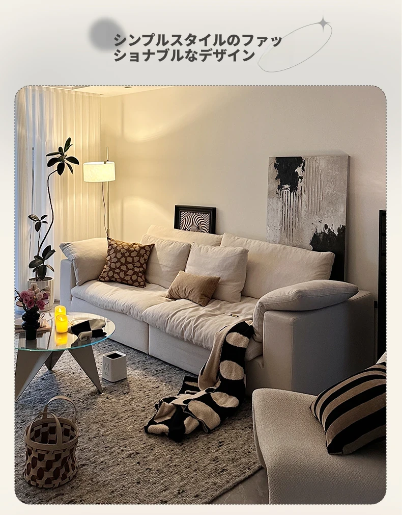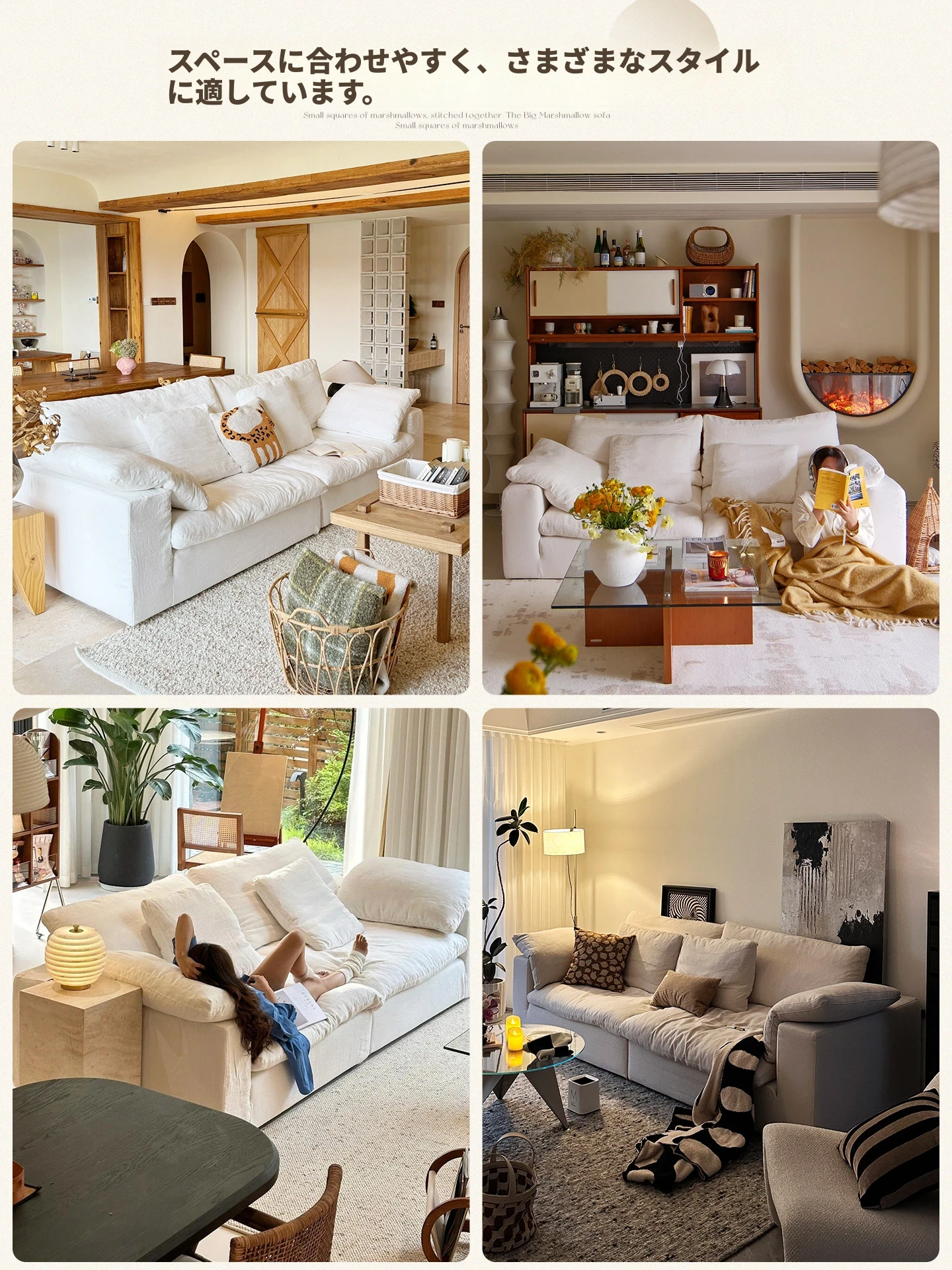 2025年新款!雲のような柔らかさを持つクリーム色の侘び寂び風モジュラーソファ。小型リビングに最適なデザインで、心地よい空間を演出します。あなたの生活にぴったりのスタイルをお届け!