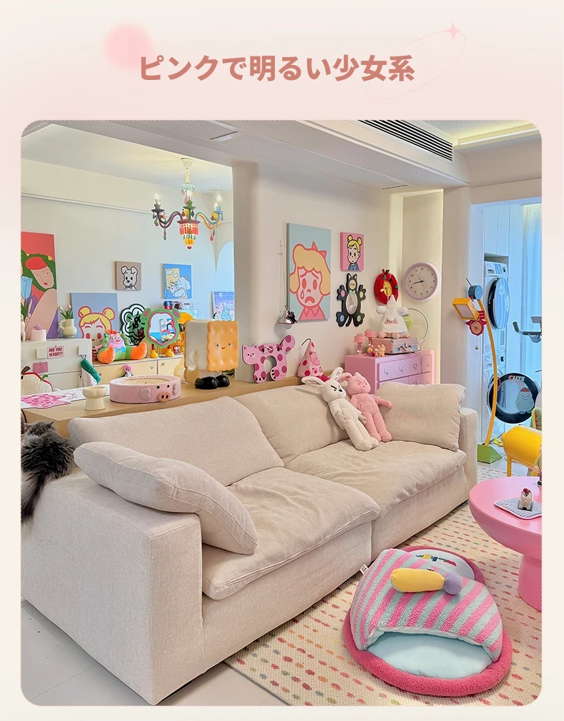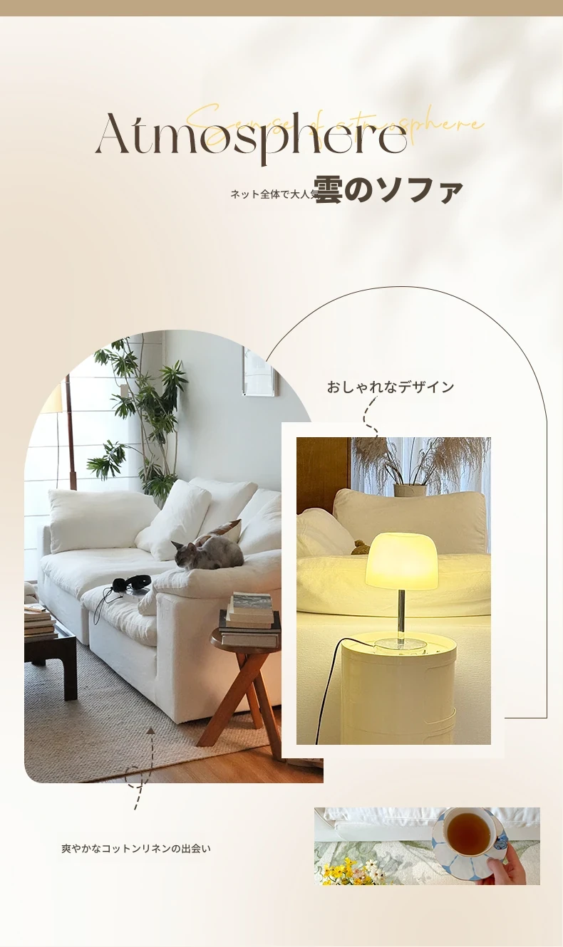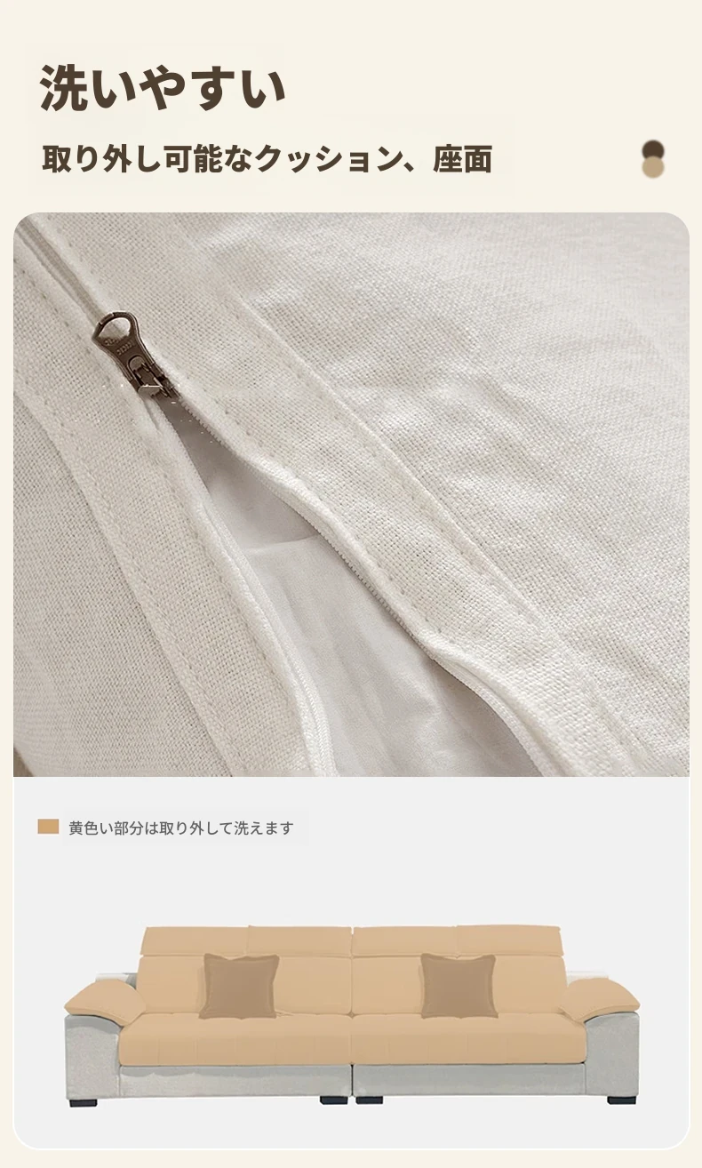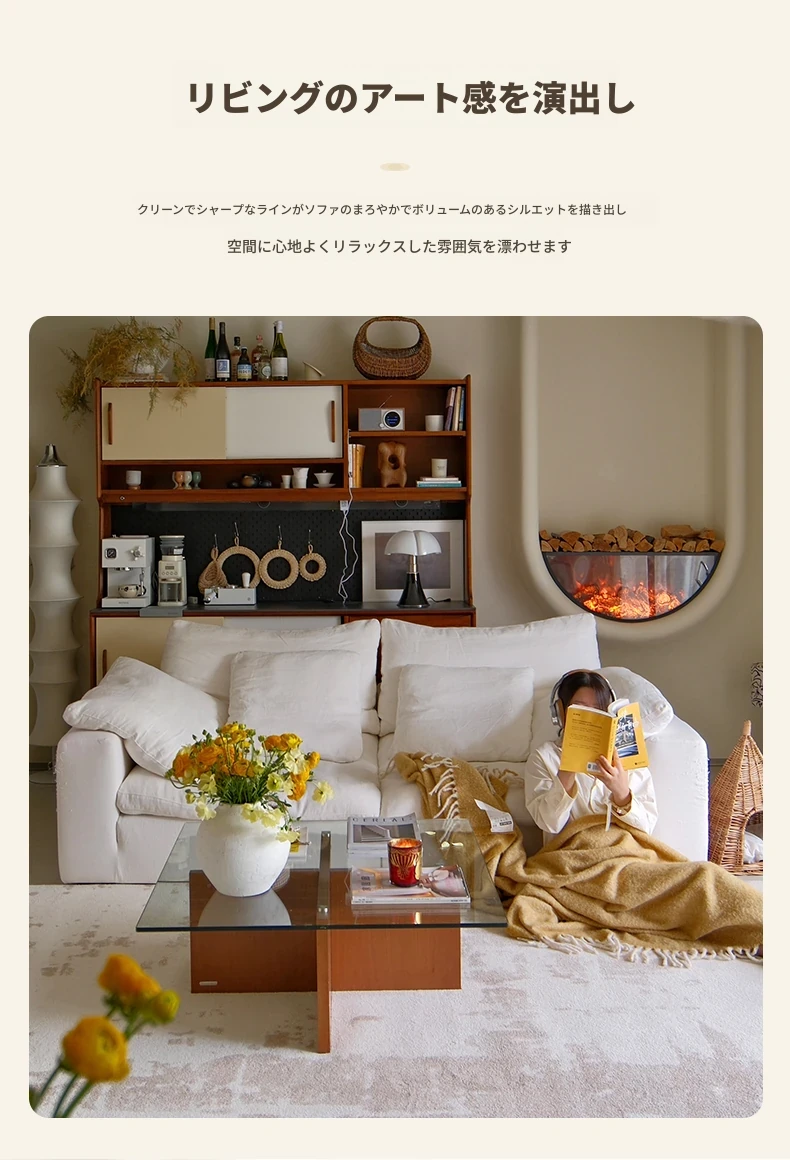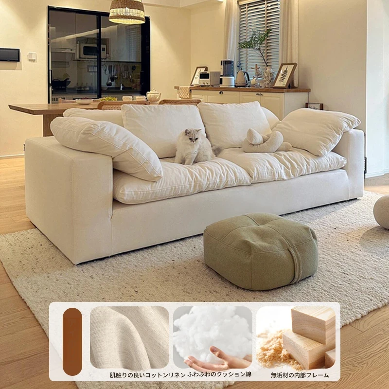 2025年新款!雲のような柔らかさを持つクリーム色の侘び寂び風モジュラーソファ。小型リビングに最適なデザインで、心地よい空間を演出します。あなたの生活にぴったりのスタイルをお届け!