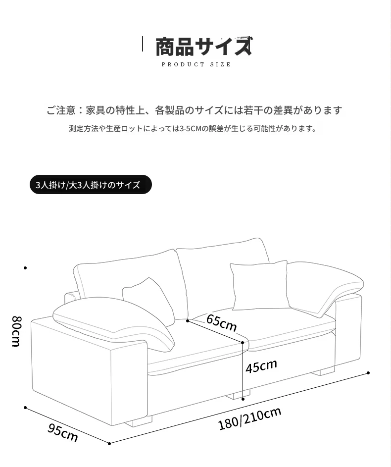 大三人用210CM【全体/ダブルソファ】組み立て発送