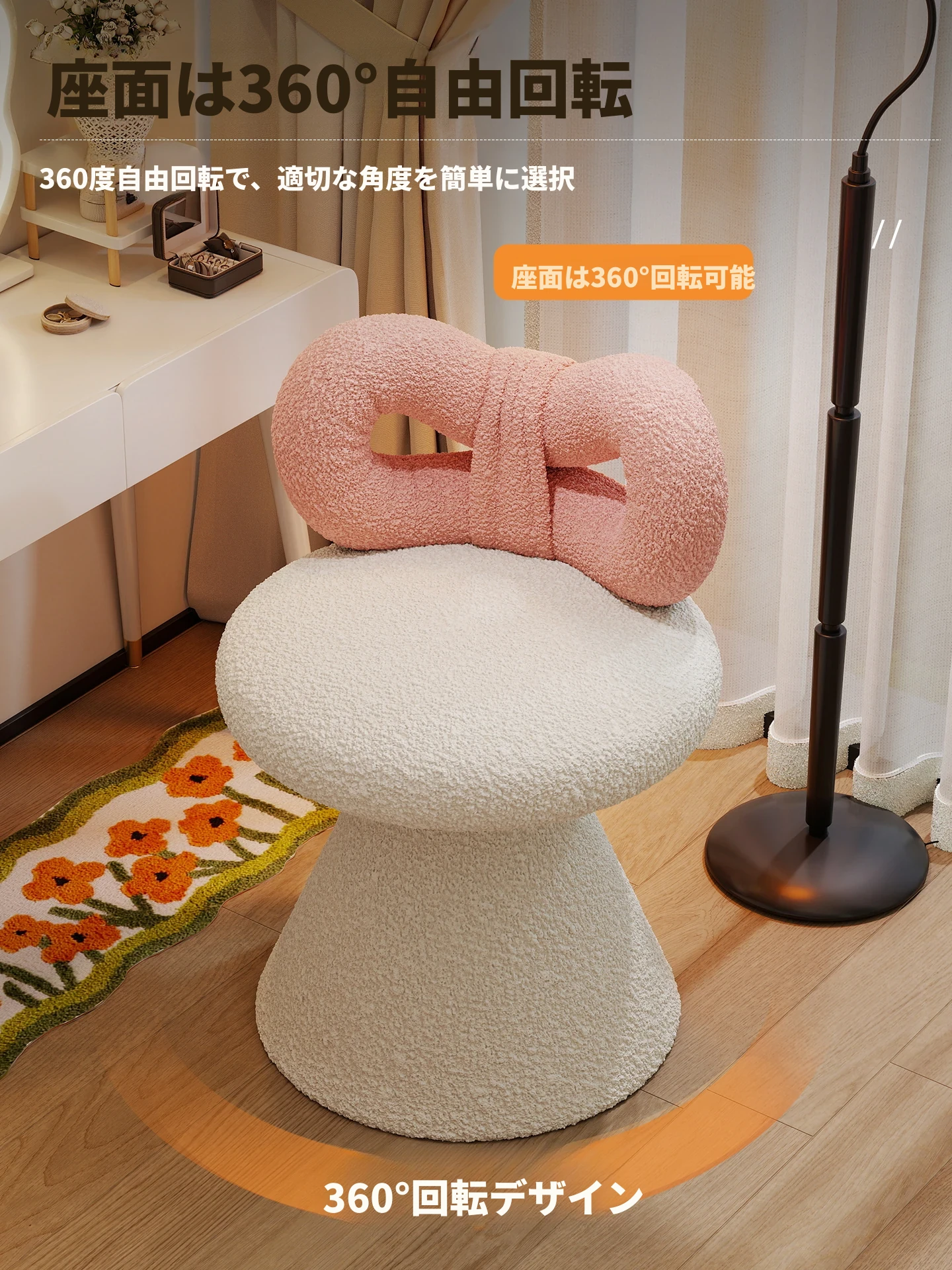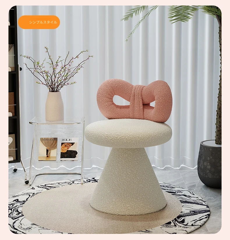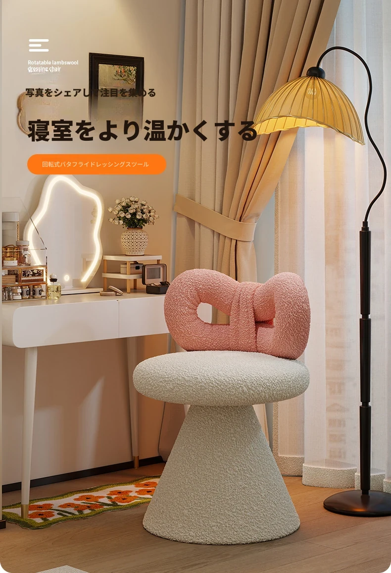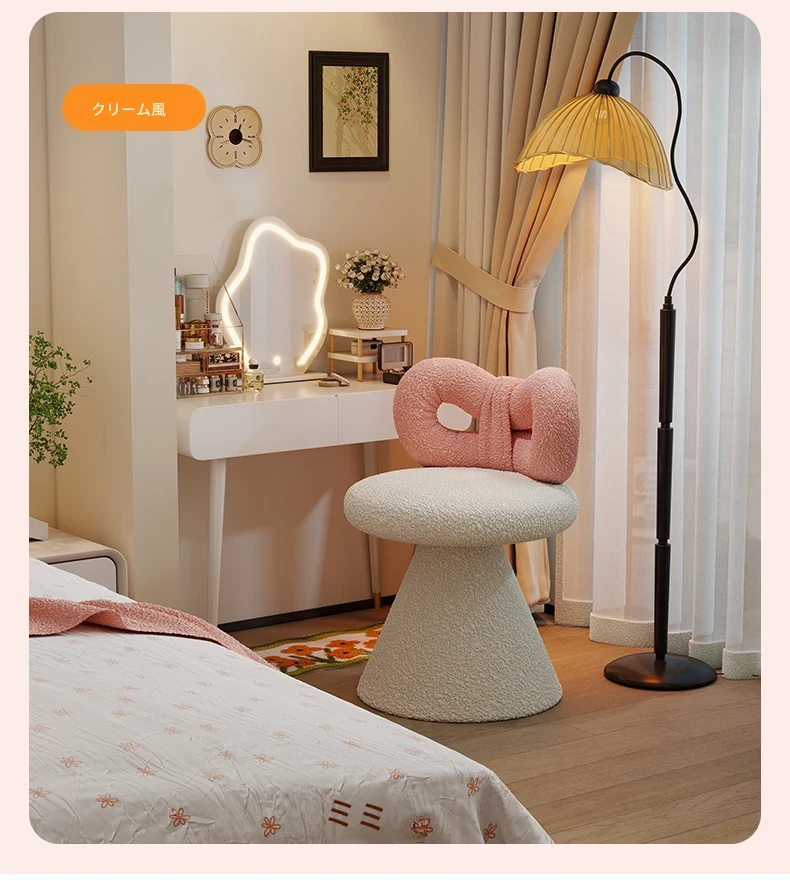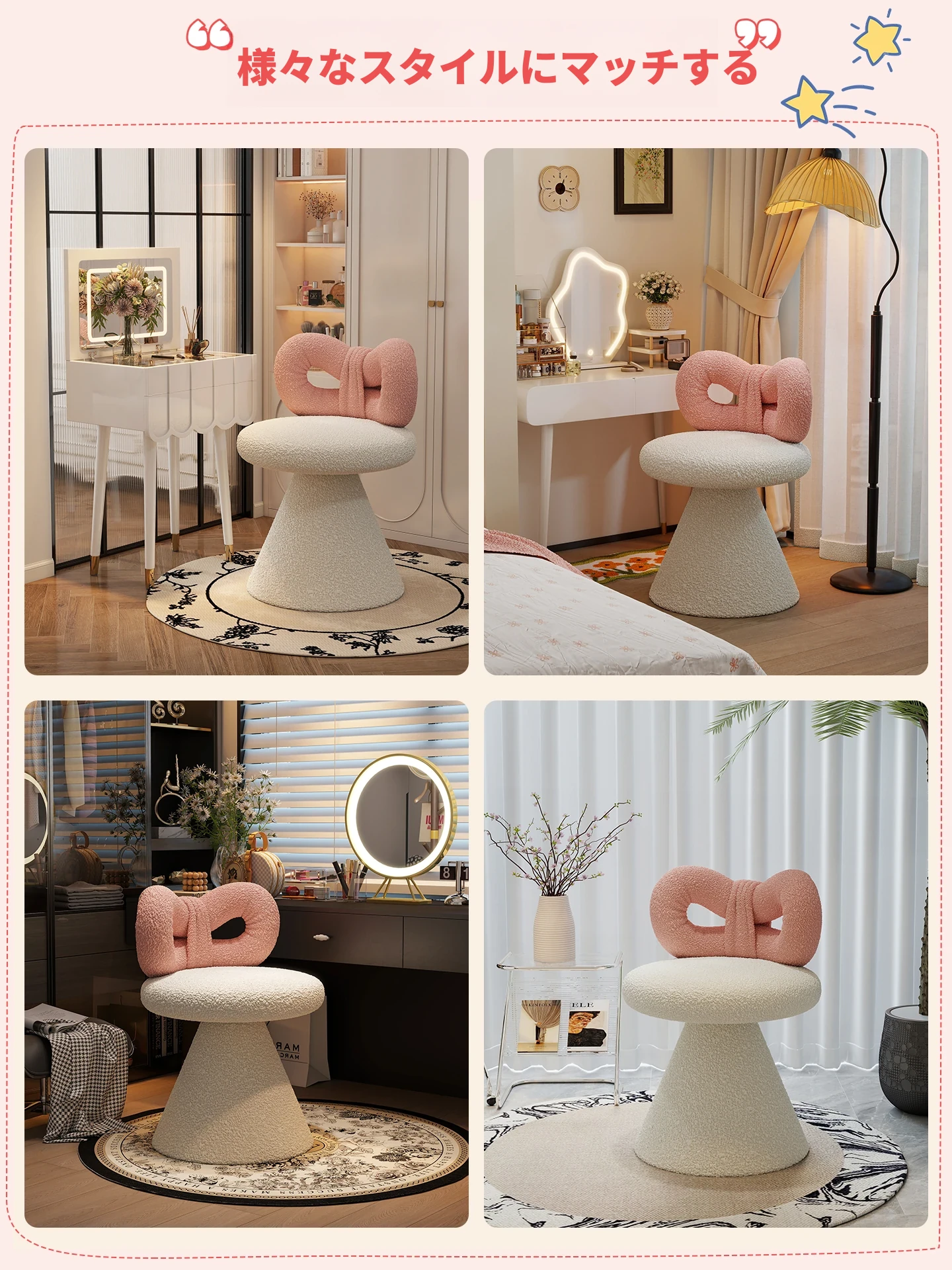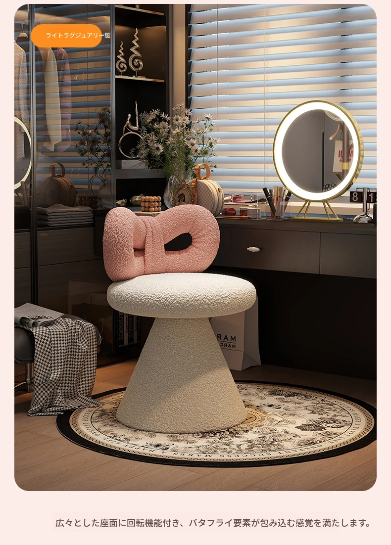 2025年新作!女の子のためのクリーム風メイクアップスツール、シンプルで上品なバタフライリボンデザインのドレッサーチェア。おしゃれな寝室にぴったり!あなたのビューティータイムを特別に演出します。