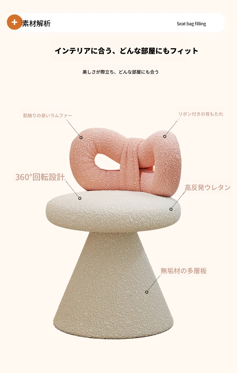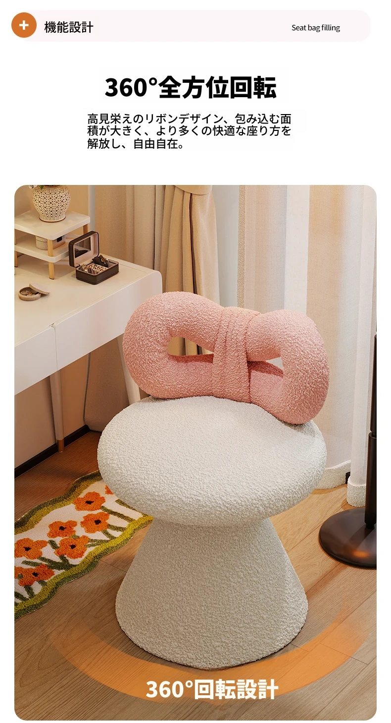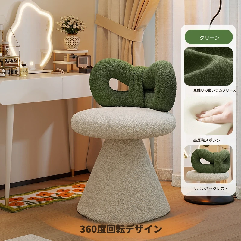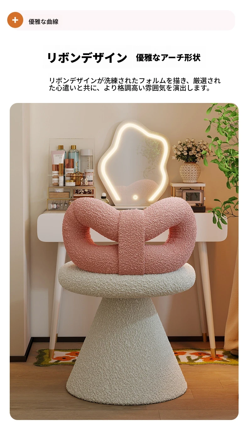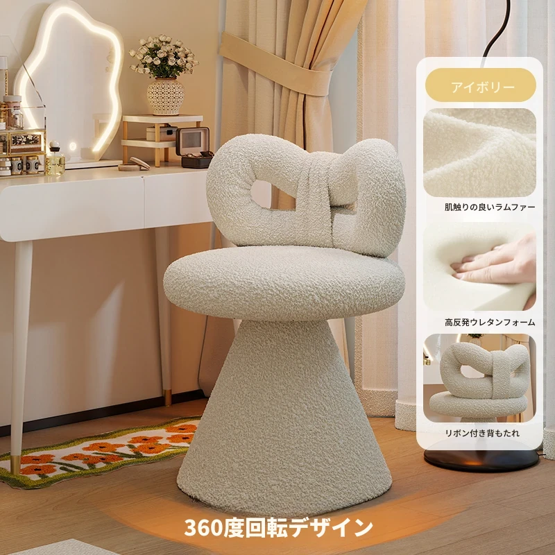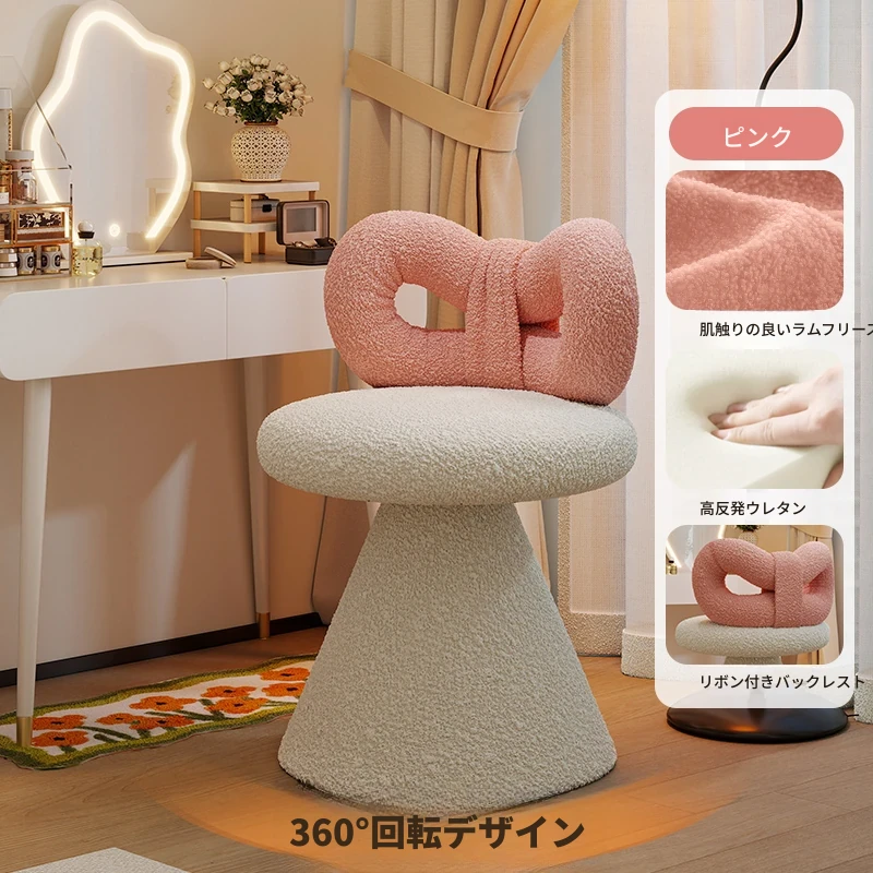 2025年新作!女の子のためのクリーム風メイクアップスツール、シンプルで上品なバタフライリボンデザインのドレッサーチェア。おしゃれな寝室にぴったり!あなたのビューティータイムを特別に演出します。
