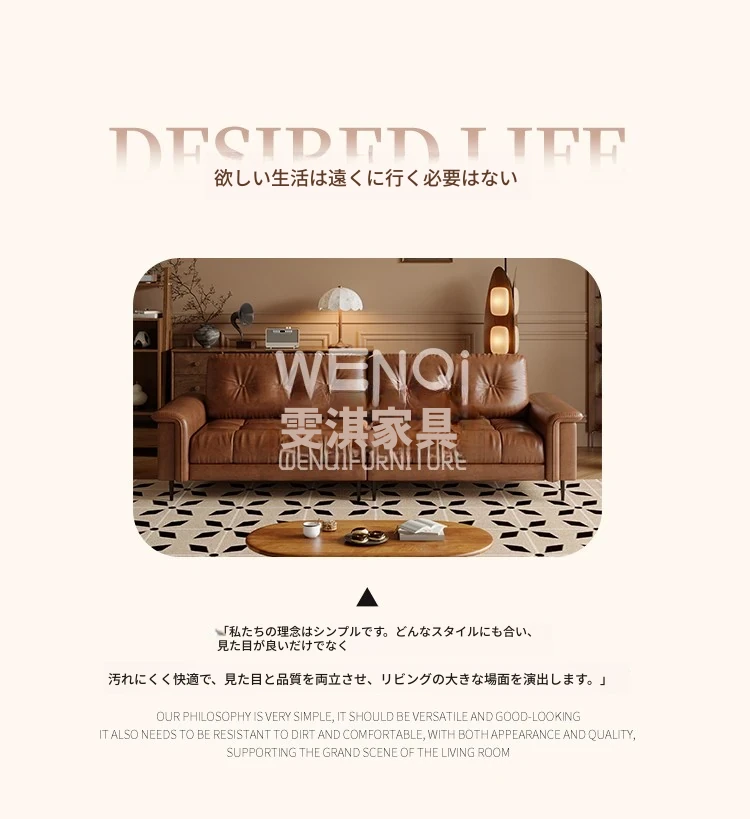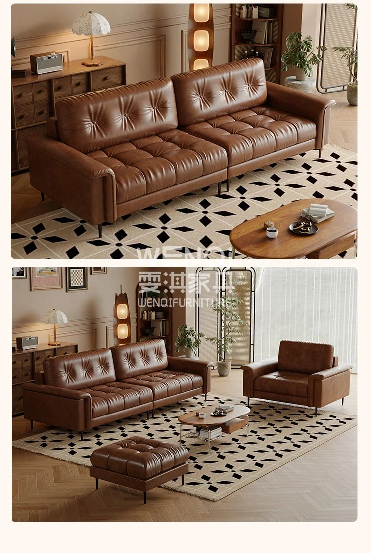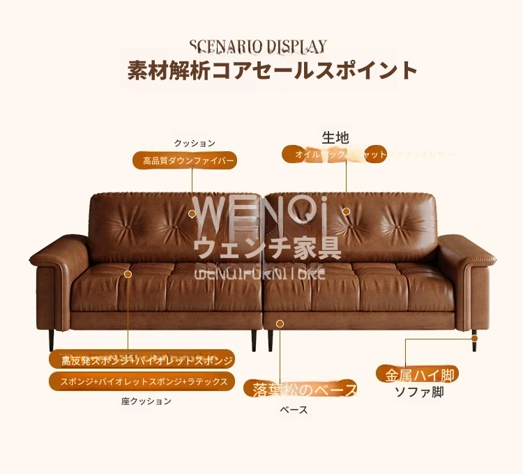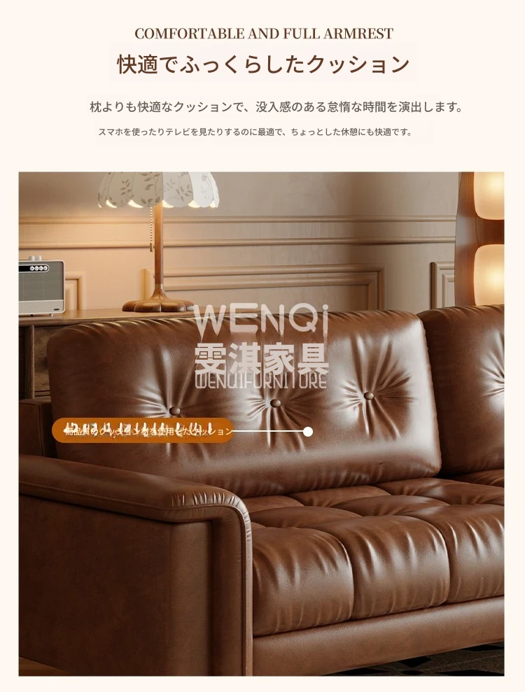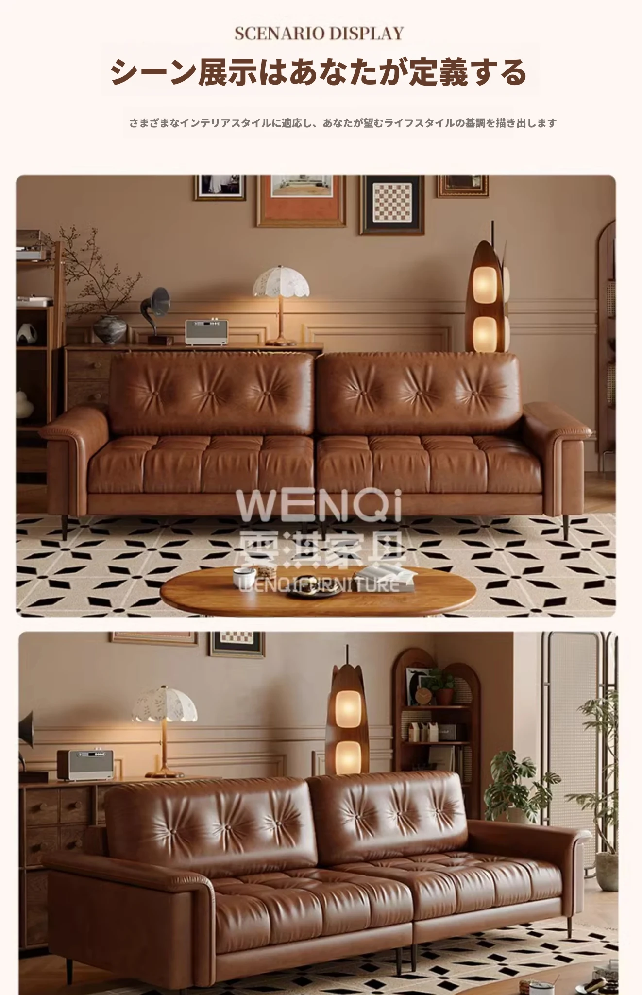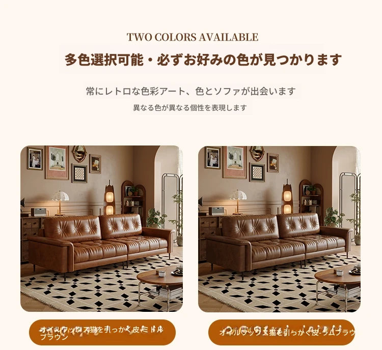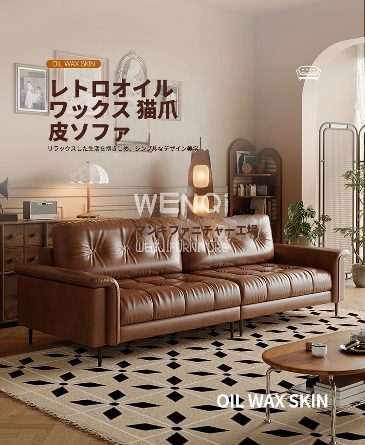2025年新作!フレンチヴィンテージスタイルの北欧風ソファー。小型リビングにぴったりな3人掛け!オイルワックス仕上げのキャットスクラッチレザーで、耐久性と高級感を両立。おしゃれで使いやすい空間を演出します!