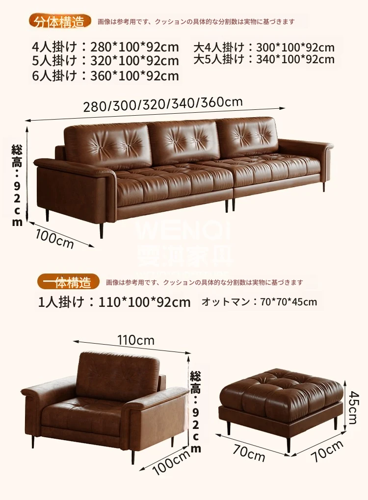 大ファイブソファ3.4m【天然ラテックス+オイルワックスキャットスクラッチレザー+バイオレットスポンジ+高反発スポンジ】