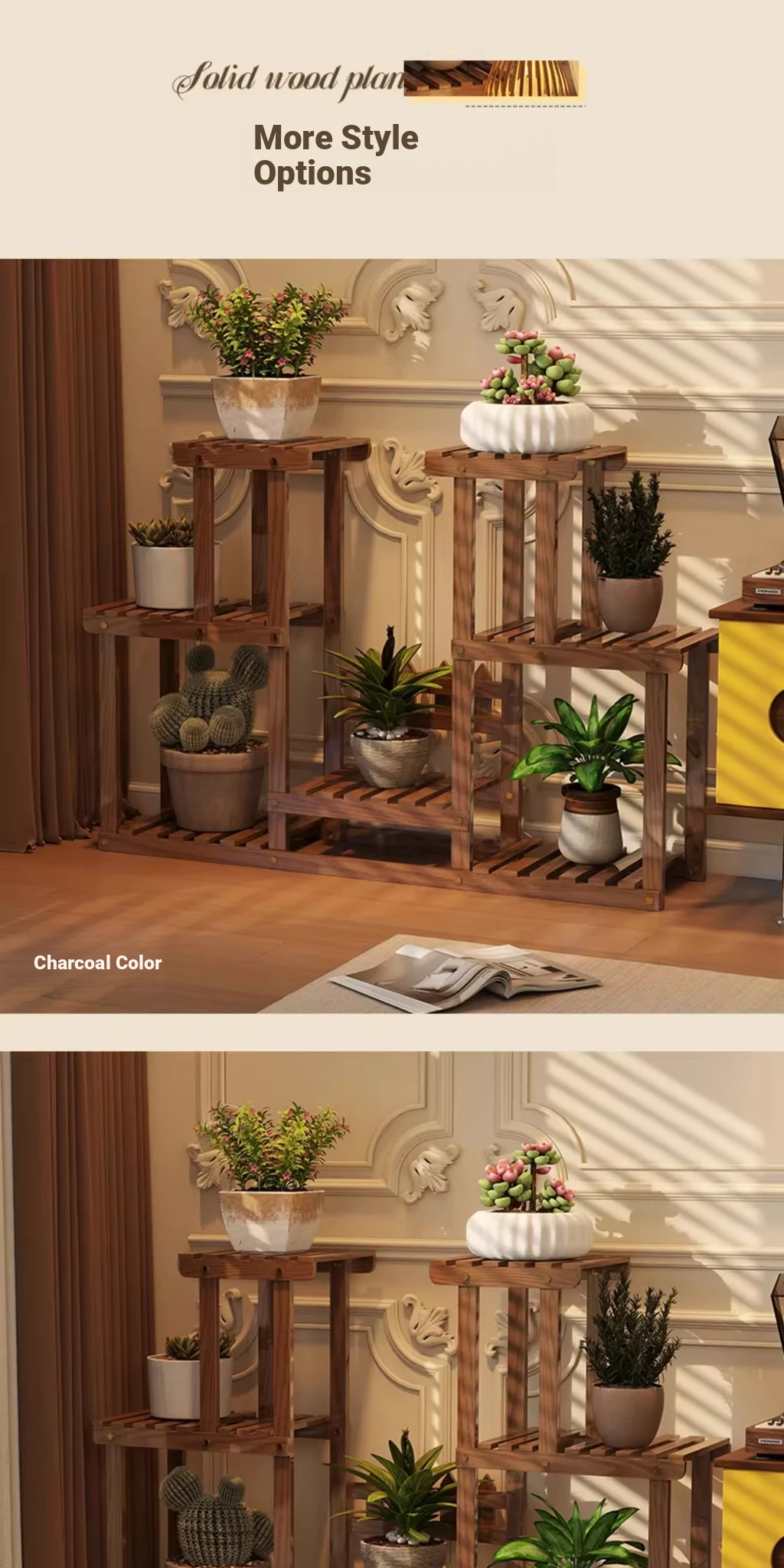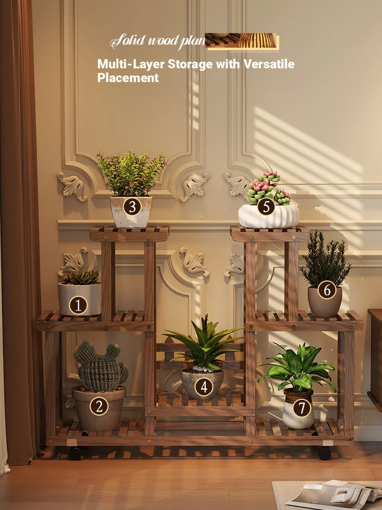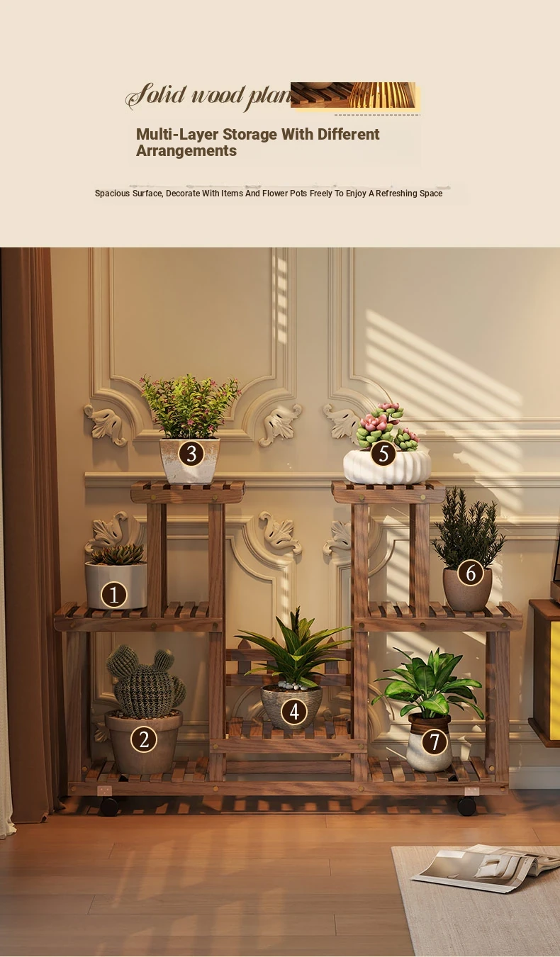 Natural Wood Color + Universal Wheels - Style C Plant Stand