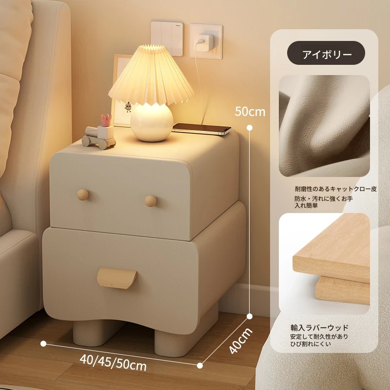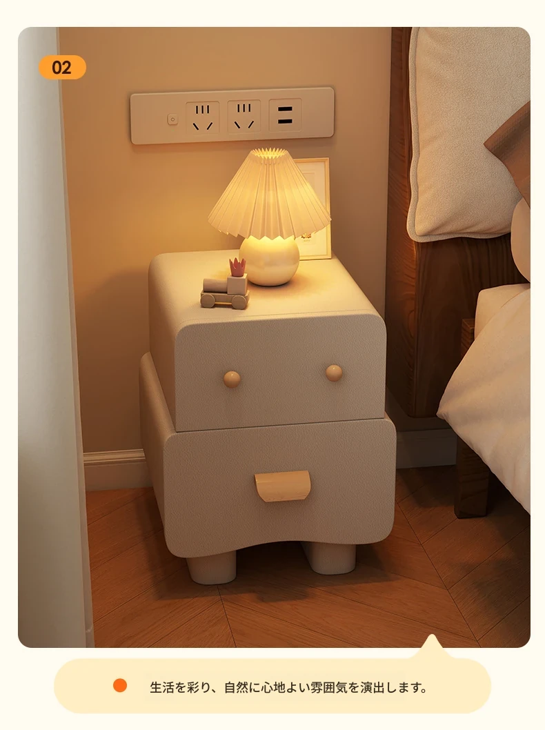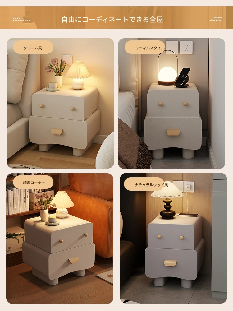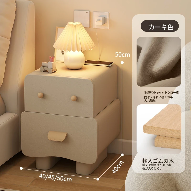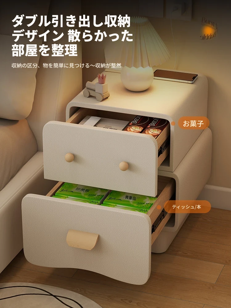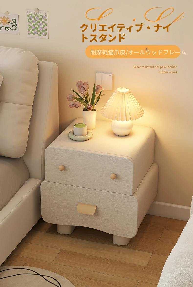 クリーム風の無垢材ベッドサイドキャビネット - 2025年新作、シンプルでモダンな高級クリエイティブデザイン、寝室にぴったりな収納スペースを提供します!