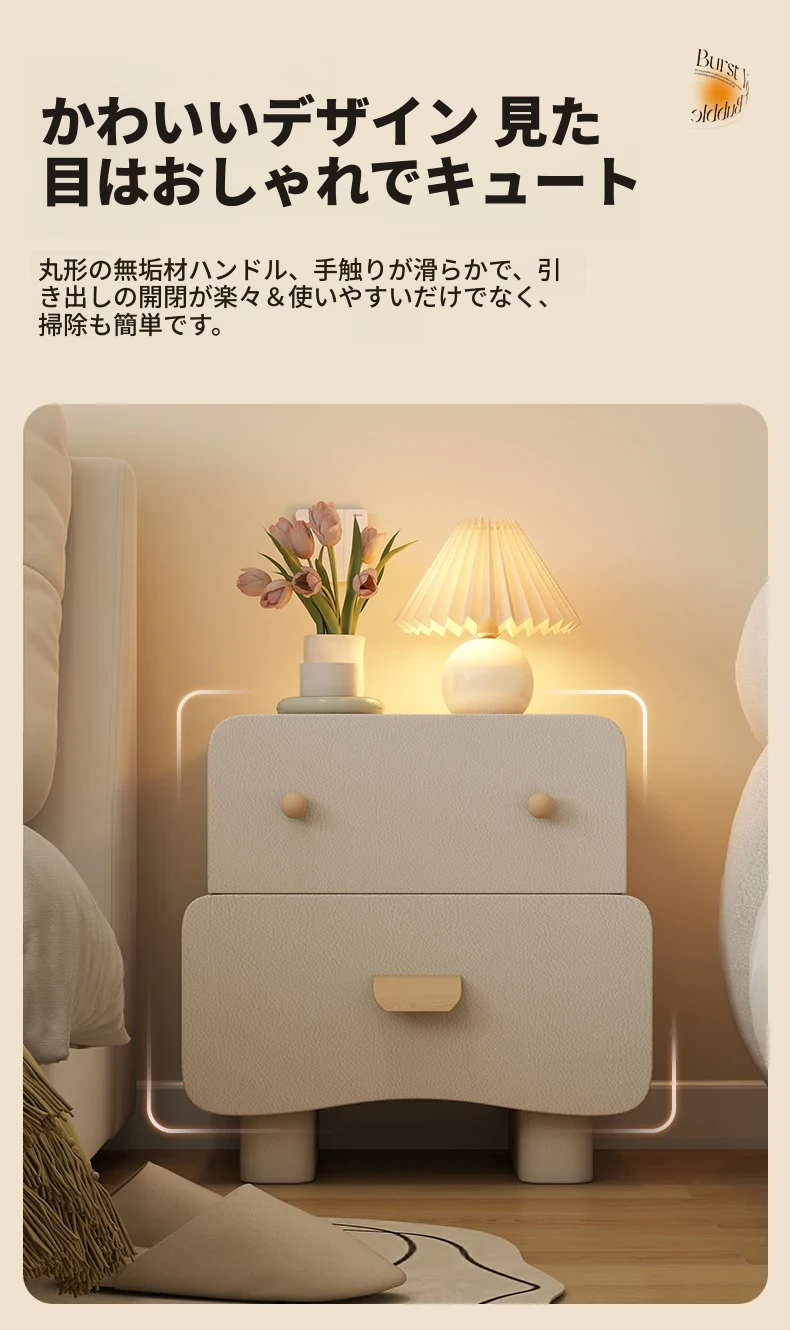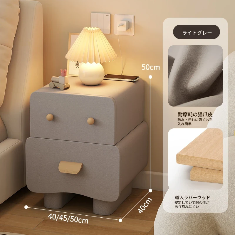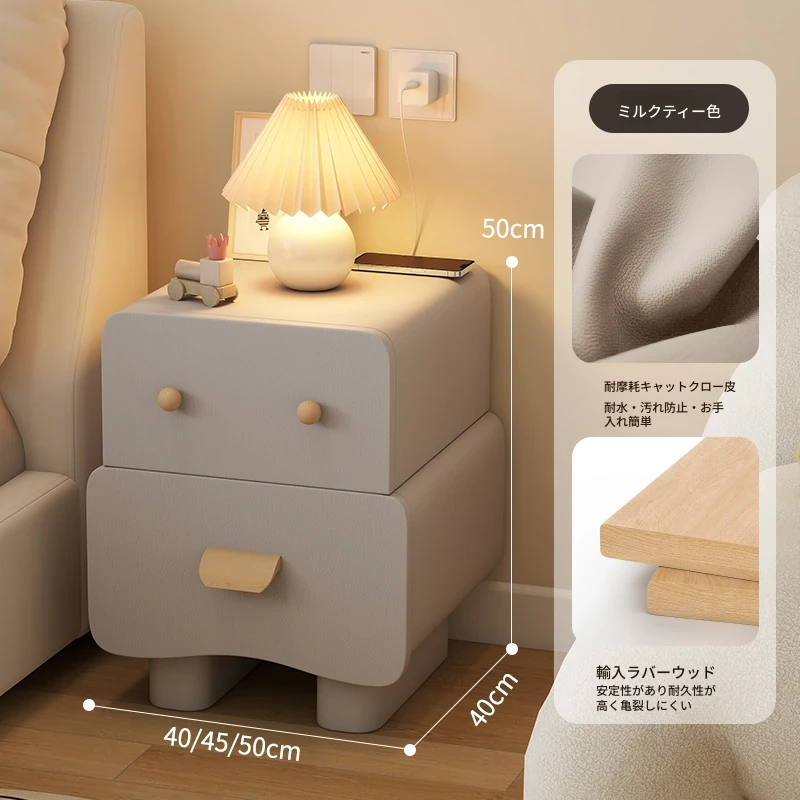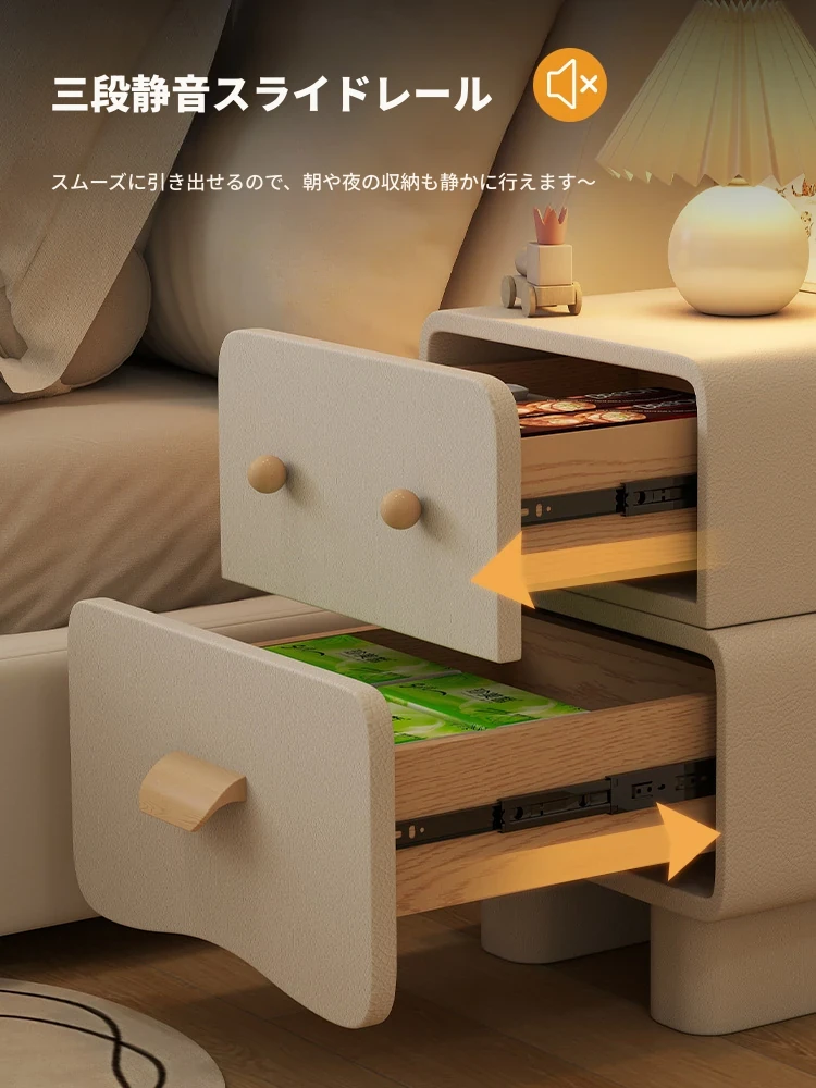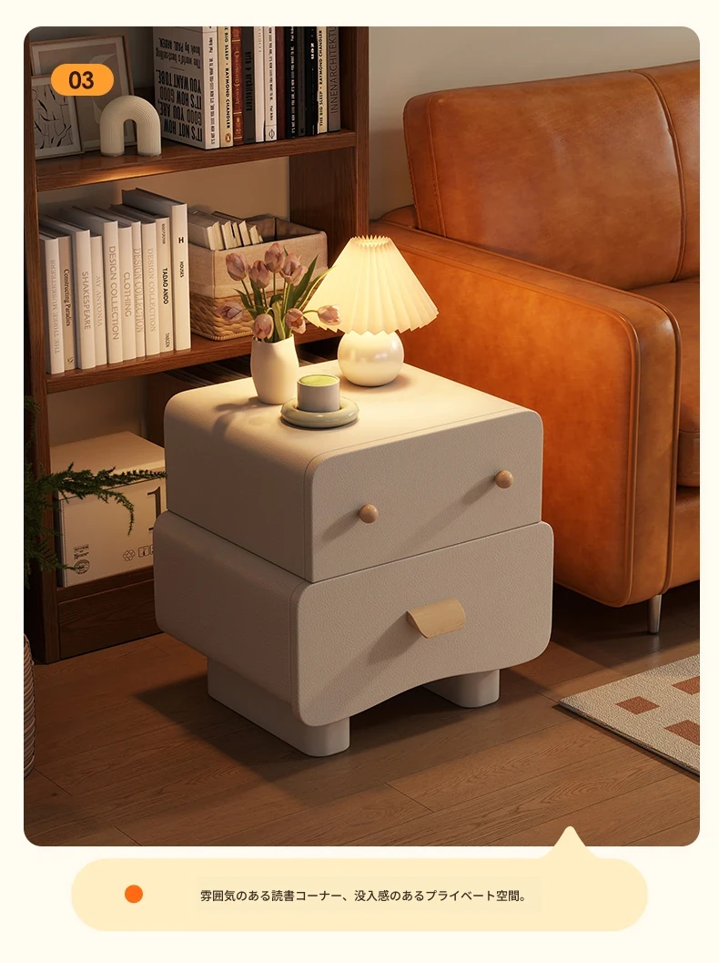 クリーム風の無垢材ベッドサイドキャビネット - 2025年新作、シンプルでモダンな高級クリエイティブデザイン、寝室にぴったりな収納スペースを提供します!