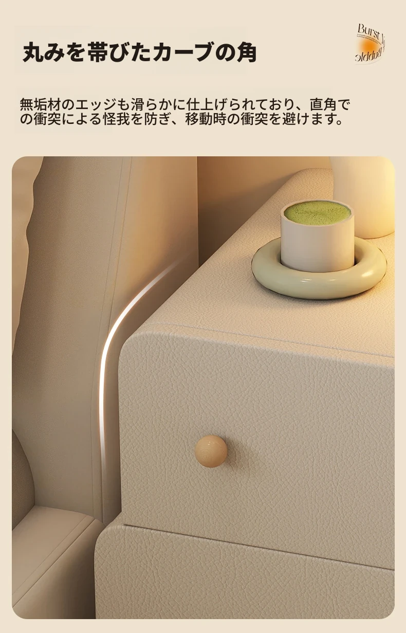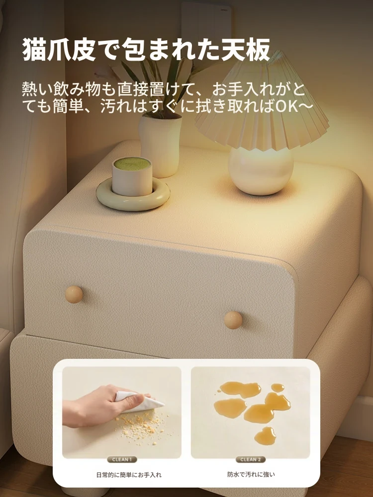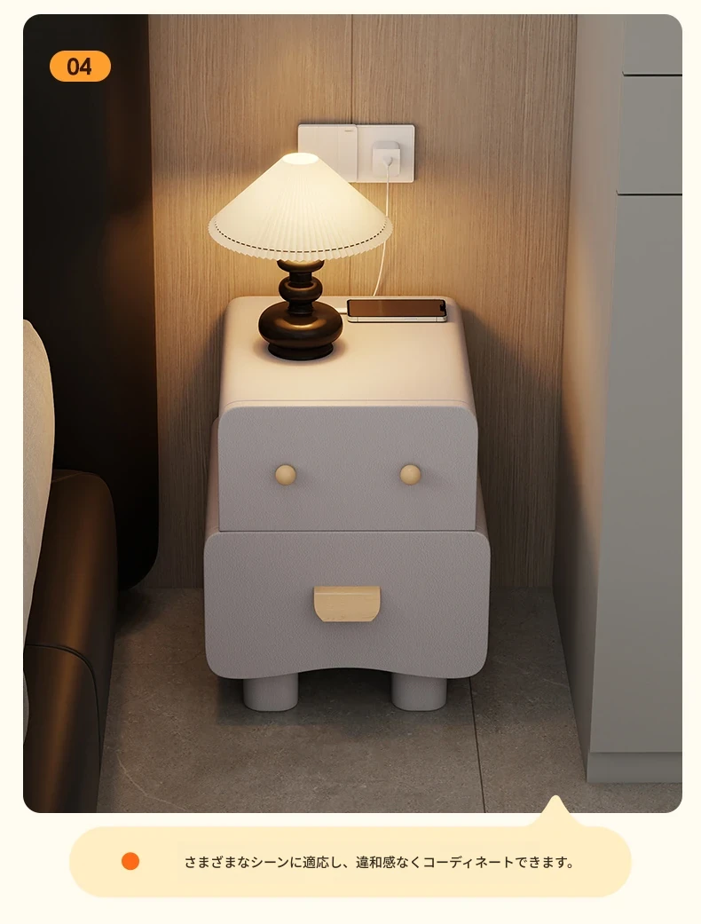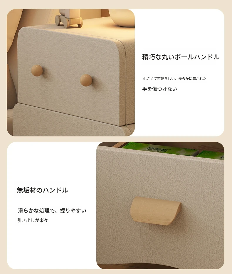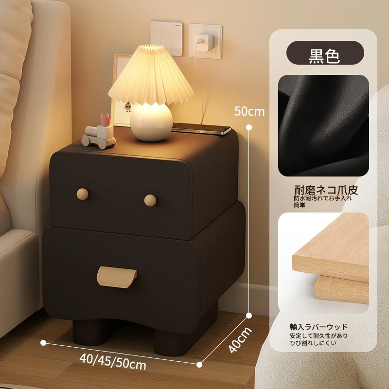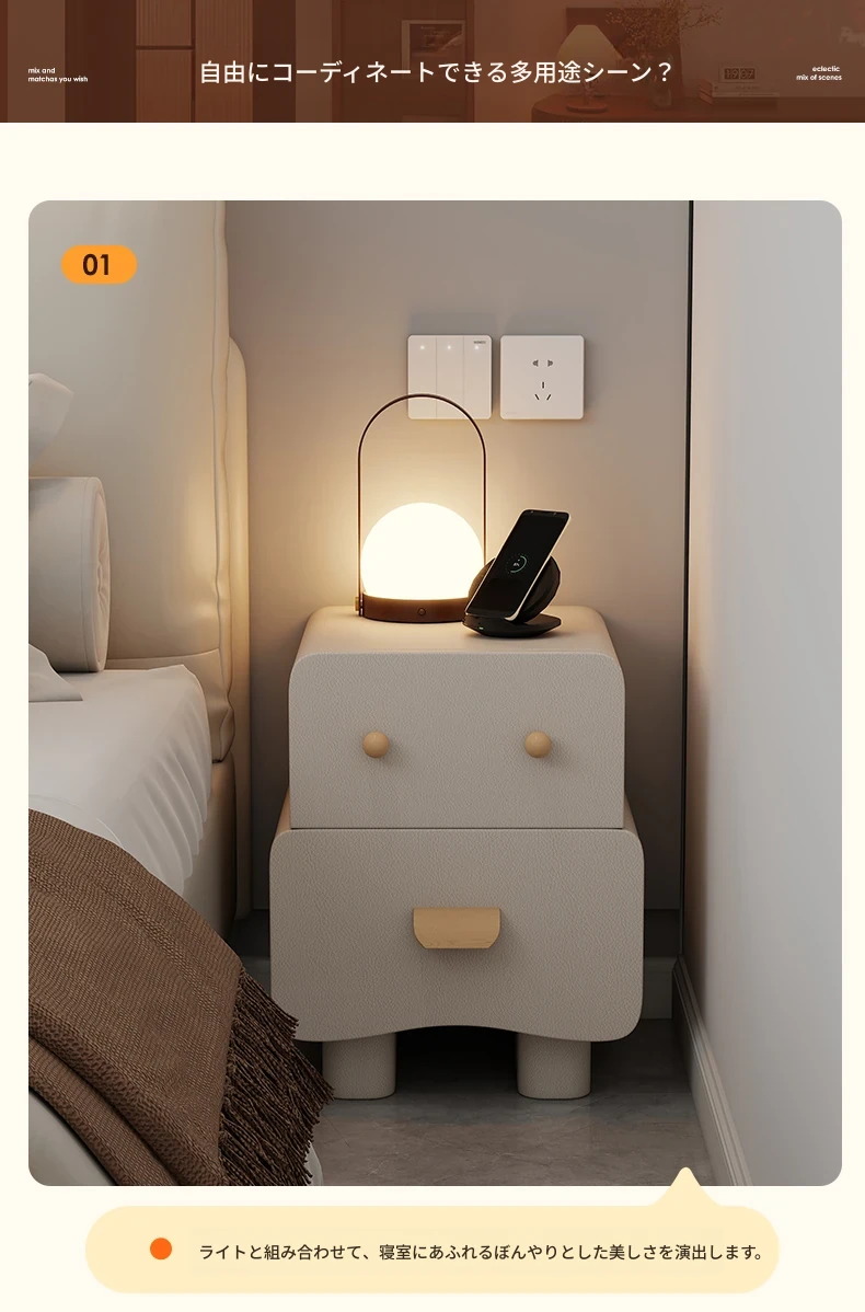 クリーム風の無垢材ベッドサイドキャビネット - 2025年新作、シンプルでモダンな高級クリエイティブデザイン、寝室にぴったりな収納スペースを提供します!