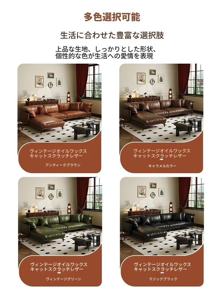 ダブル+左カウチ2.8メートル【高級オイルワックスキャットスクラッチレザー+輸入松木ベース】