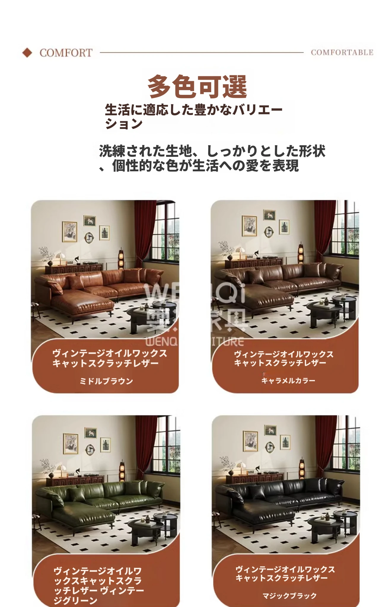 カスタムカラーはカスタマーサービスにお問い合わせください【高級オイルワックスキャットスクラッチレザー色見本】