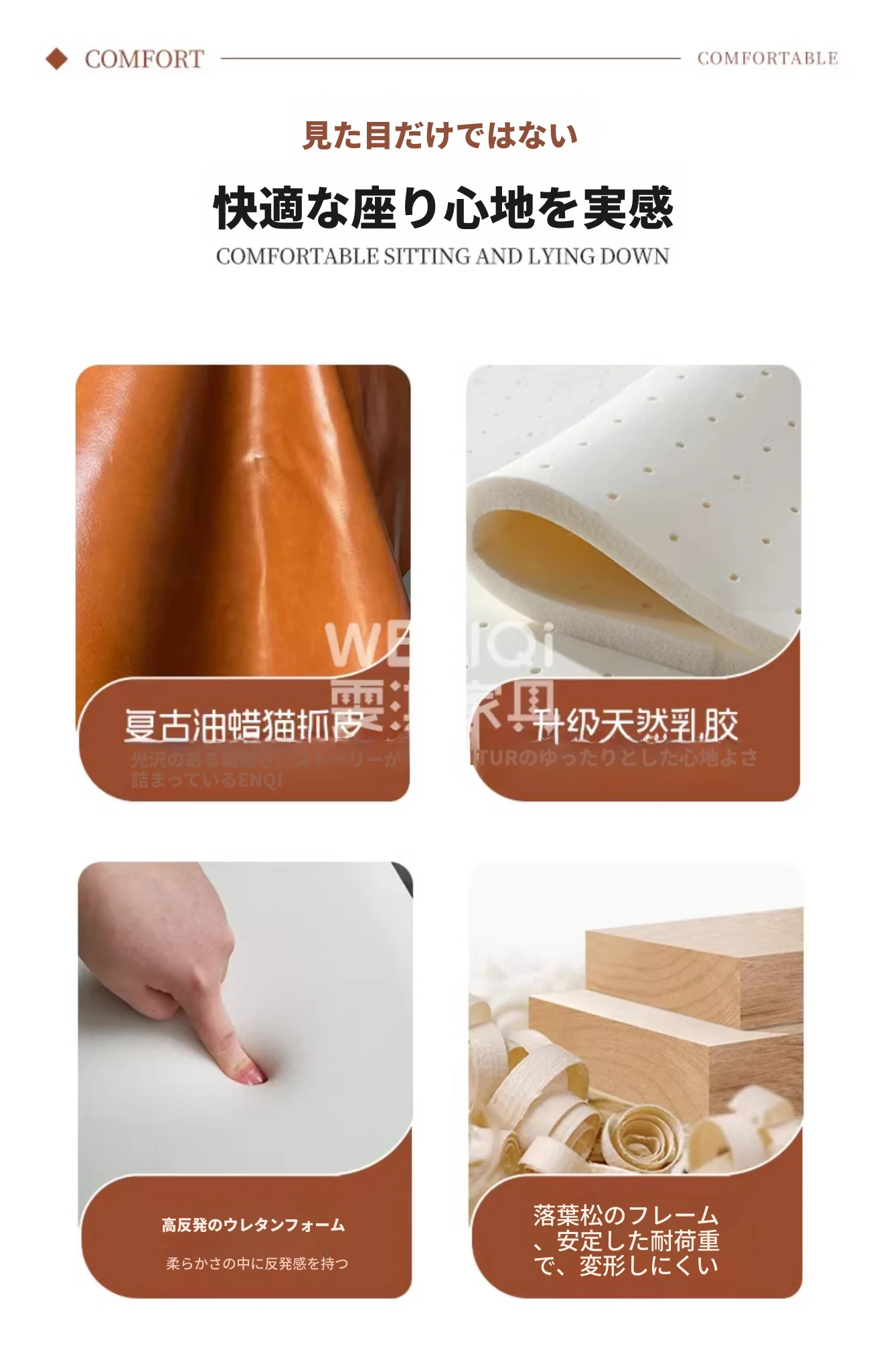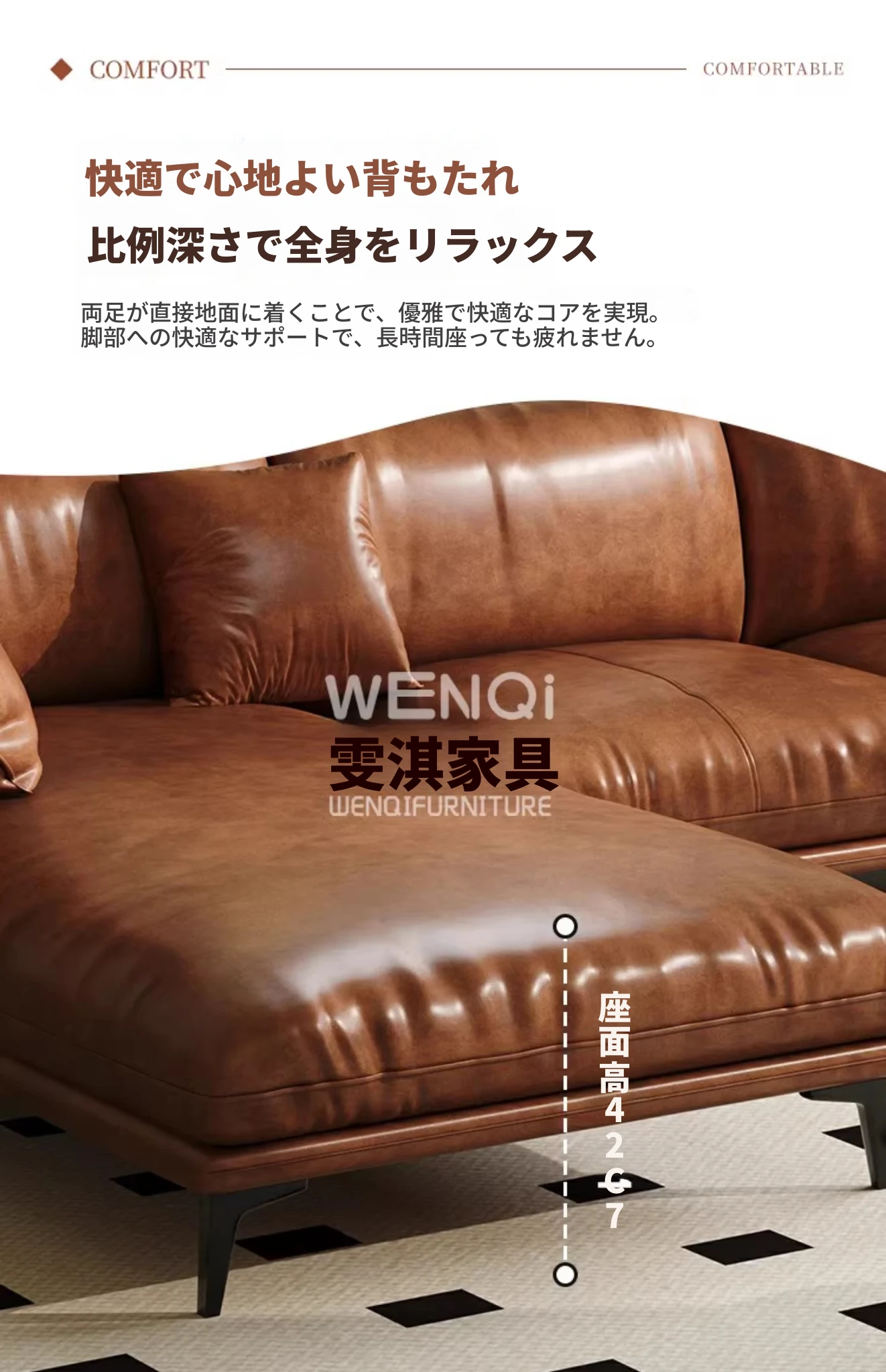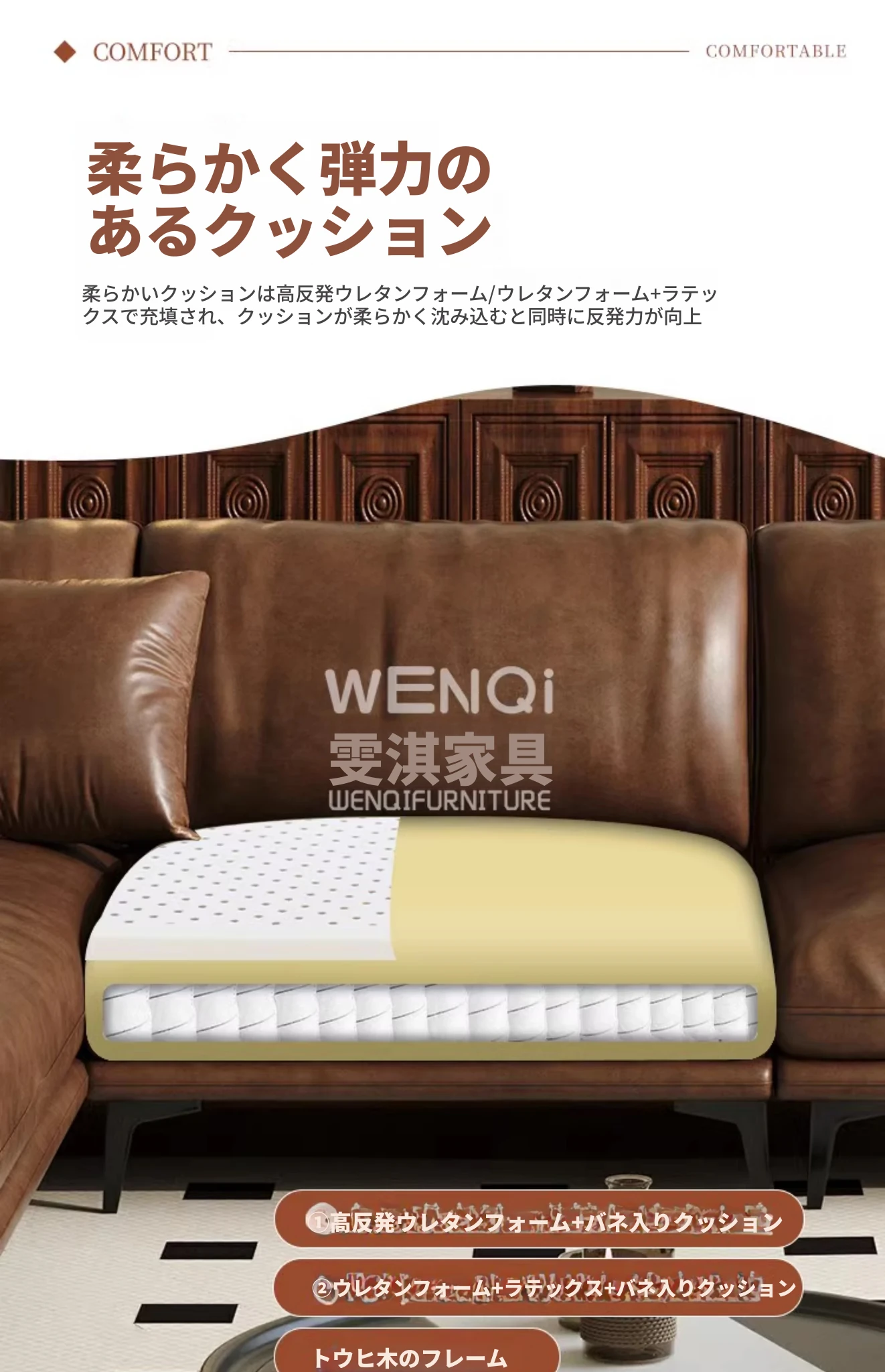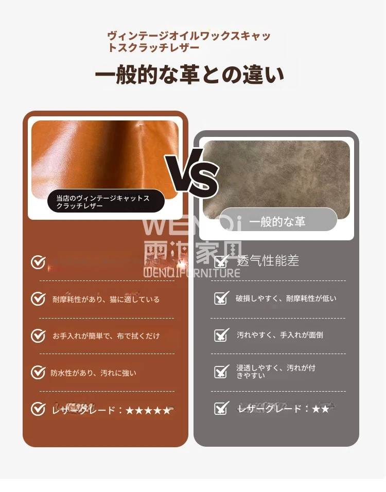 ダブル+単位+右カウチ3.6メートル【天然ラテックス+高級オイルワックスキャットスクラッチレザー+輸入松木ベース】