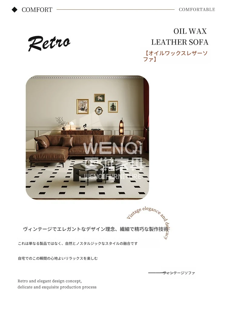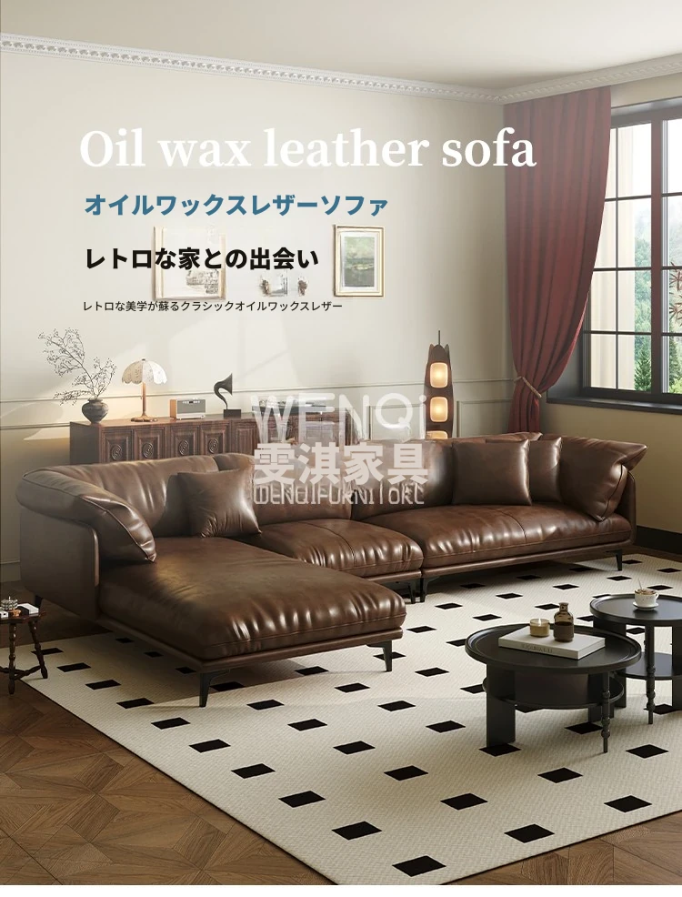 2025年新作!レトロ風オイルワックスレザー使用の貴妃ソファ。現代的でシンプルなデザイン、コンパクトなリビングルームに最適なヴィンテージブラウンのソファで、居心地の良い空間を演出します。