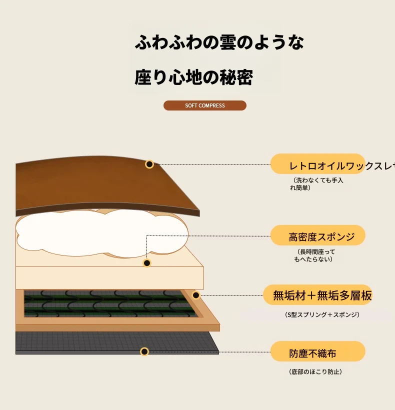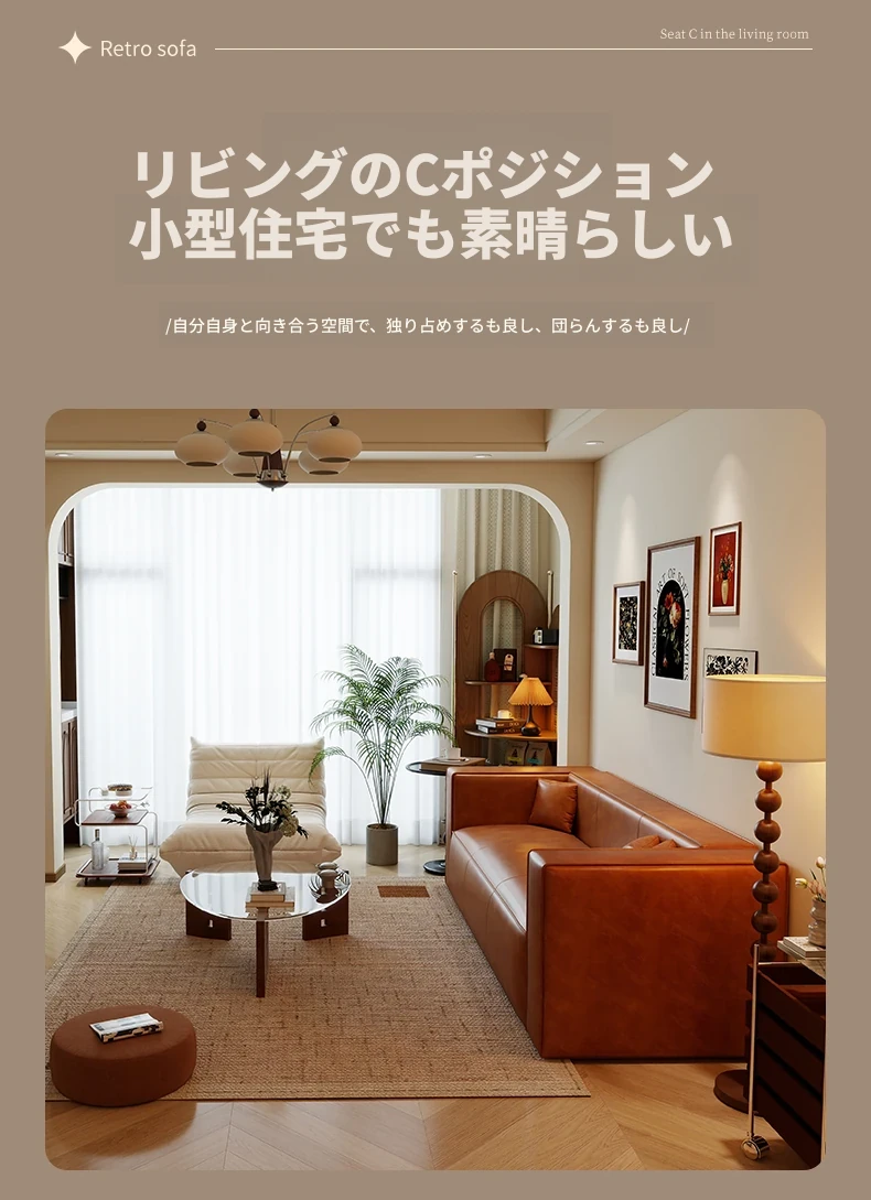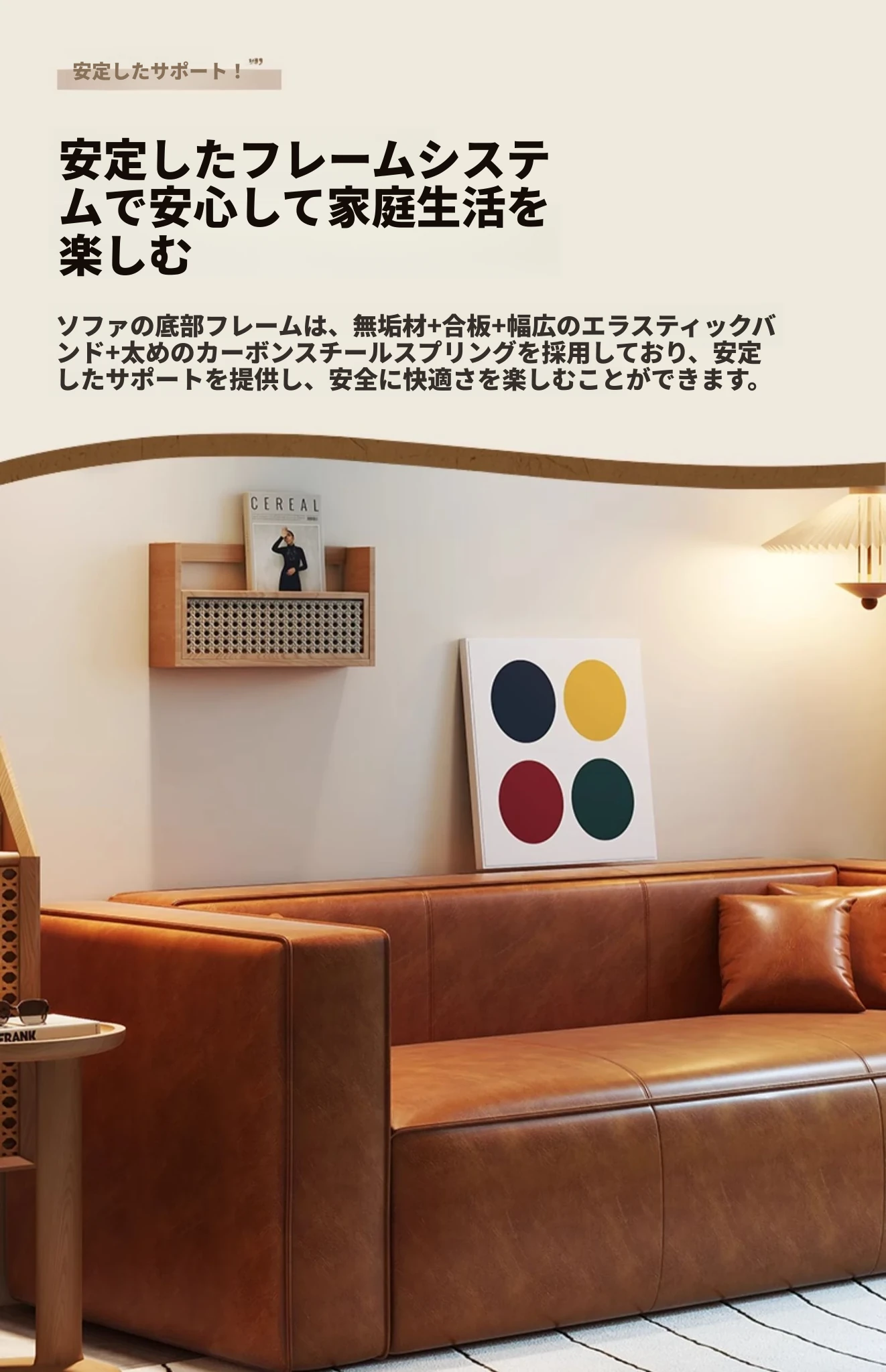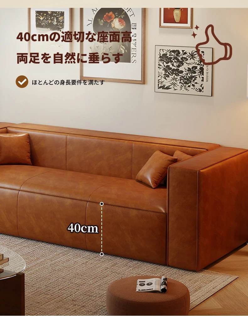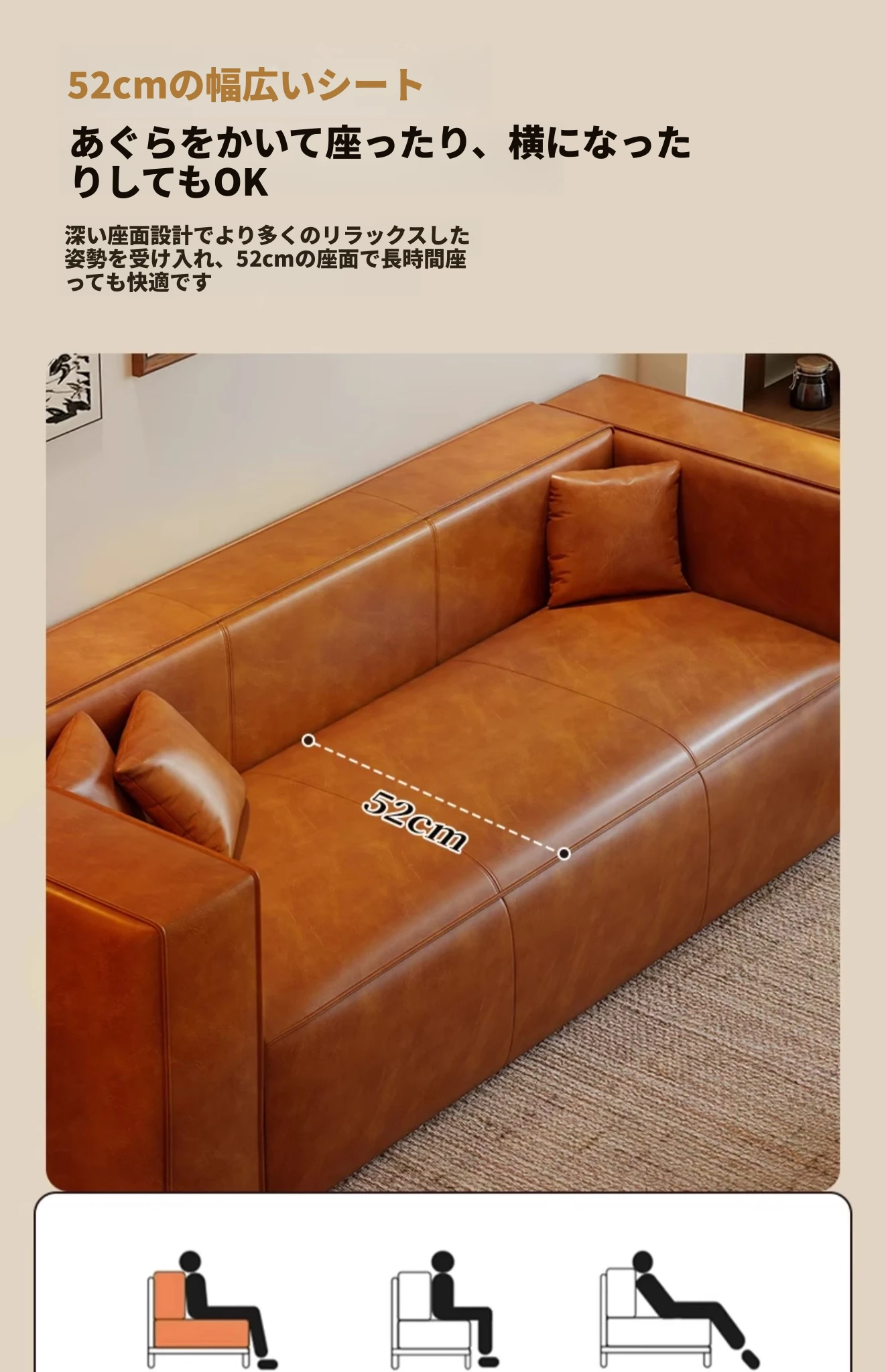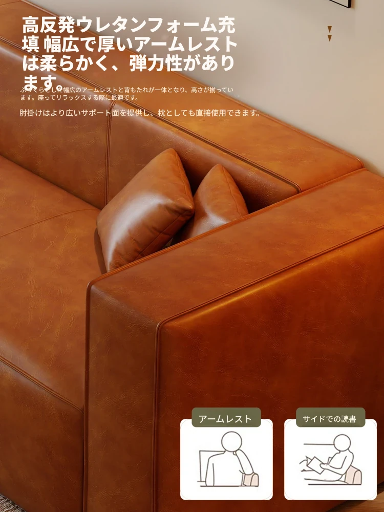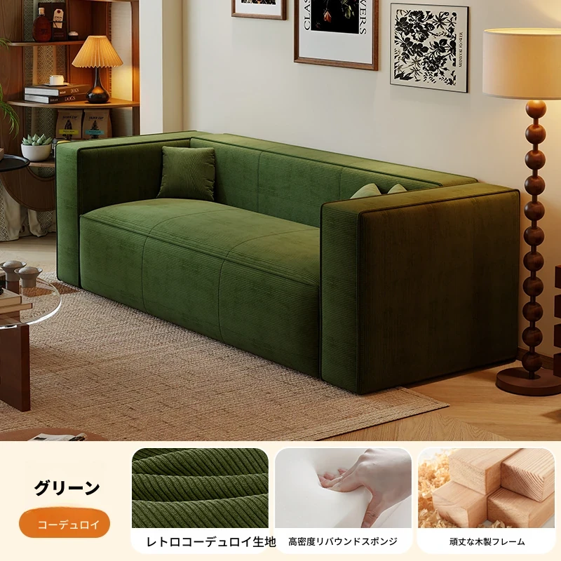 2025年新作!レトロオイルワックスレザー豆腐ブロックソファ - シンプルでおしゃれなミニマルデザイン、中古風の小型アパートにぴったり!リビングをスタイリッシュに演出します。