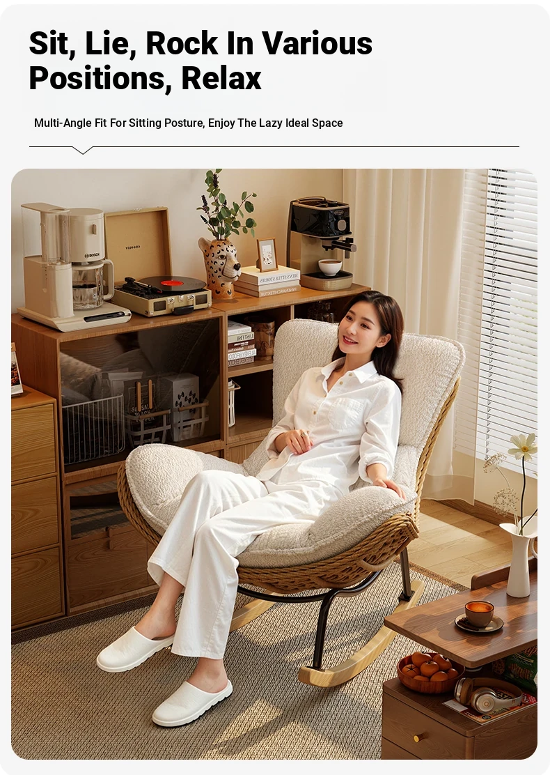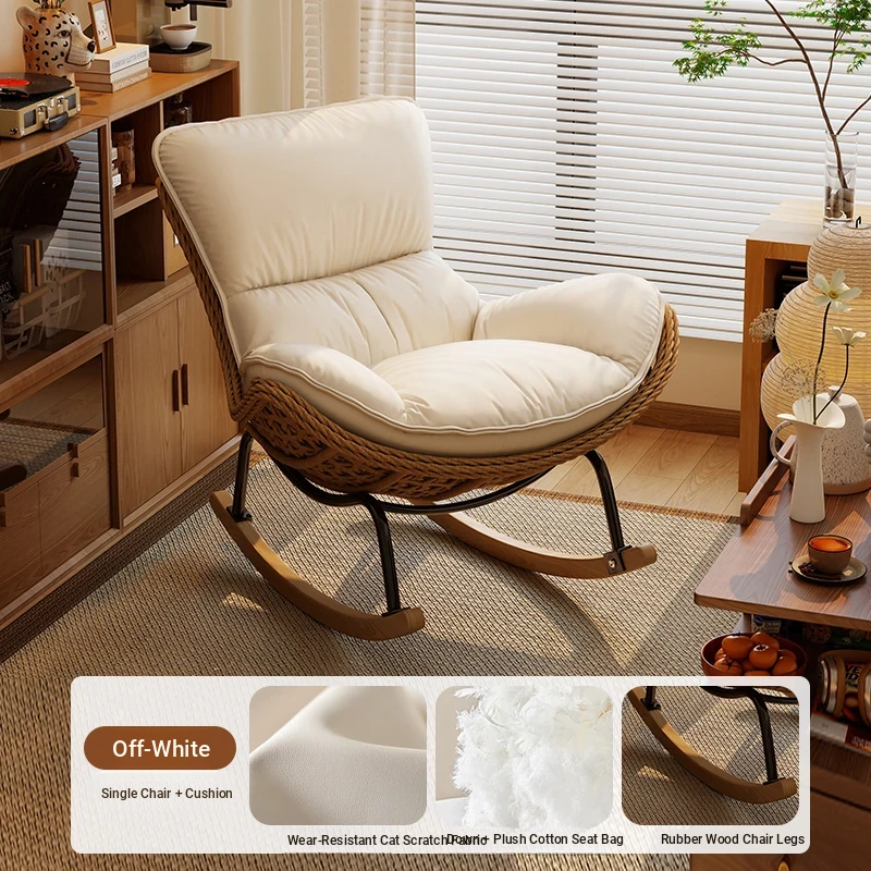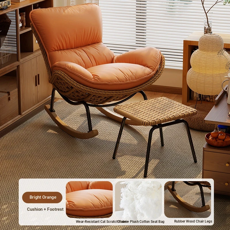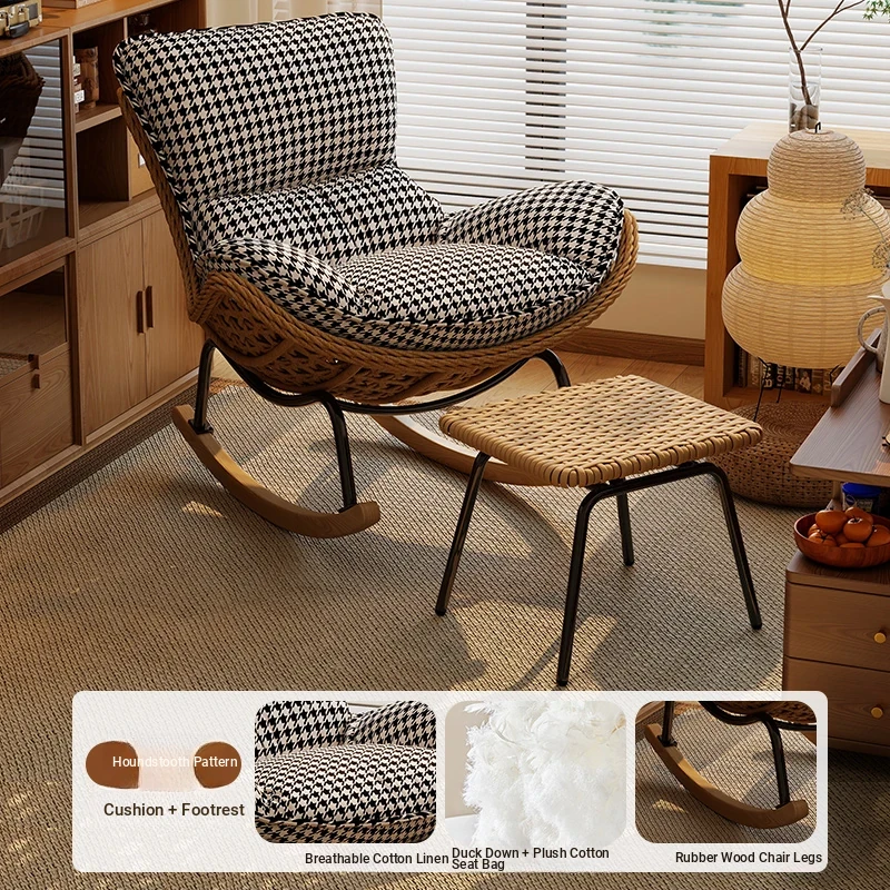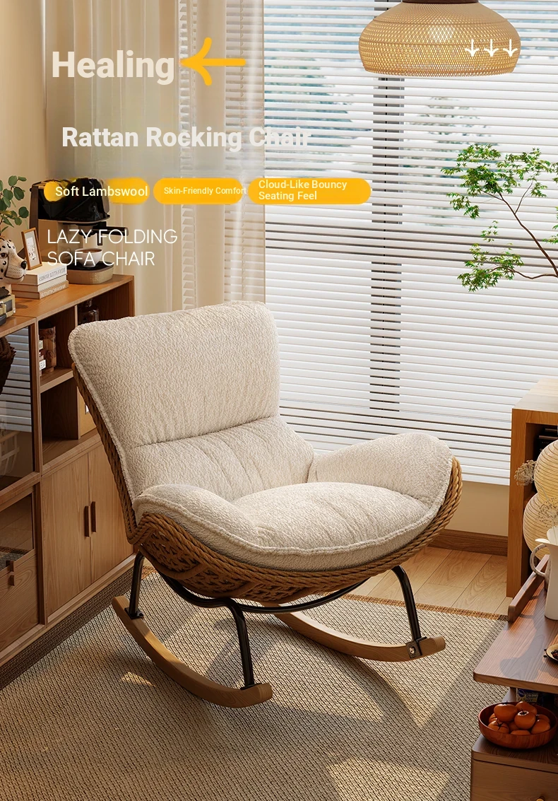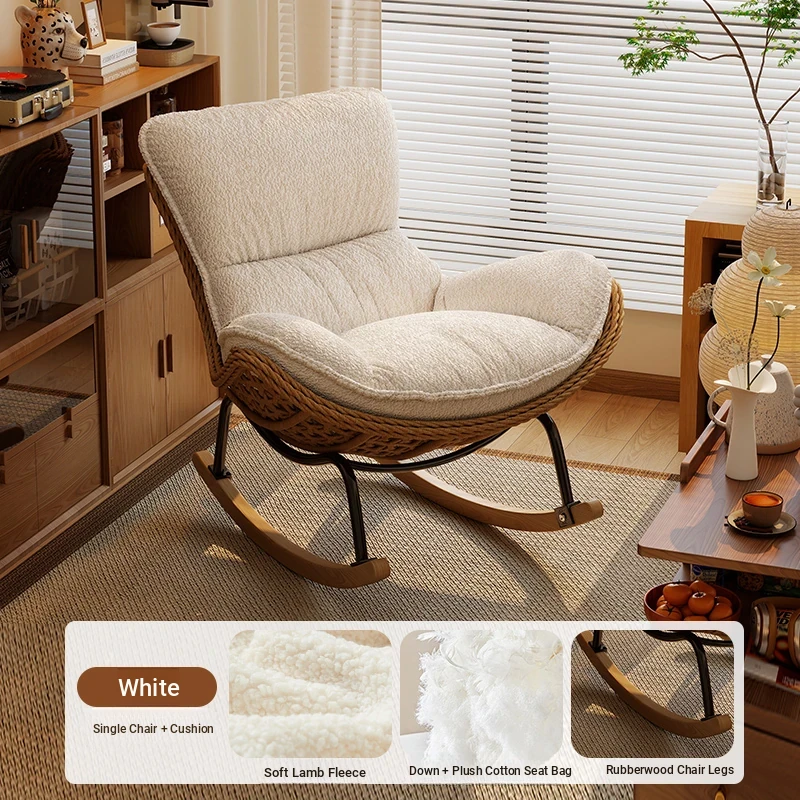 2025 New Stylish Rattan Rocking Chair - Comfortable Lounge Sofa for Adults, Perfect for Balcony & Living Room, Single Seat Lazy Chair