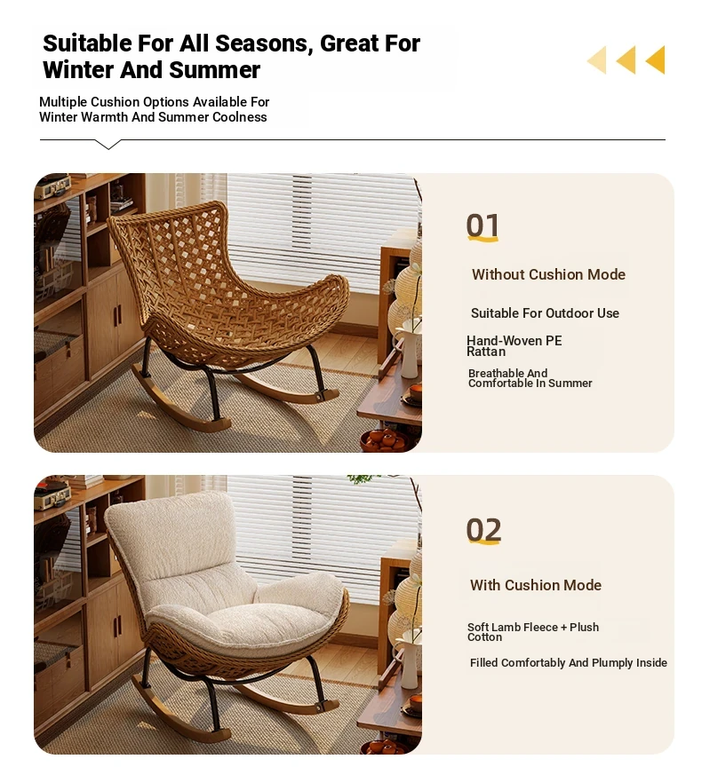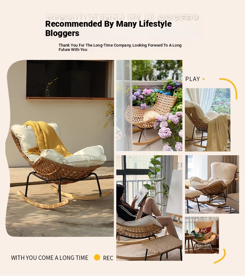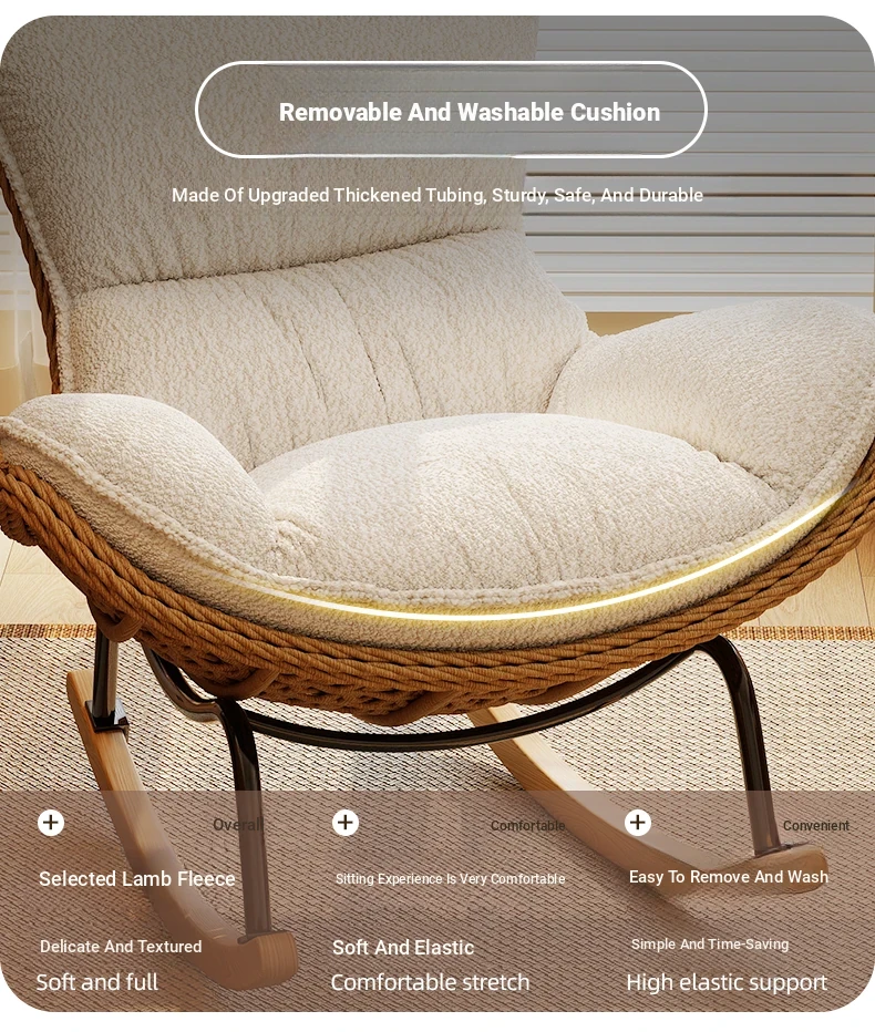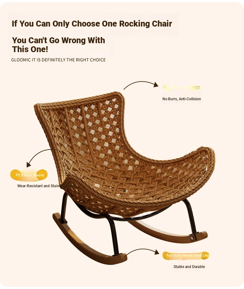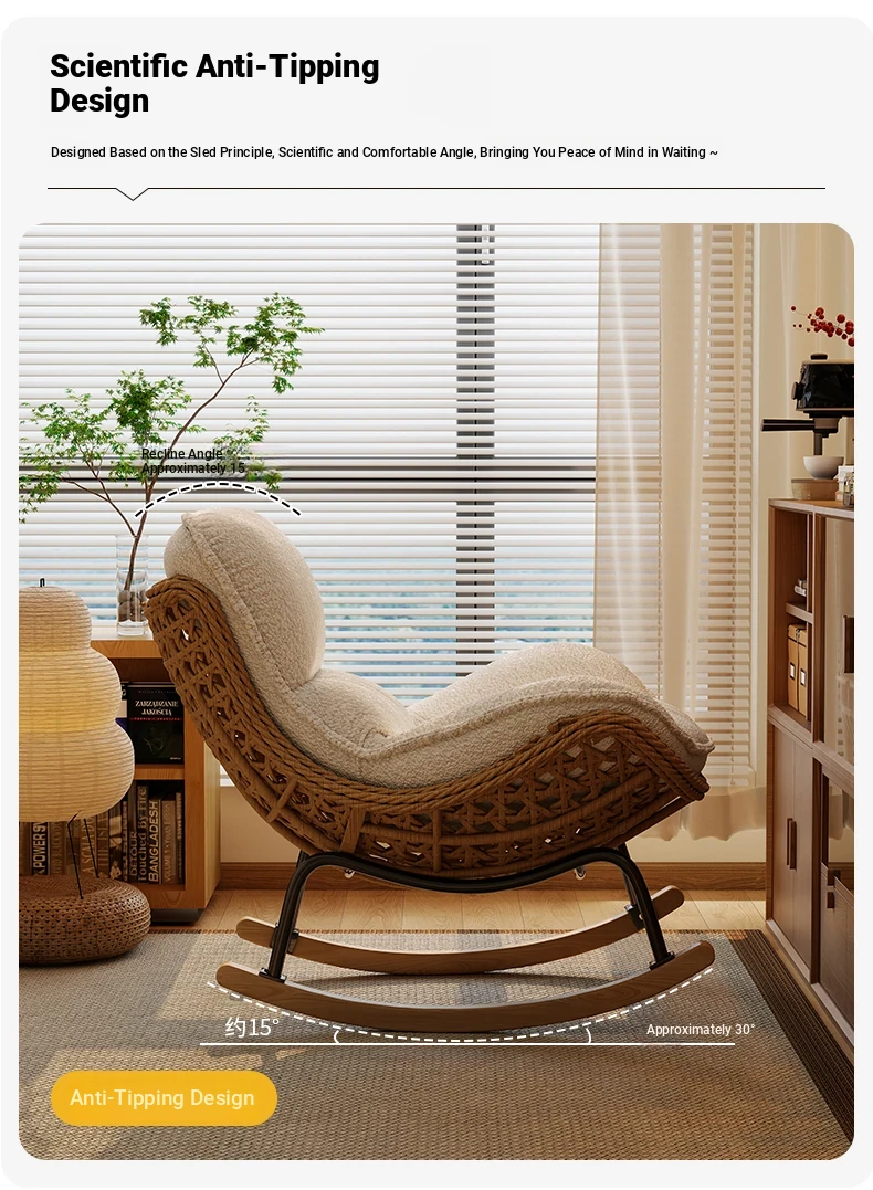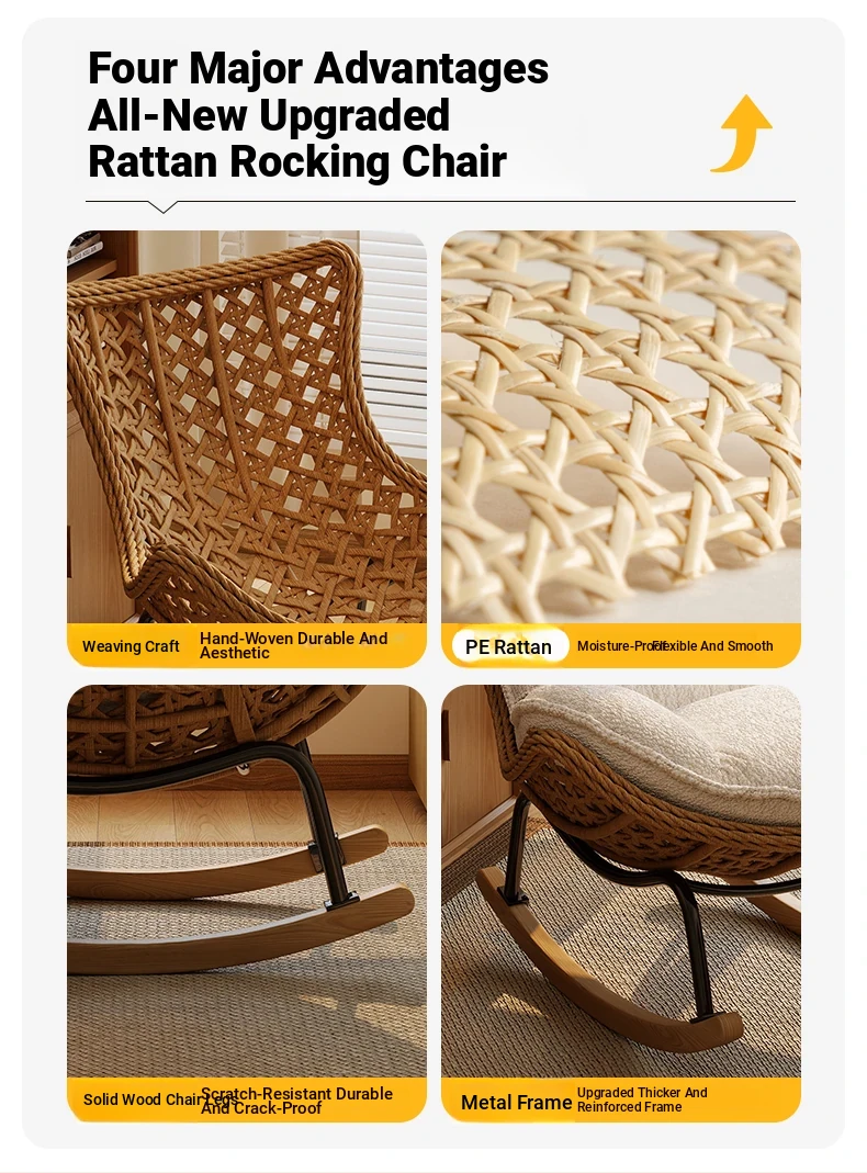 2025 New Stylish Rattan Rocking Chair - Comfortable Lounge Sofa for Adults, Perfect for Balcony & Living Room, Single Seat Lazy Chair