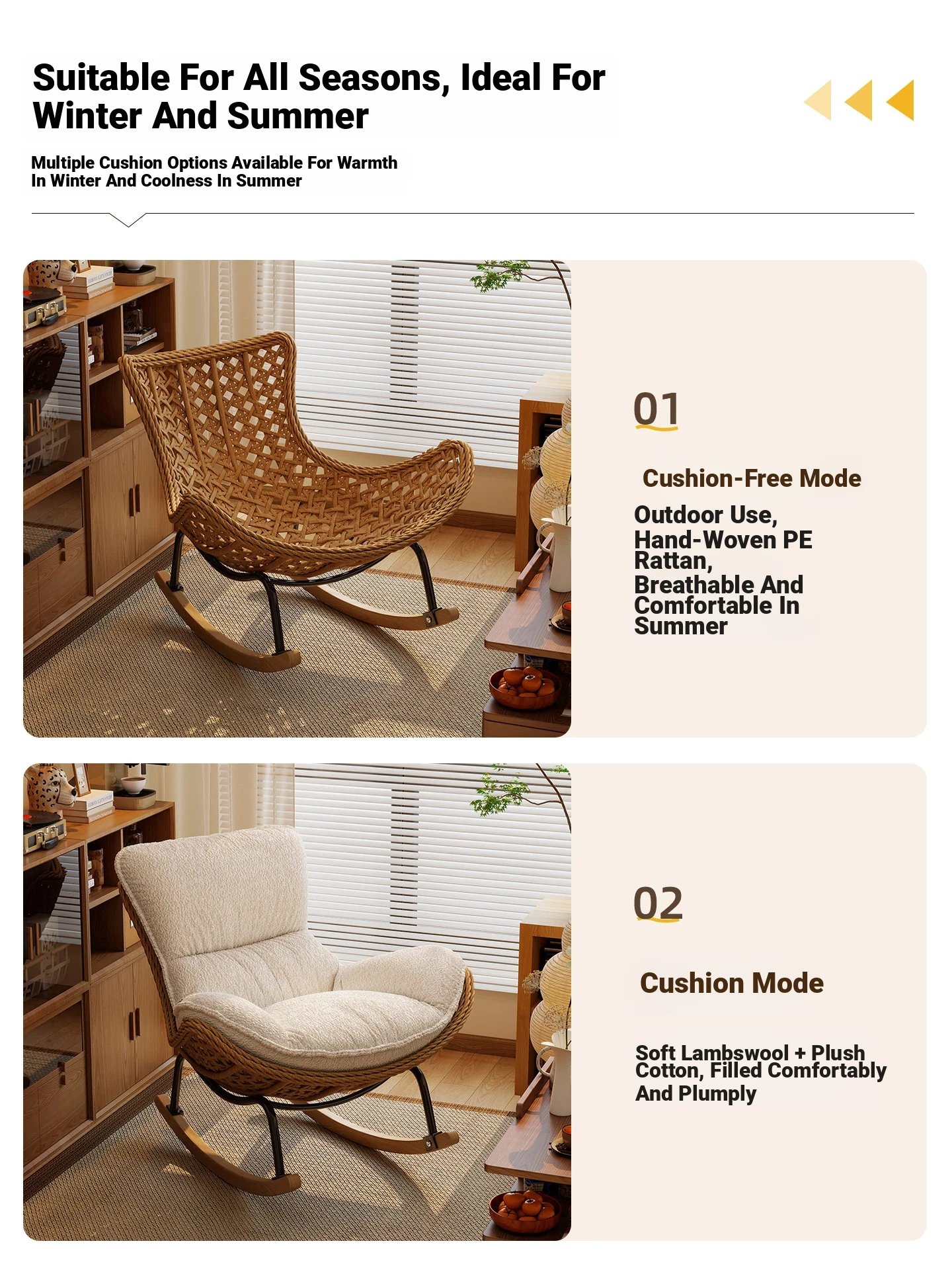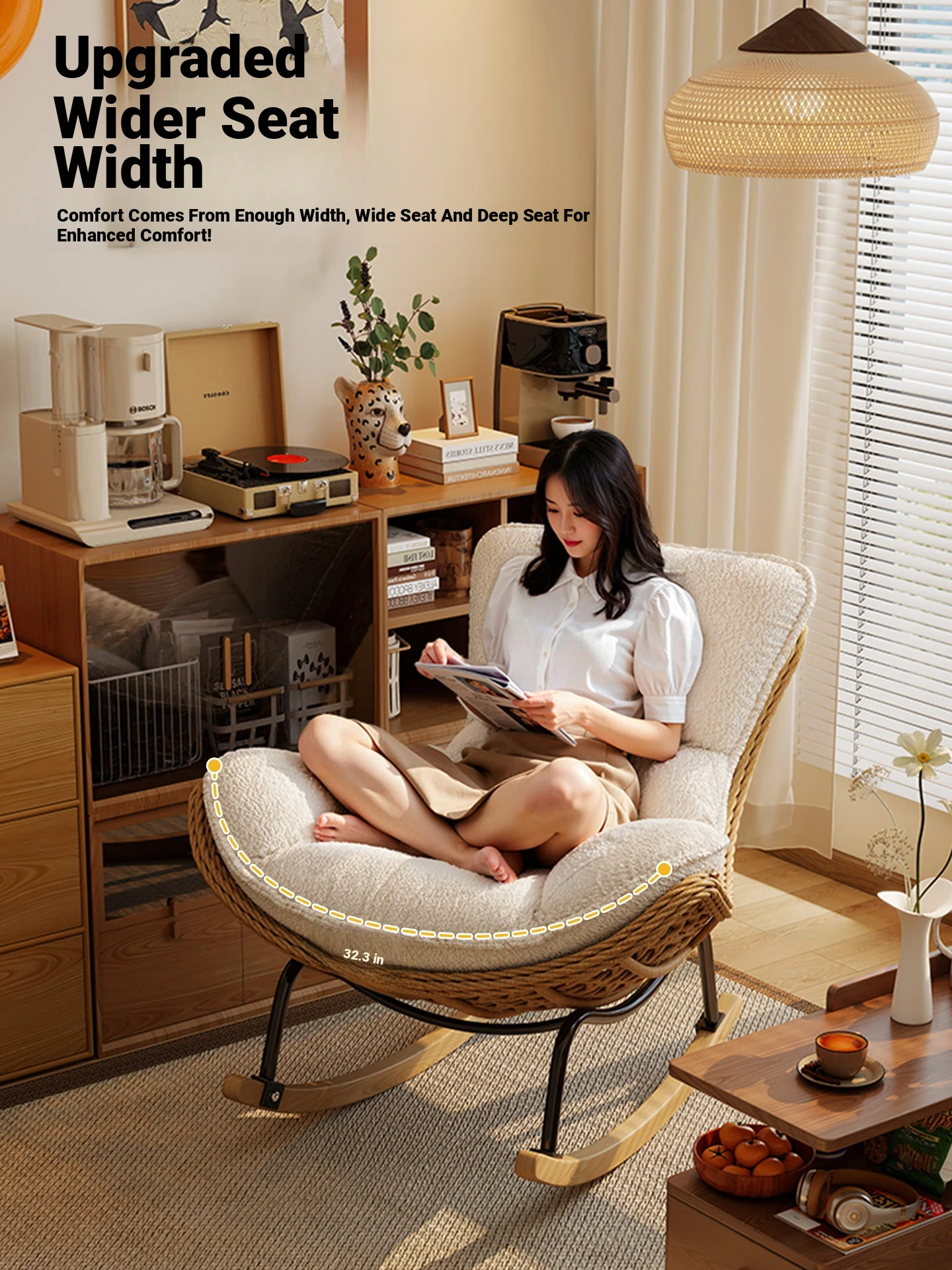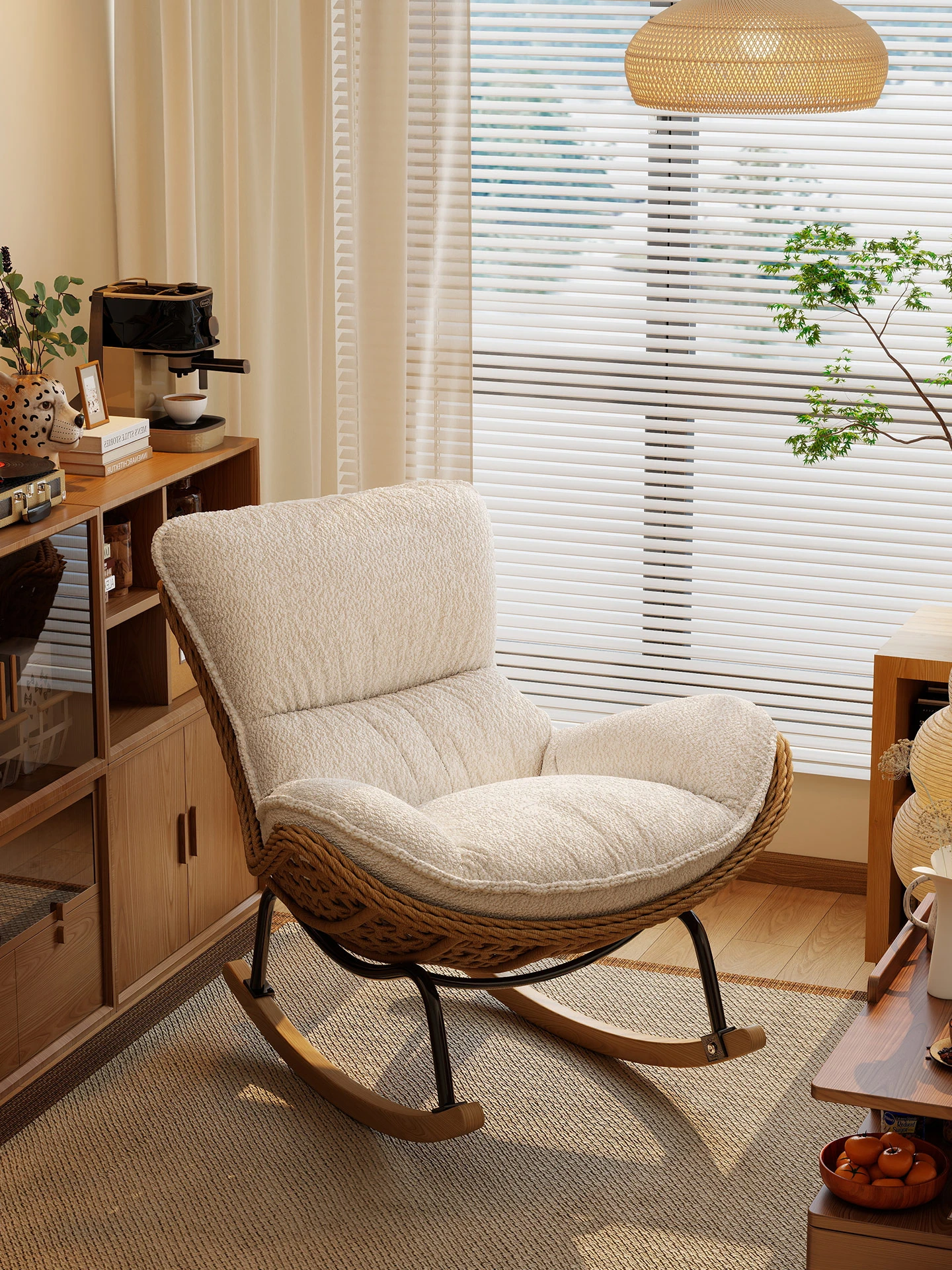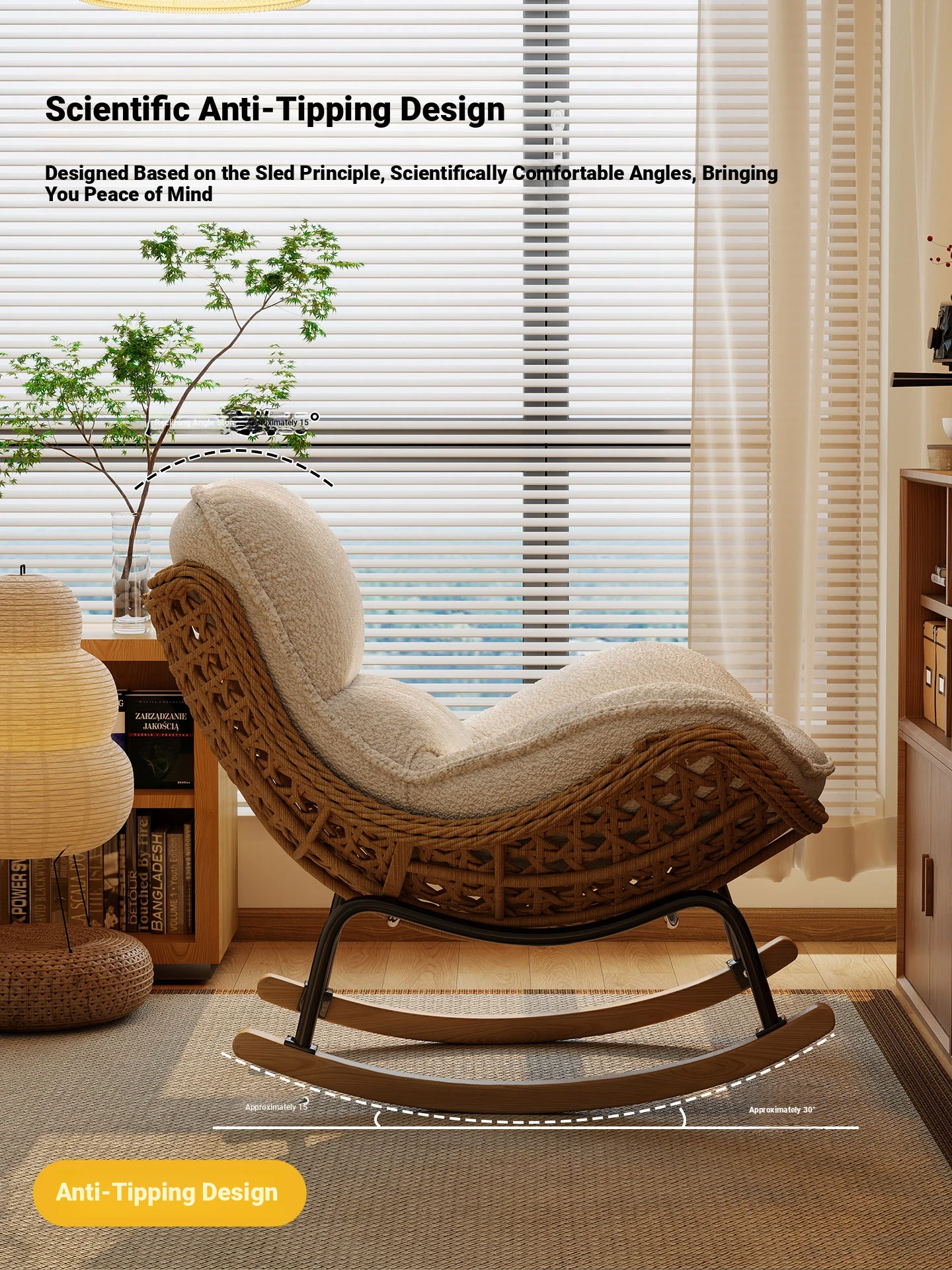 2025 New Stylish Rattan Rocking Chair - Comfortable Lounge Sofa for Adults, Perfect for Balcony & Living Room, Single Seat Lazy Chair