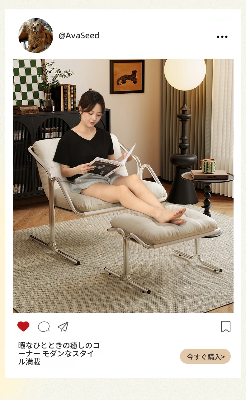 オーム・リラックスチェア|シンプルなデザインのバウハウス風軽奢リラックスチェア|リビングやバルコニーに最適なカジュアルソファ|快適なひとときを提供するあなたのための「怠け者」ソファチェア!