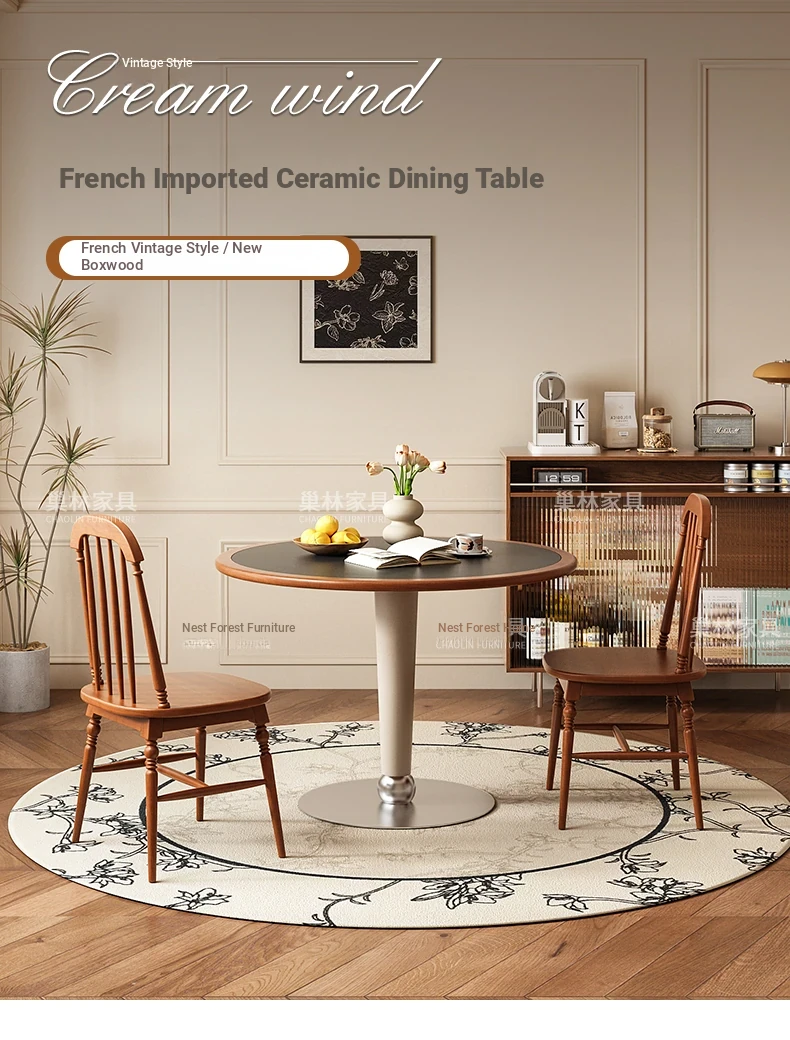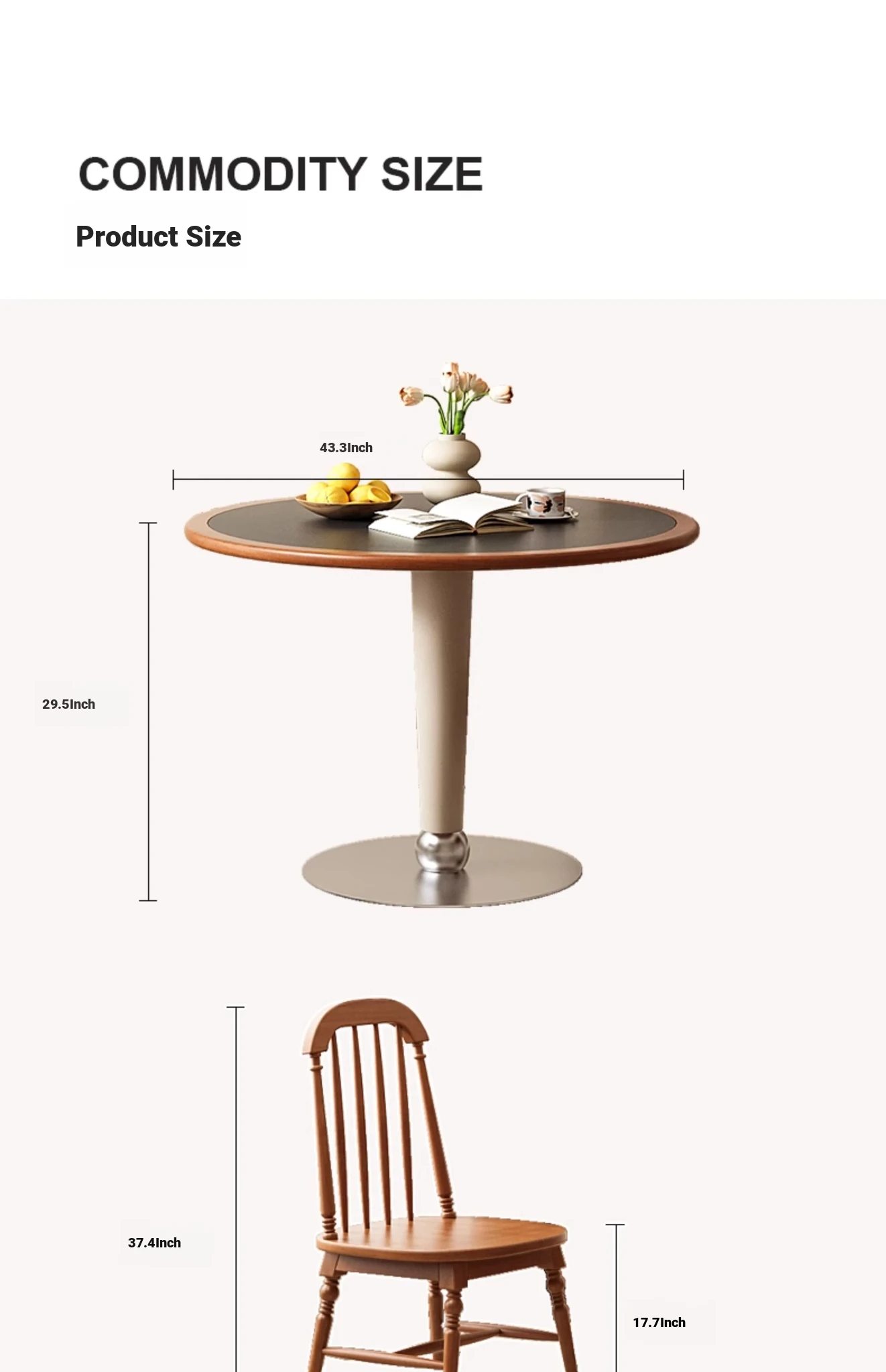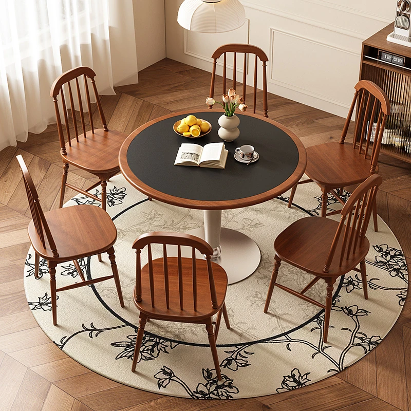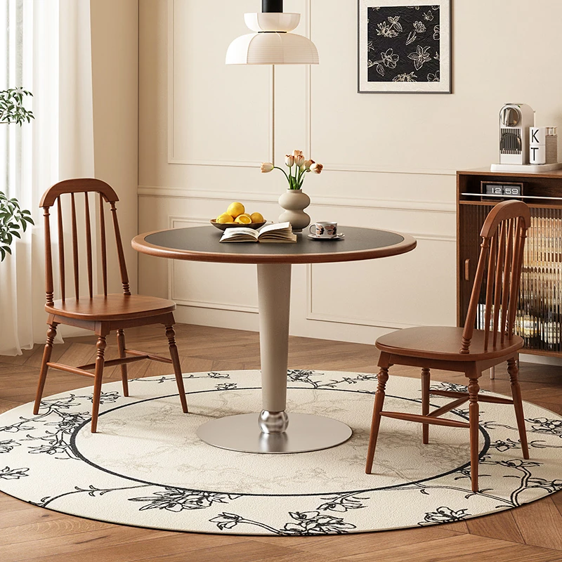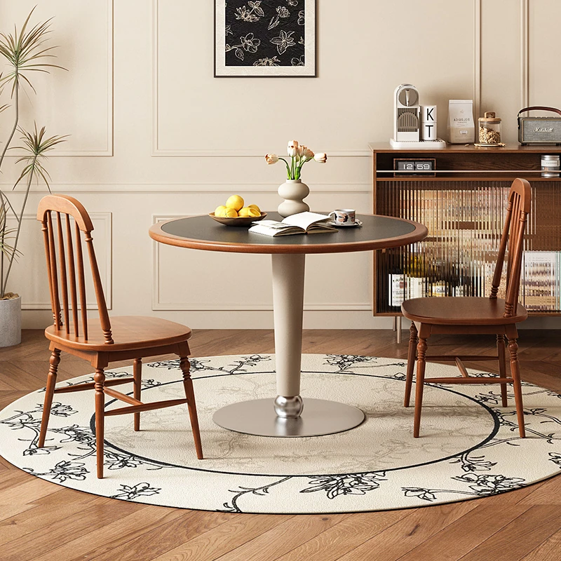 Charming Round Vintage Style Dining Table Set - 1.1m Solid Wood Rock Plate for Small Spaces - Perfect for Cozy Homes!