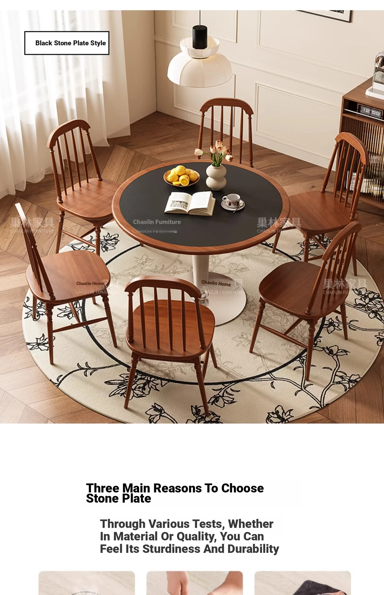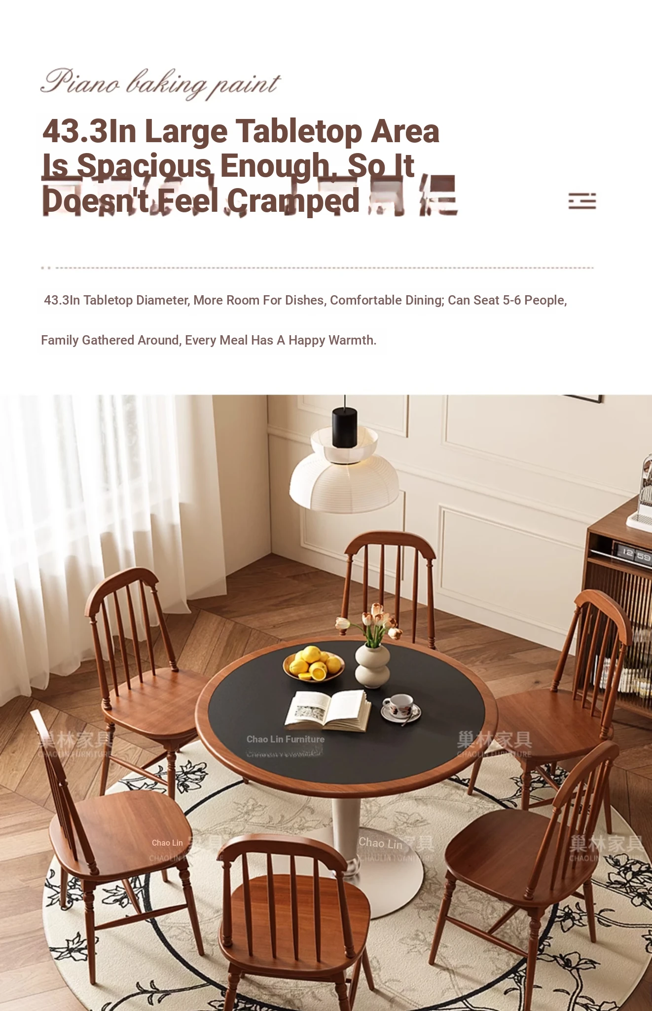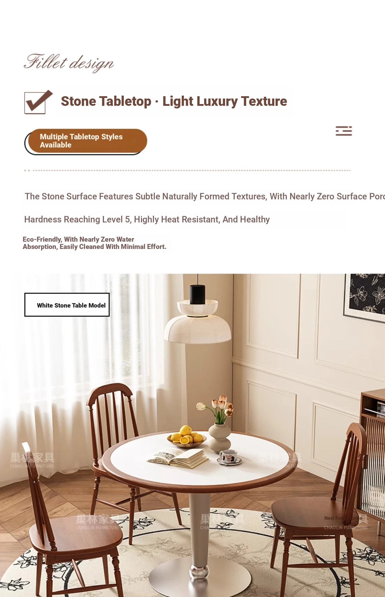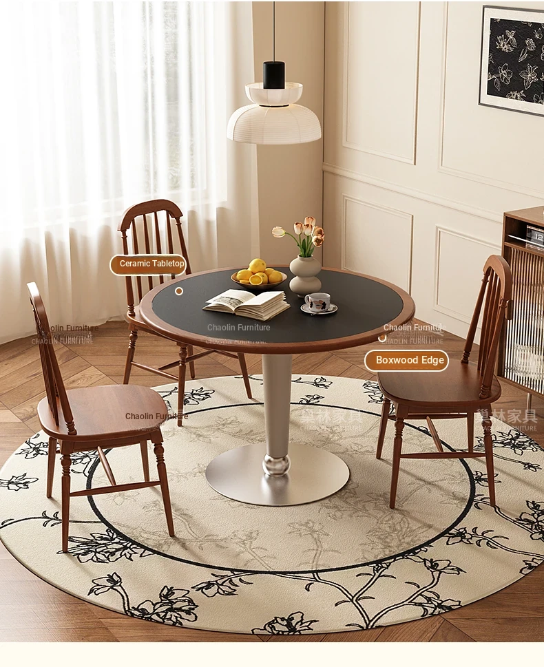 Charming Round Vintage Style Dining Table Set - 1.1m Solid Wood Rock Plate for Small Spaces - Perfect for Cozy Homes!