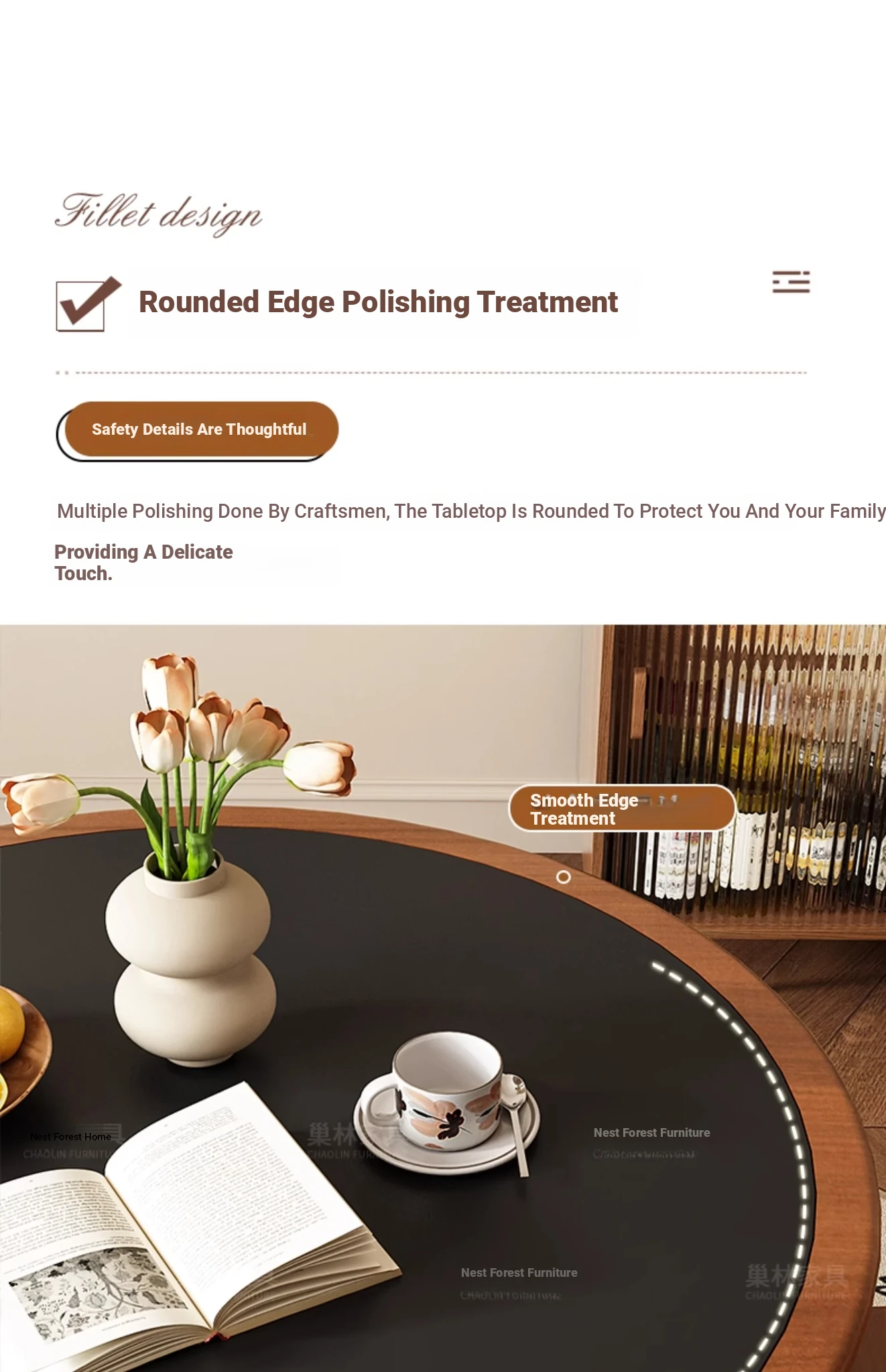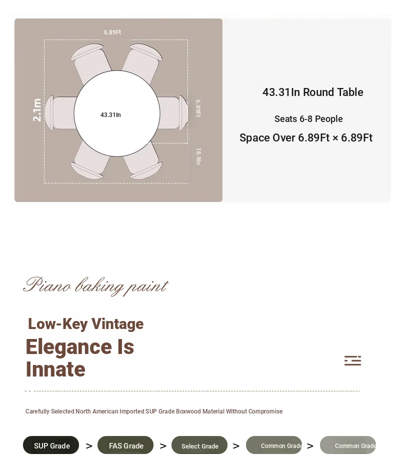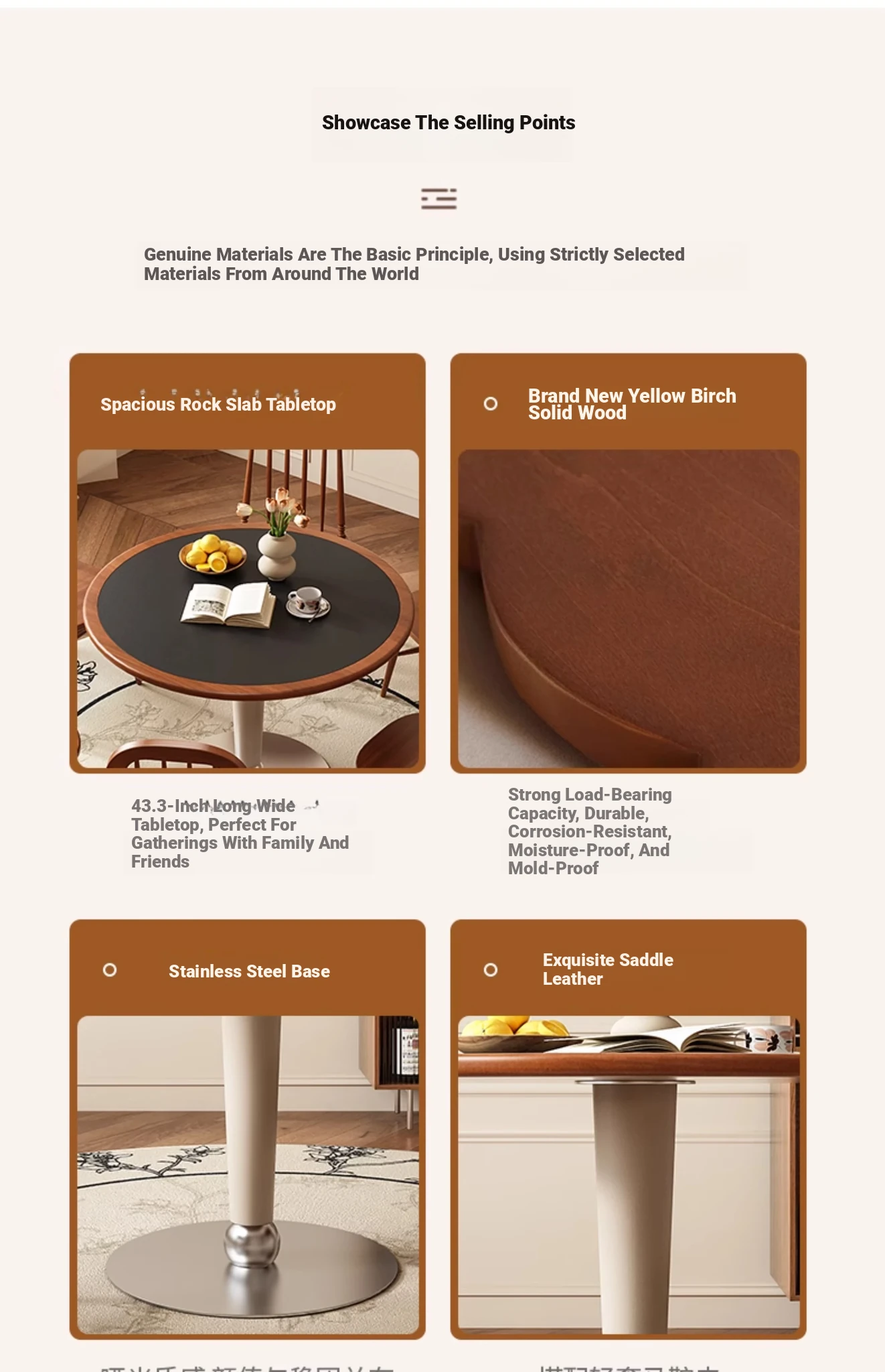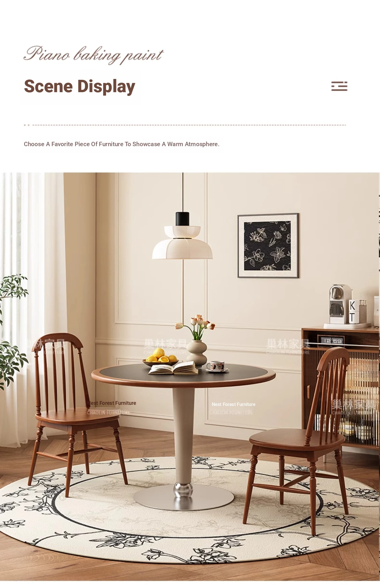 Charming Round Vintage Style Dining Table Set - 1.1m Solid Wood Rock Plate for Small Spaces - Perfect for Cozy Homes!