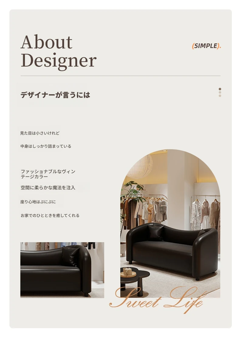 軽奢スタイルの人気ソファ!小さなリビングにぴったりのデザインで、服屋や民宿、ホテルの受付にも最適。ダブル・トリプルシートのストレートソファで、快適な空間を演出します。あなたのオシャレな空間を彩る一品!