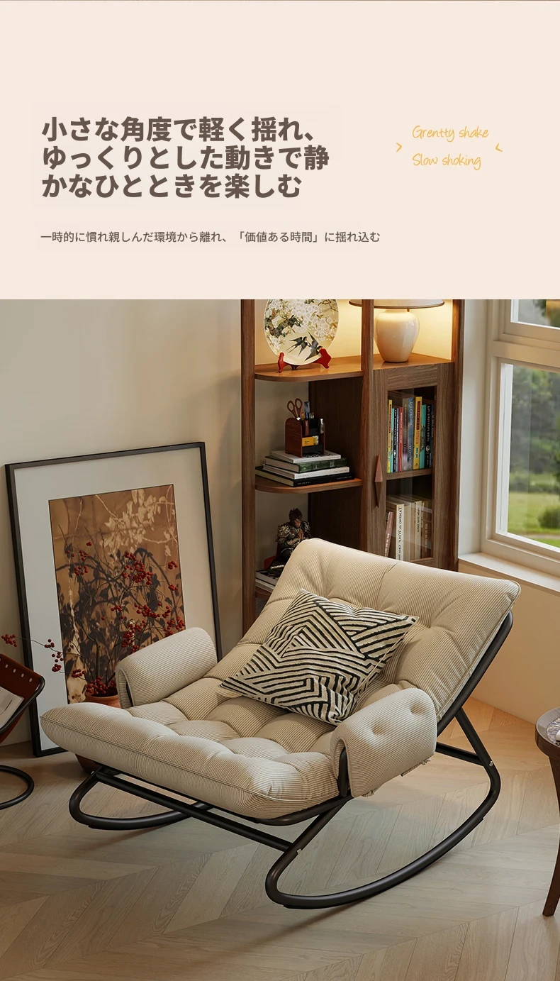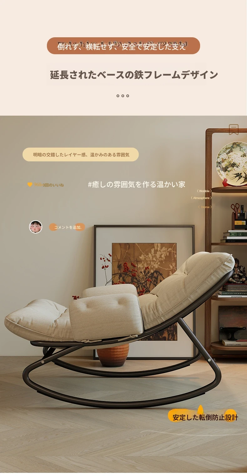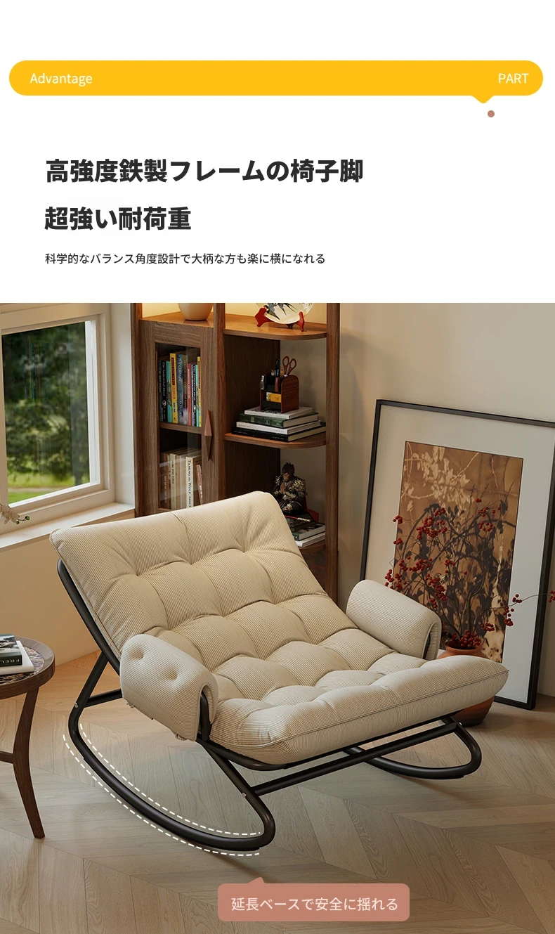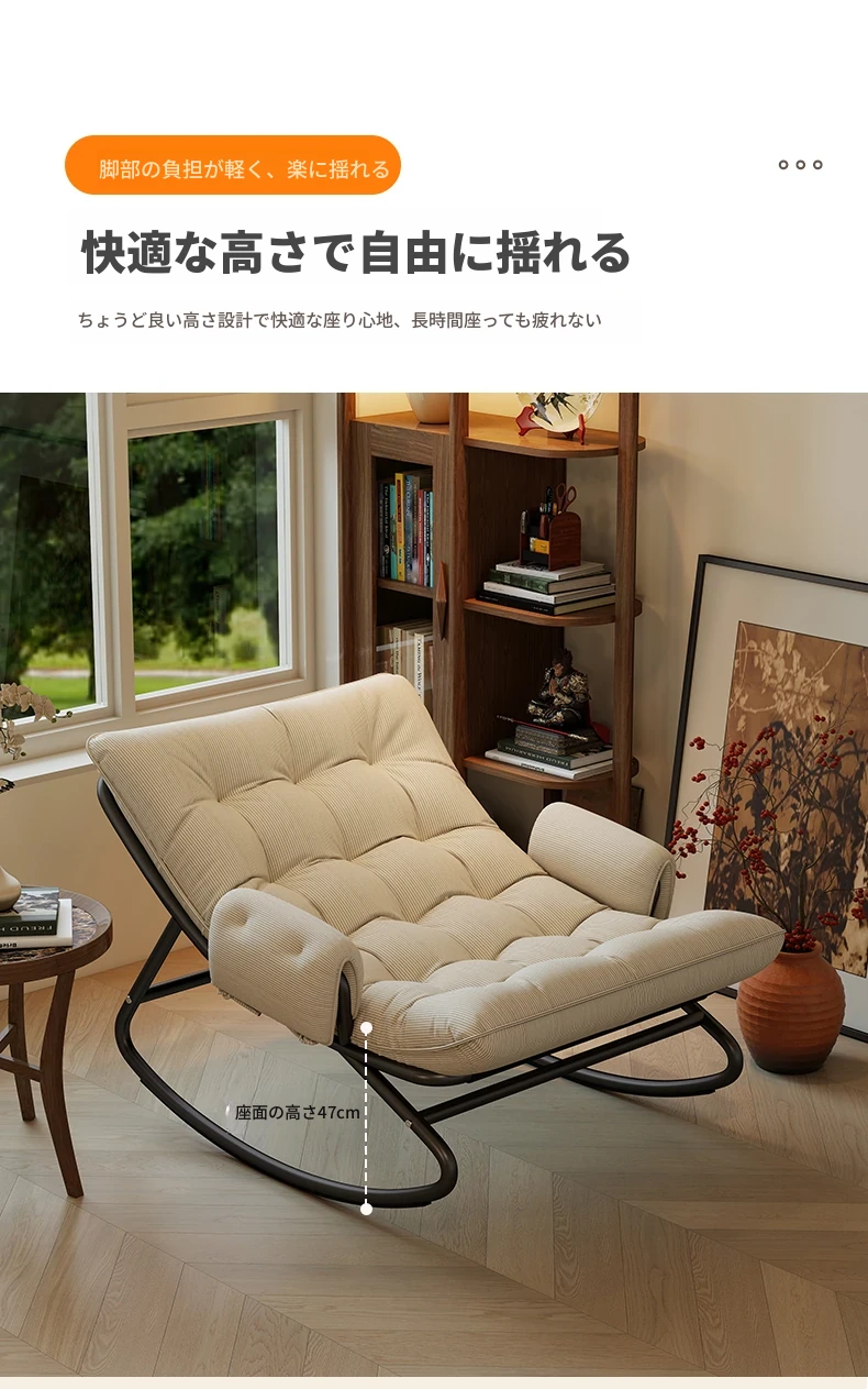 リラックスできる揺り椅子!バルコニーやリビングに最適な家庭用のラウンジャーソファ。大人が寝転ぶこともできる一人用ソファで、快適な休息時間を提供します。