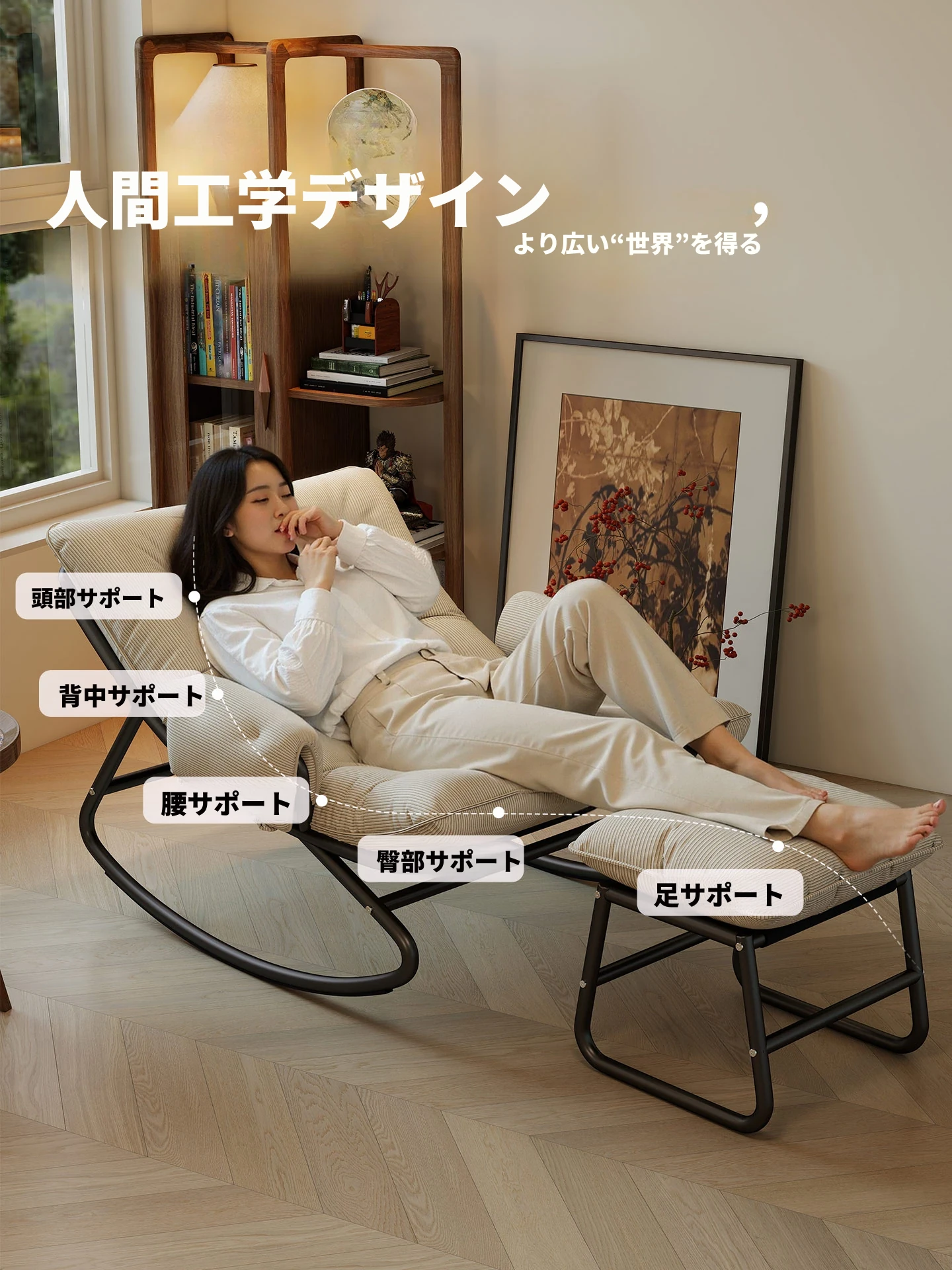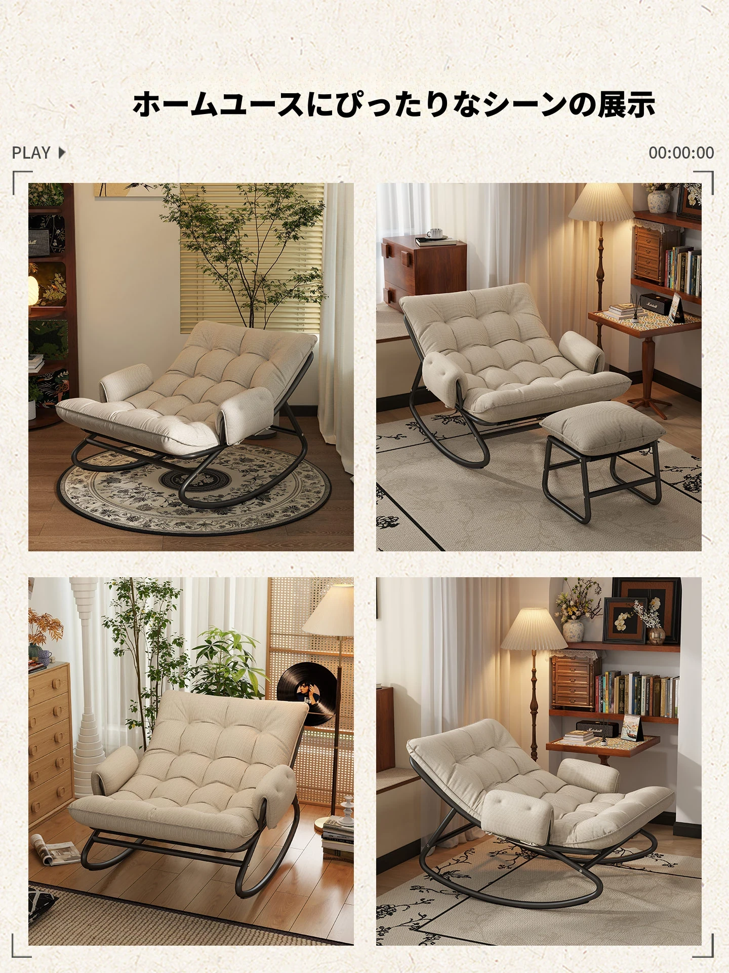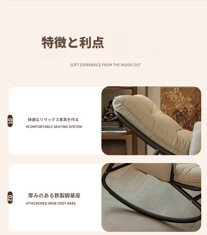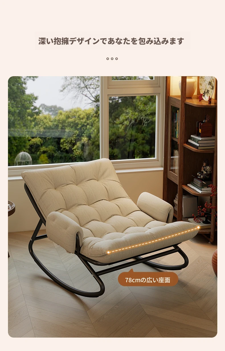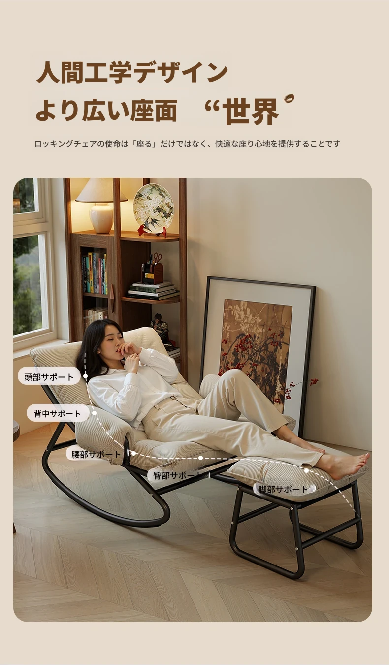 リラックスできる揺り椅子!バルコニーやリビングに最適な家庭用のラウンジャーソファ。大人が寝転ぶこともできる一人用ソファで、快適な休息時間を提供します。