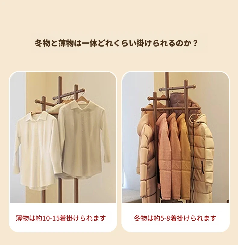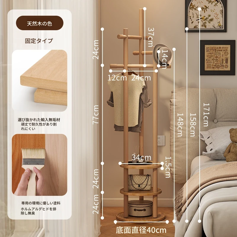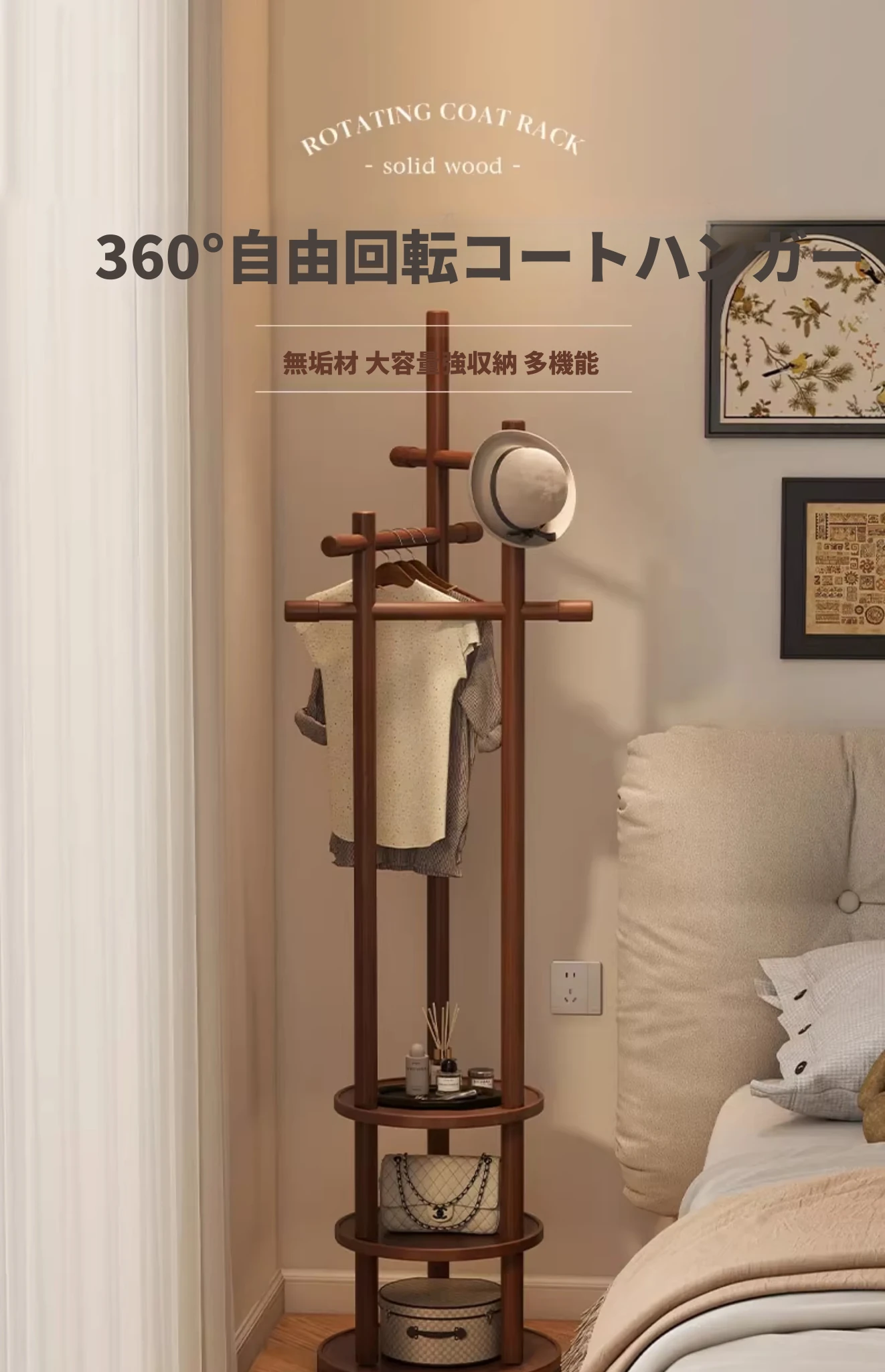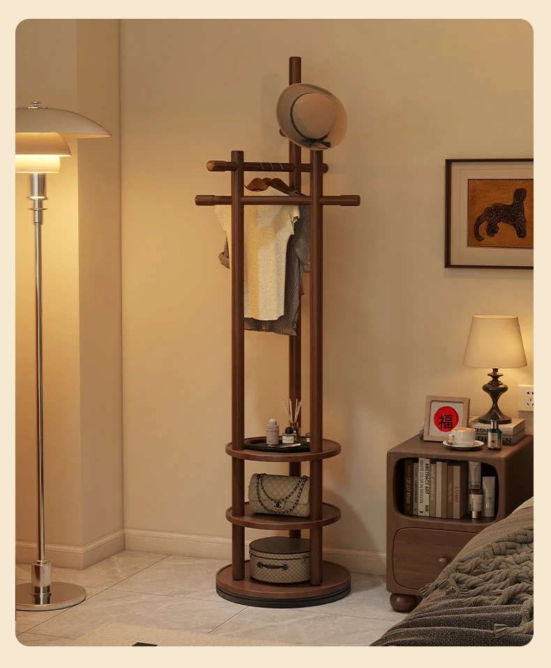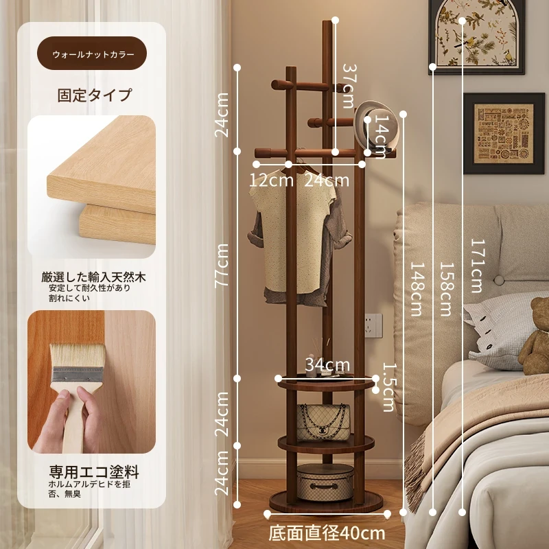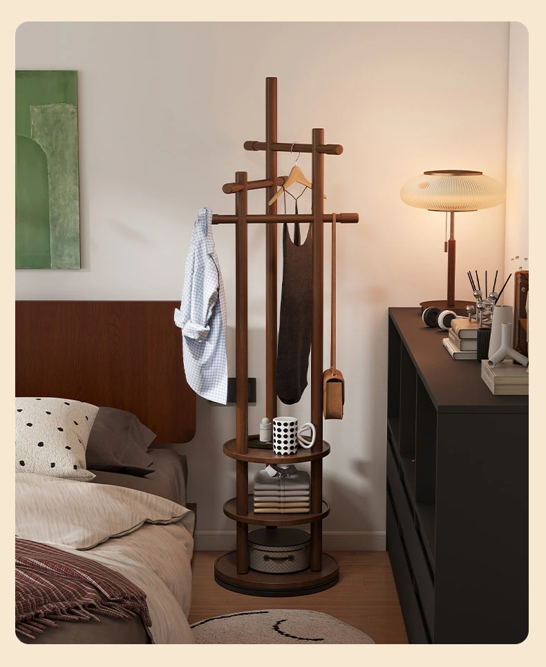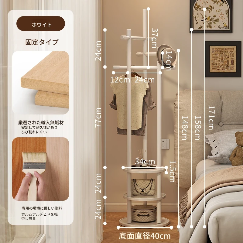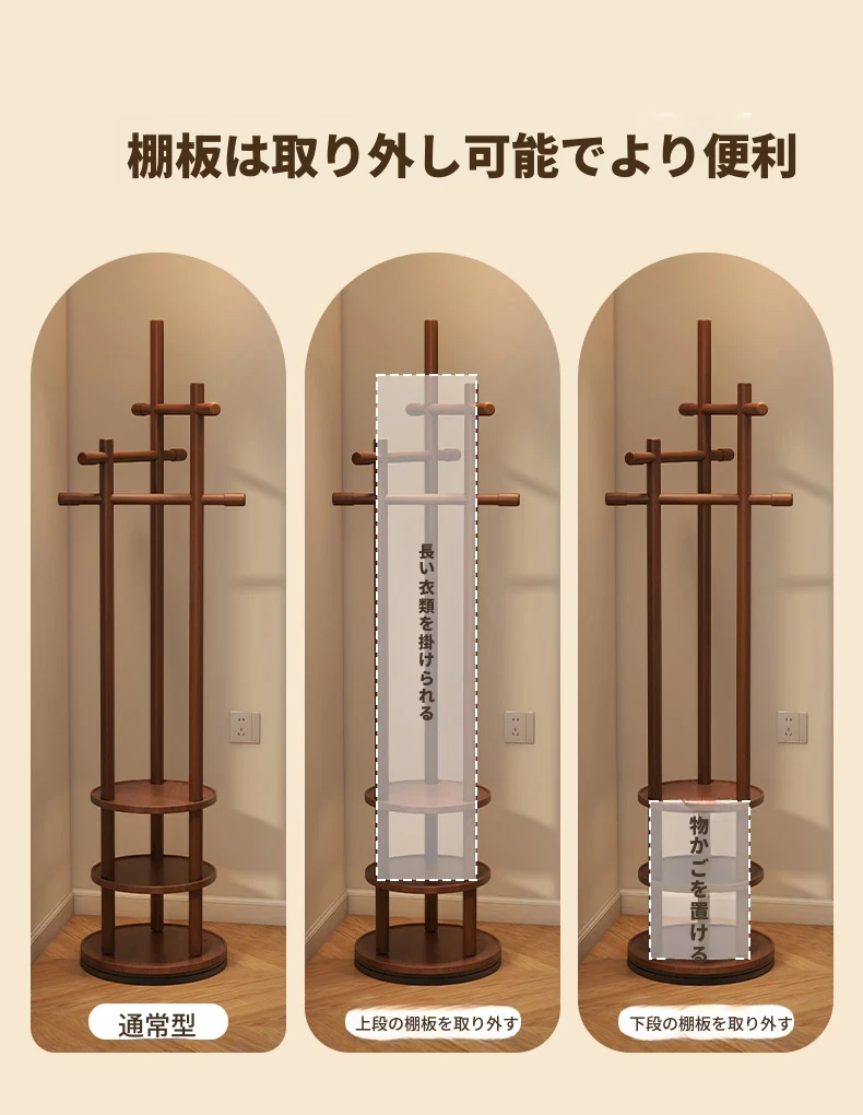 スリムでスペースを取らない、実木製の回転式ハンガーラック - 寝室やリビングに最適な小型の衣類収納!ベッドサイドにぴったり、スタイリッシュで機能的な衣類掛け。