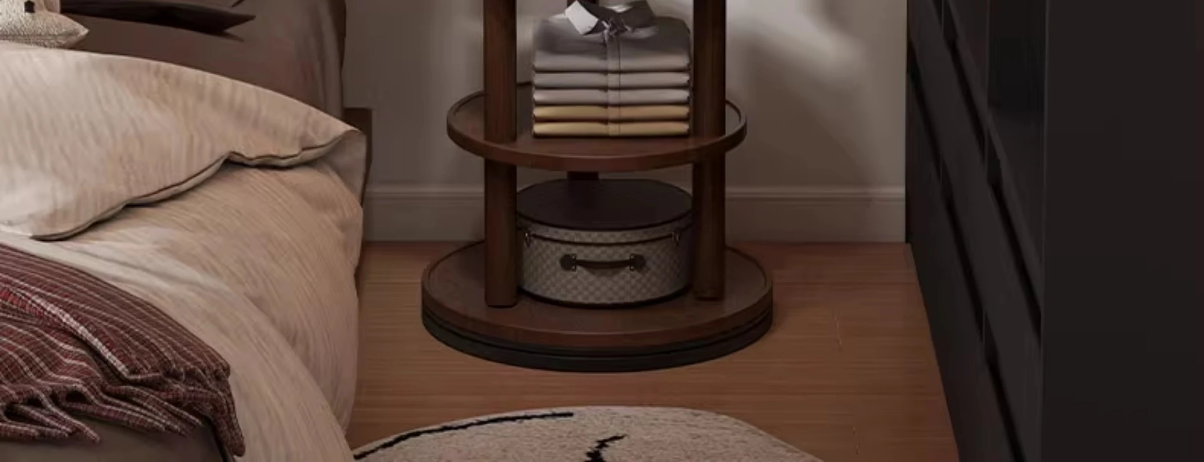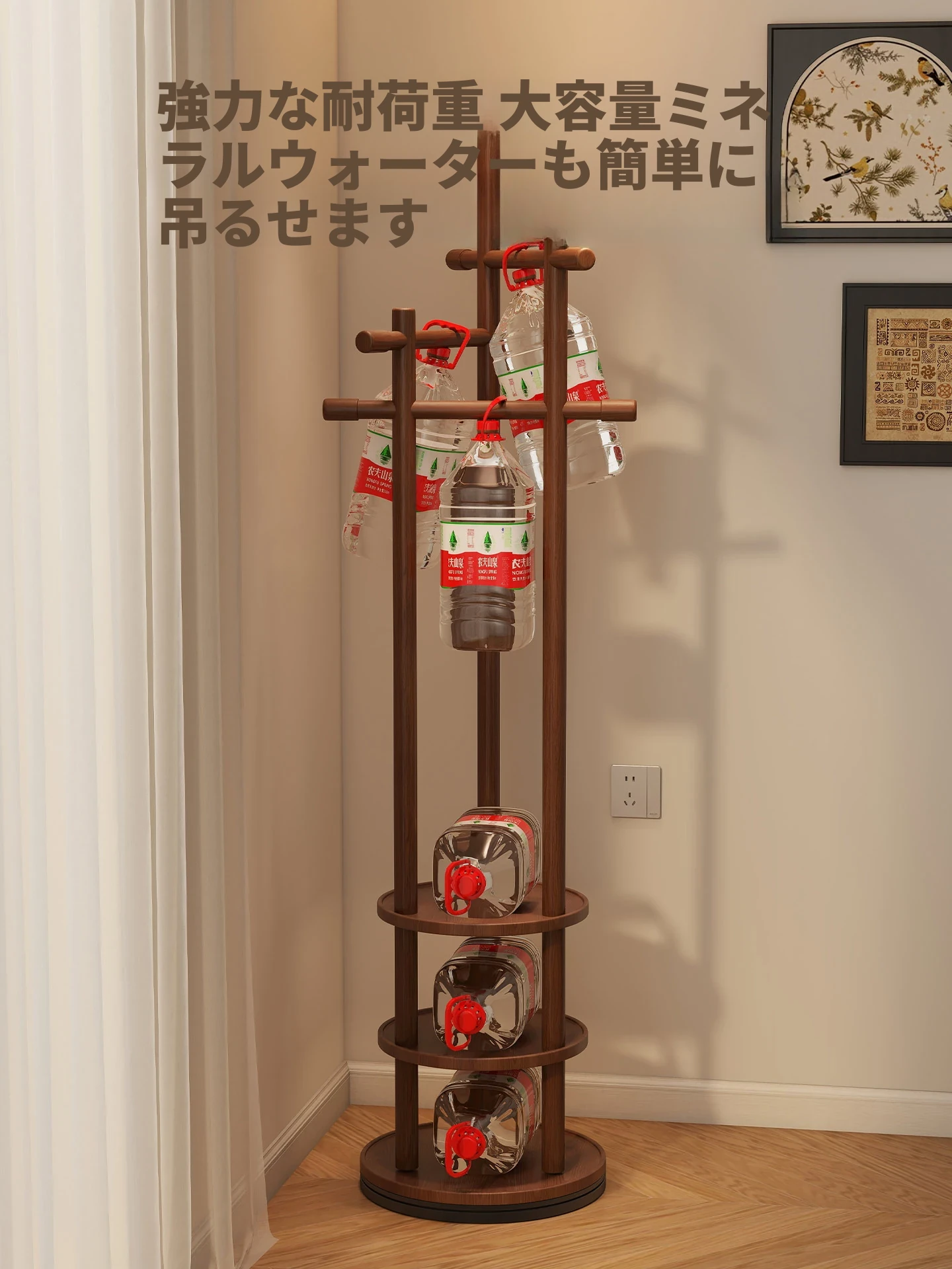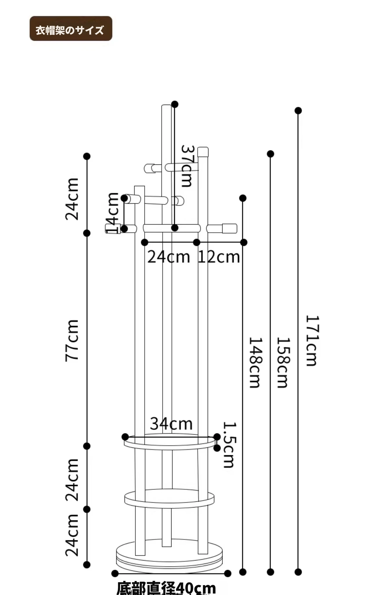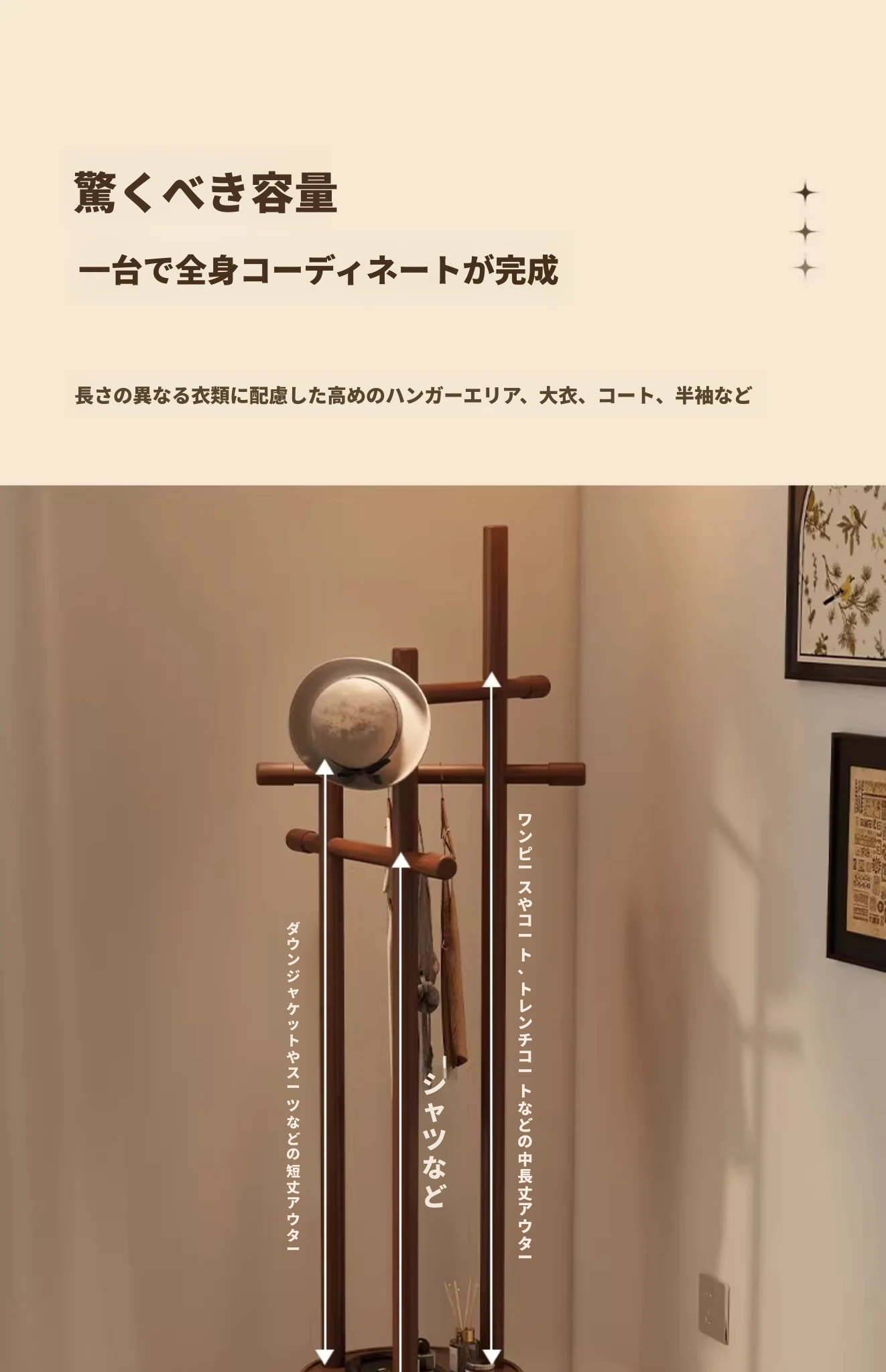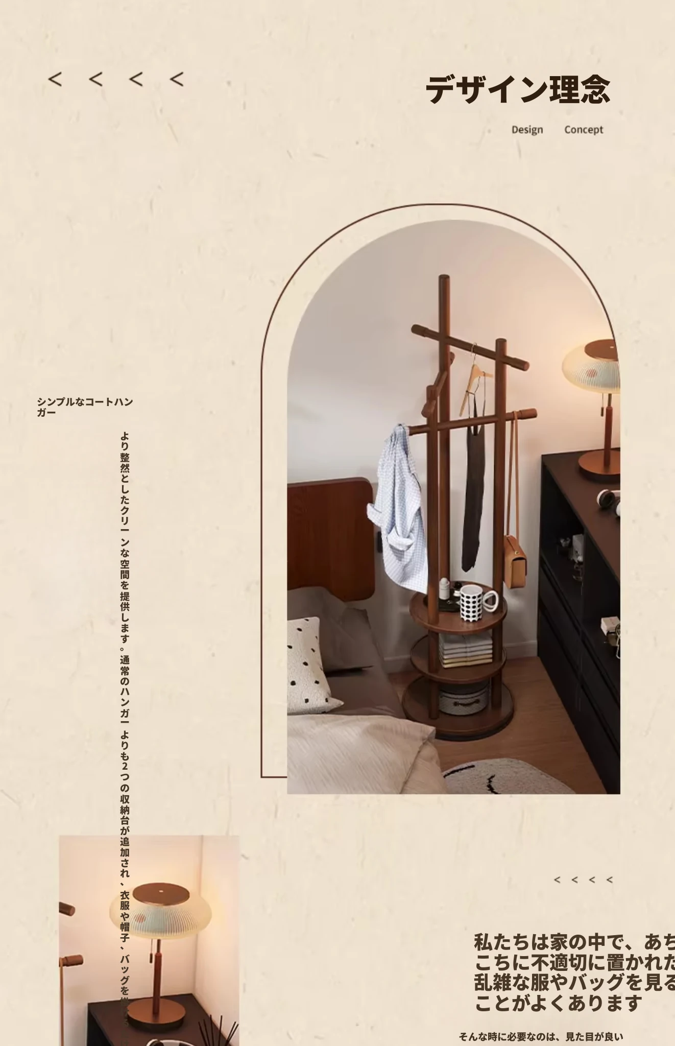 スリムでスペースを取らない、実木製の回転式ハンガーラック - 寝室やリビングに最適な小型の衣類収納!ベッドサイドにぴったり、スタイリッシュで機能的な衣類掛け。