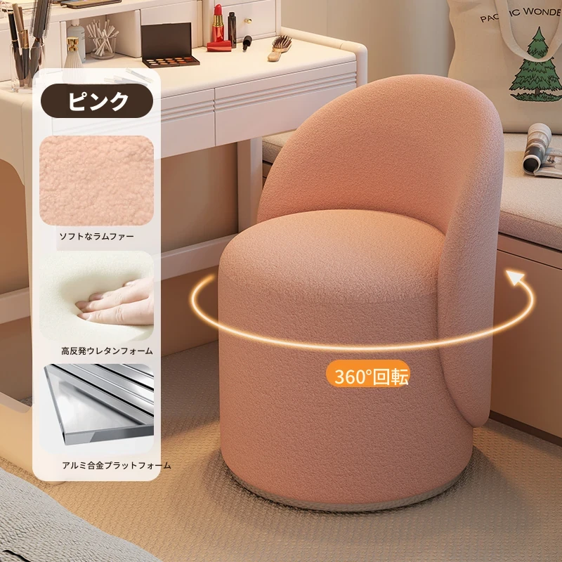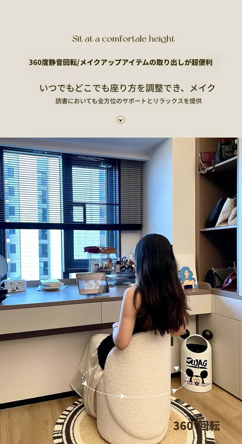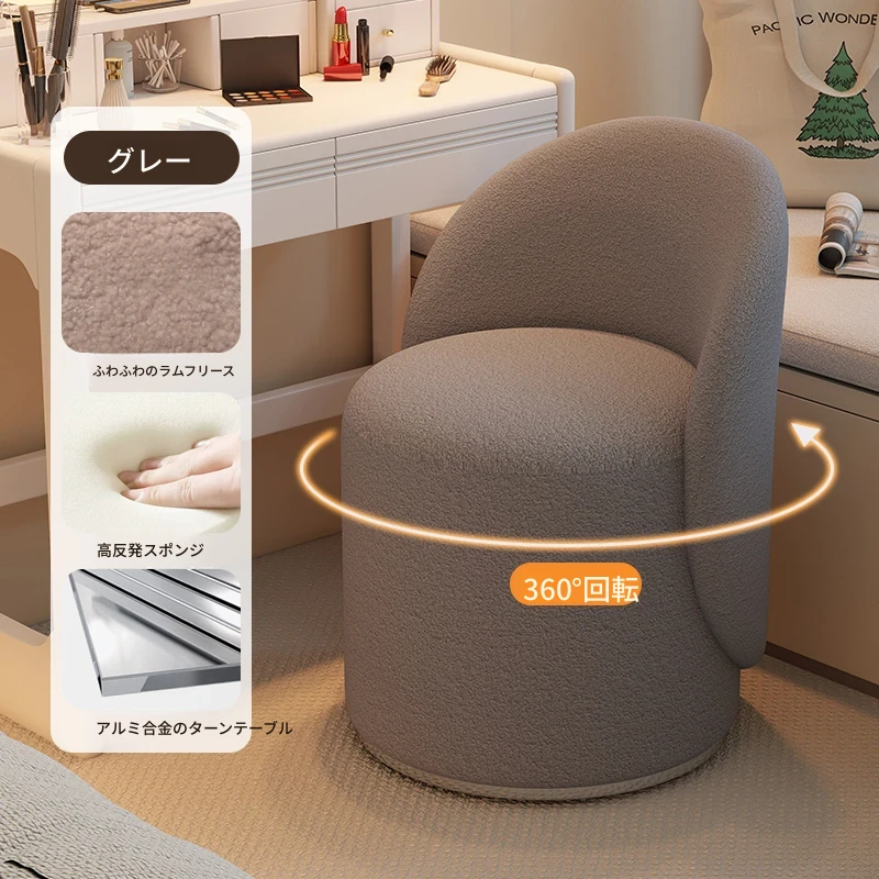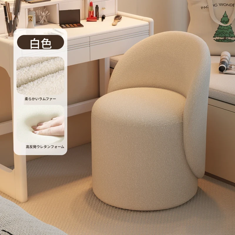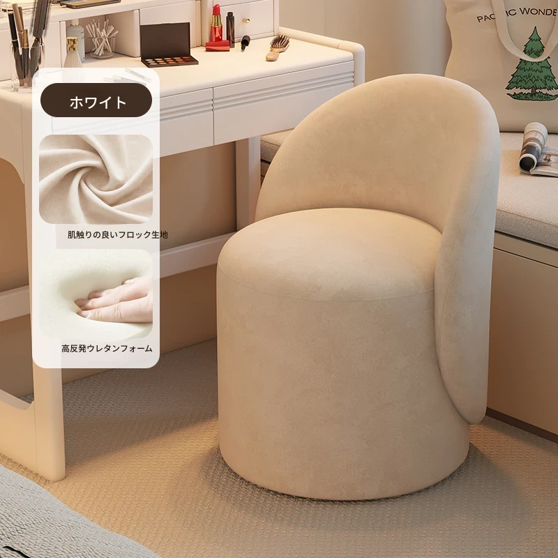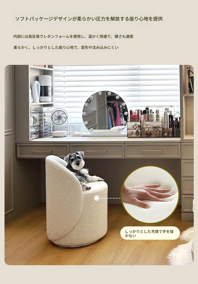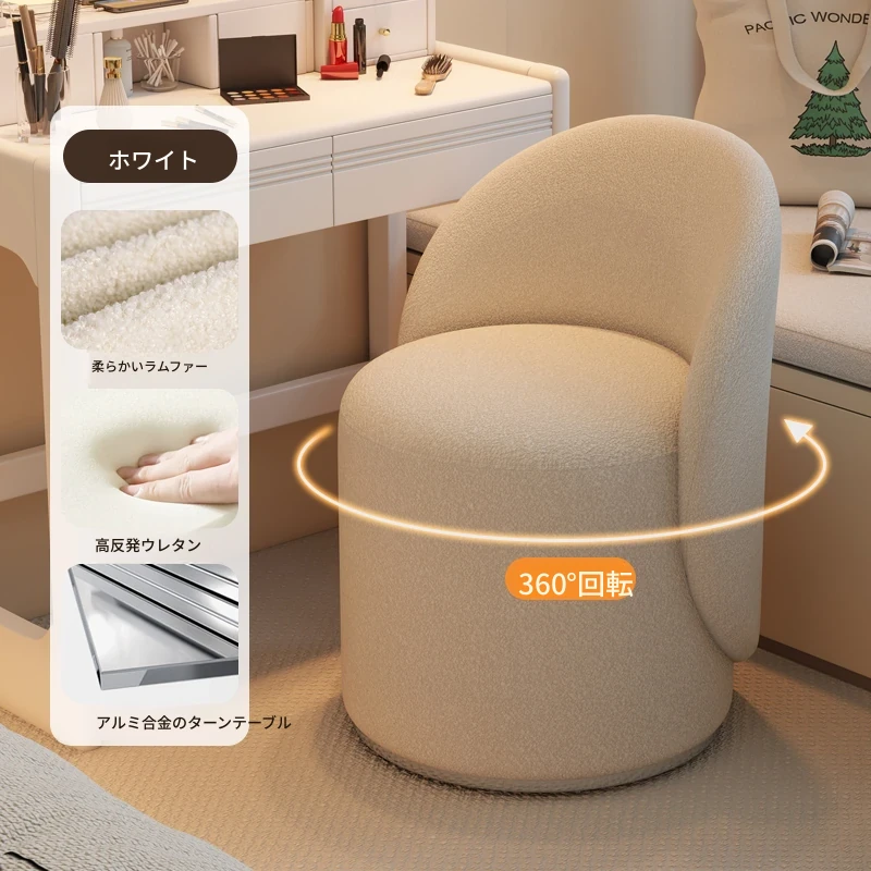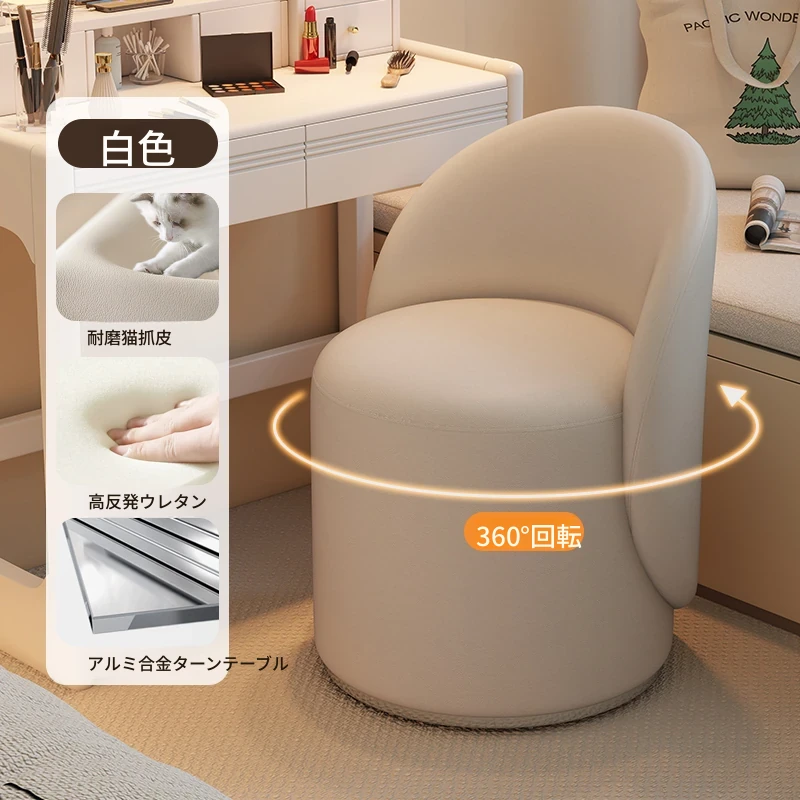 クリーム風のラグジュアリーなドレッシングスツール - 女性の寝室に最適!高級感溢れる回転式サムスツールで、メイクアップタイムをもっと特別に。あなたの美しさを引き立てるアイテムです!