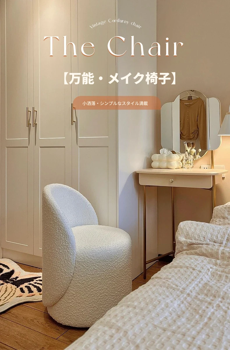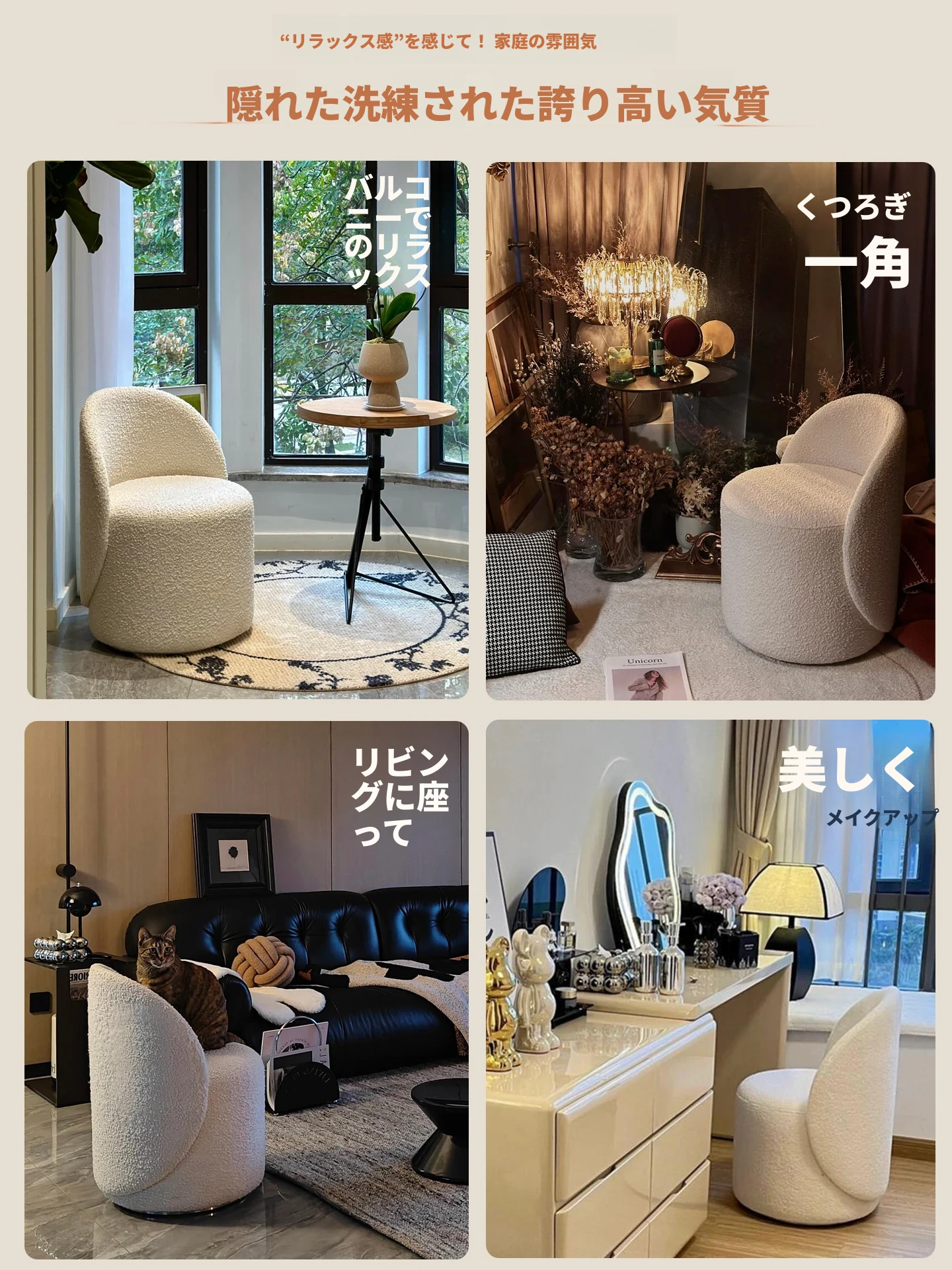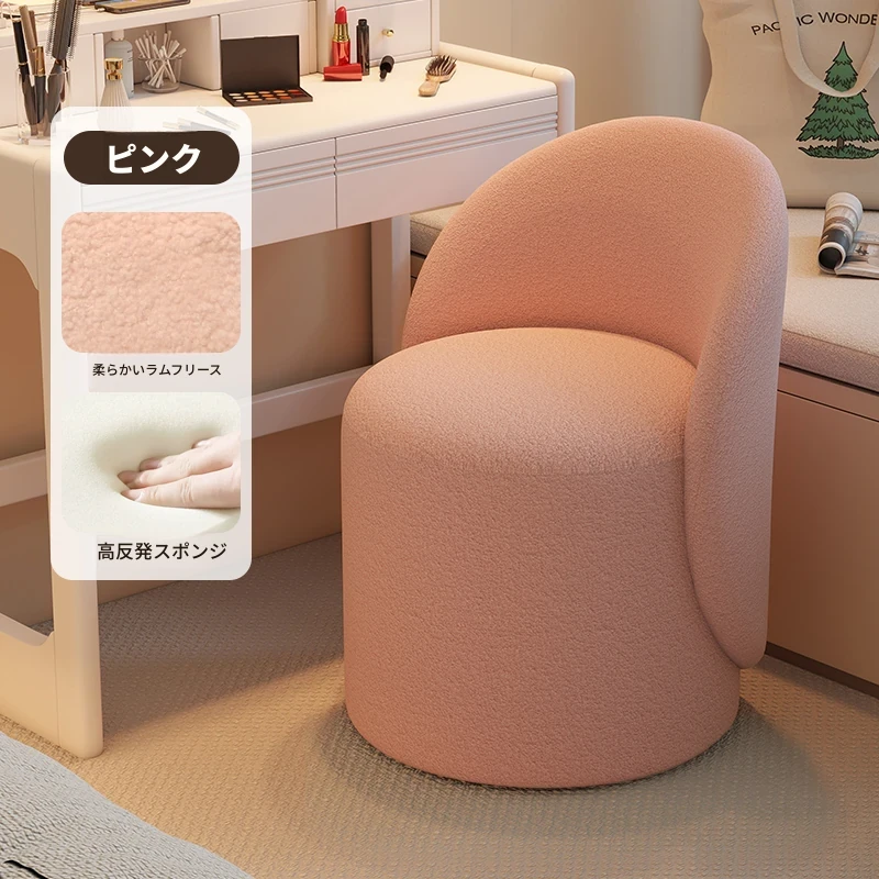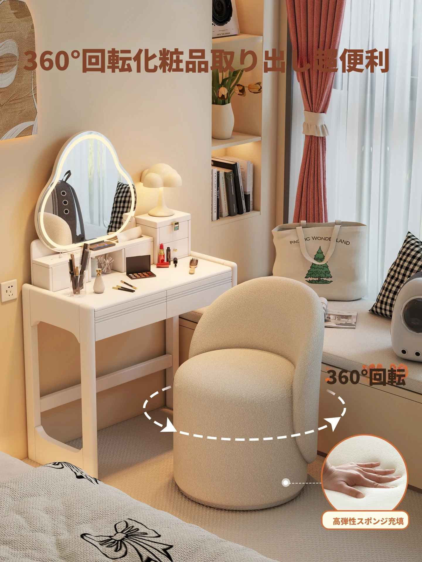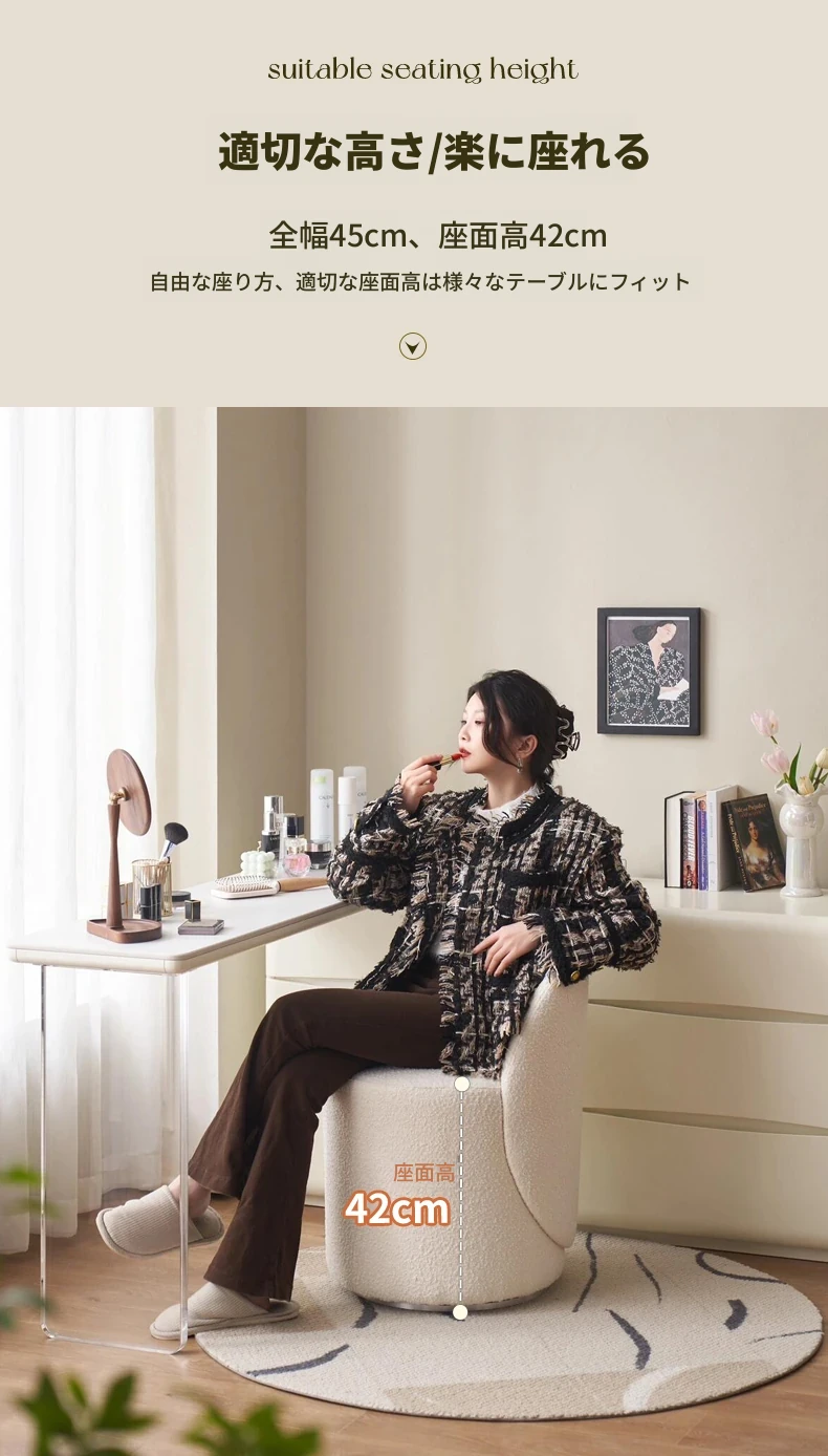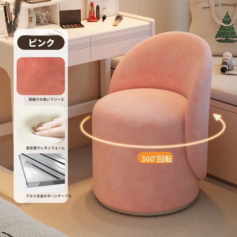 クリーム風のラグジュアリーなドレッシングスツール - 女性の寝室に最適!高級感溢れる回転式サムスツールで、メイクアップタイムをもっと特別に。あなたの美しさを引き立てるアイテムです!